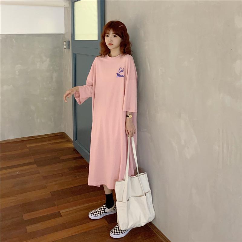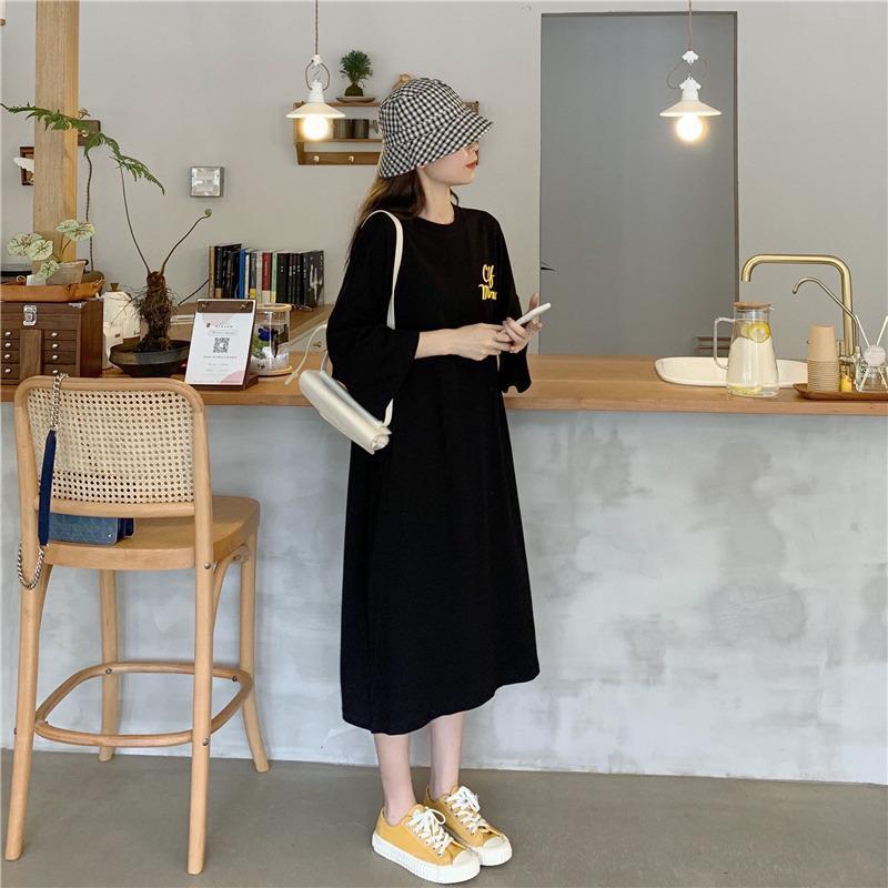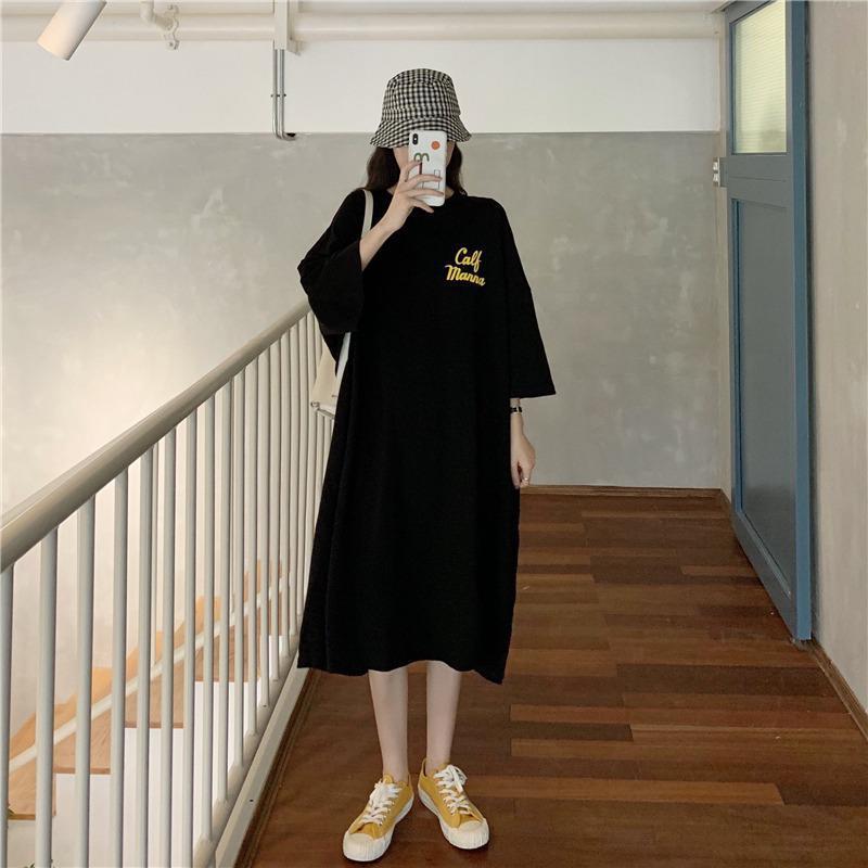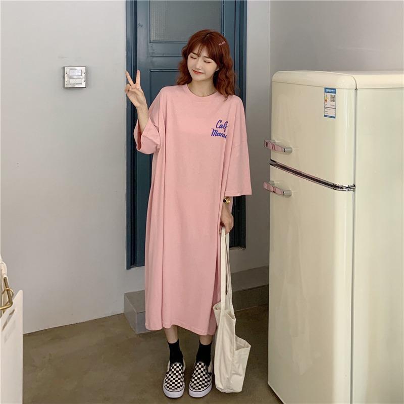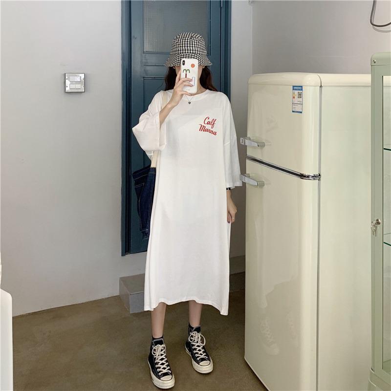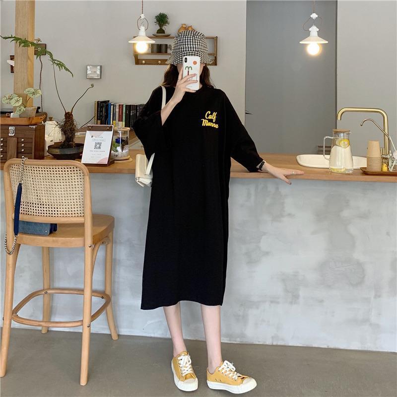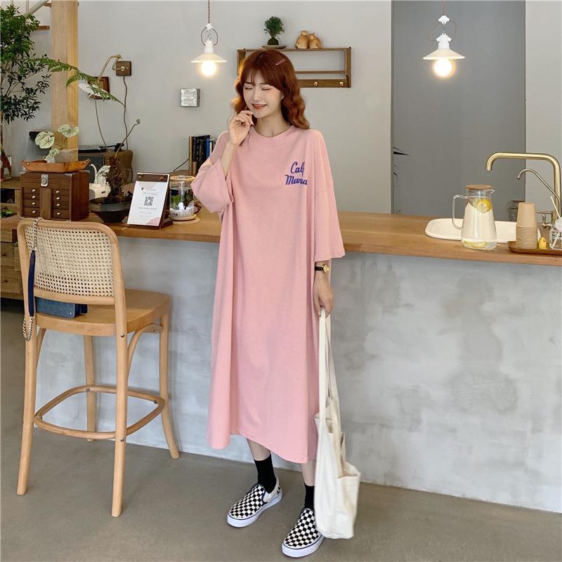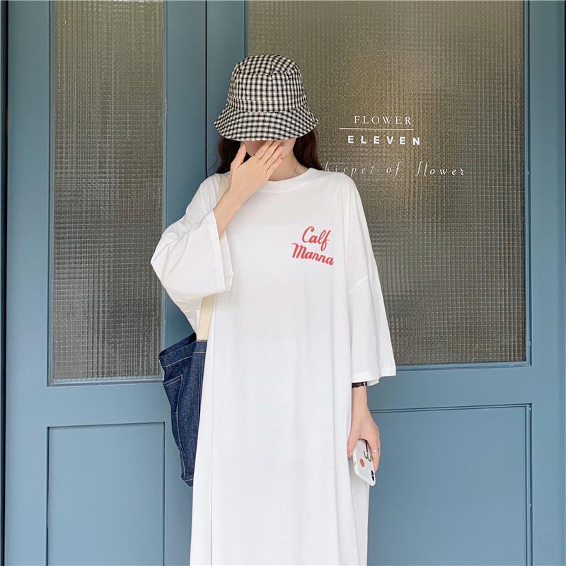 Vestido de maternidad, vestido de verano de media manga, suelto, 200 kg de largo por encima de la rodilla, vestido de verano de estilo coreano para embarazadas.