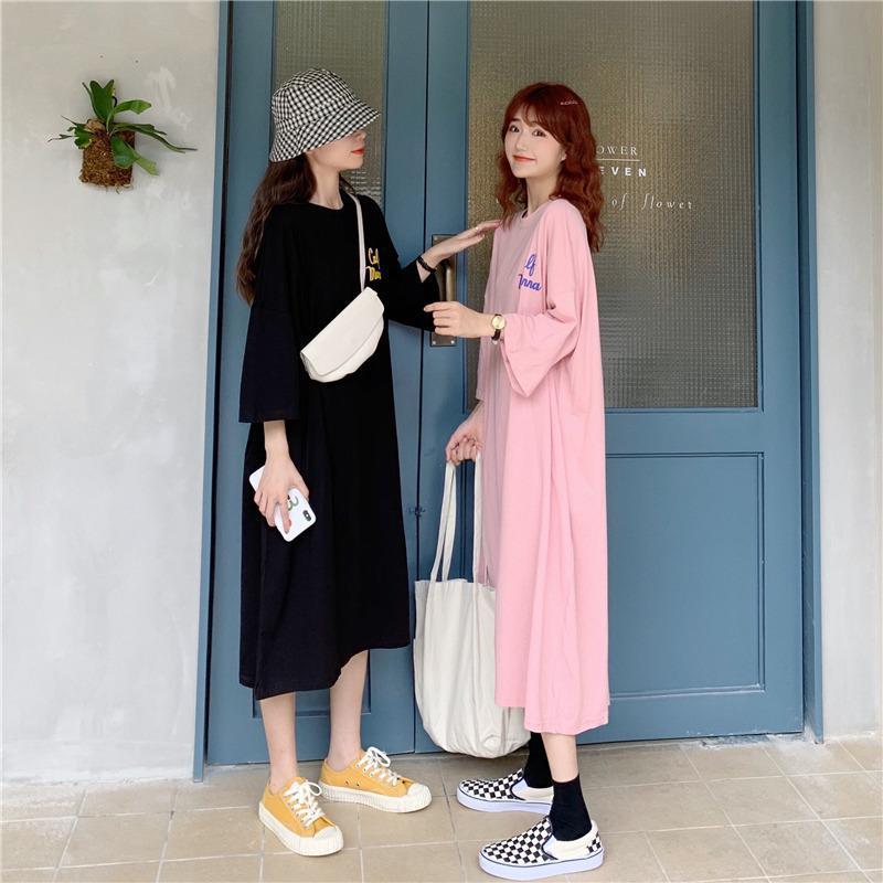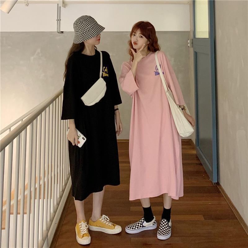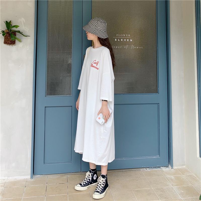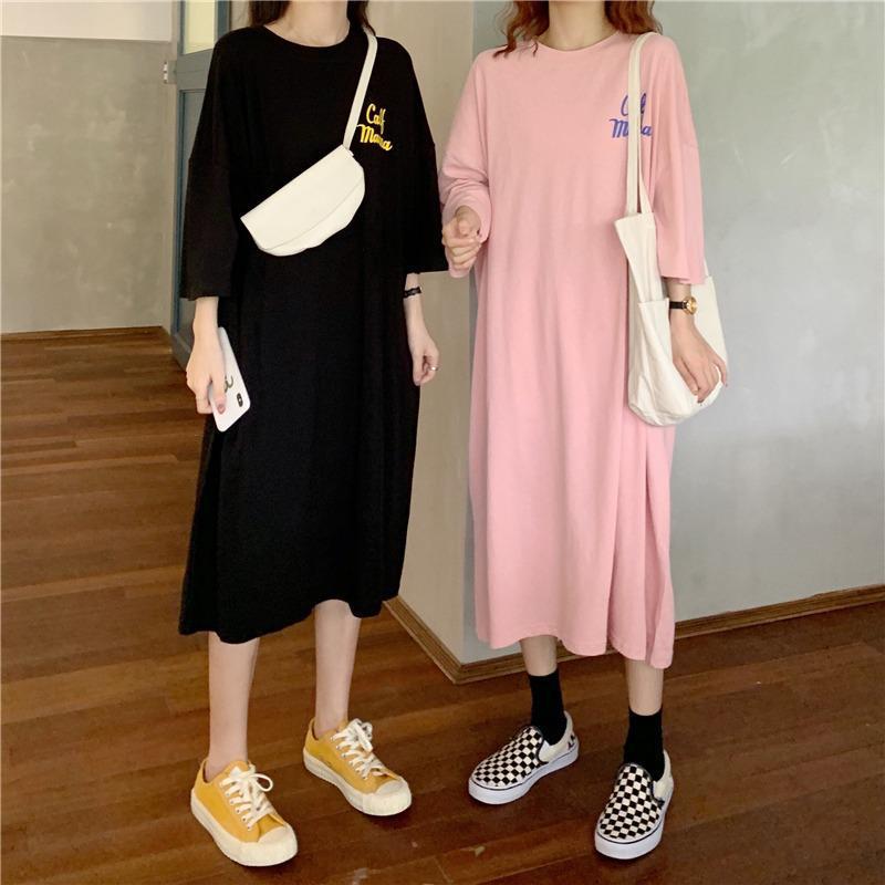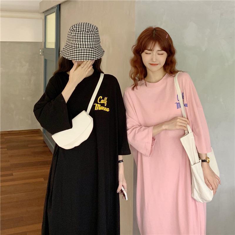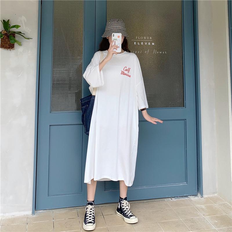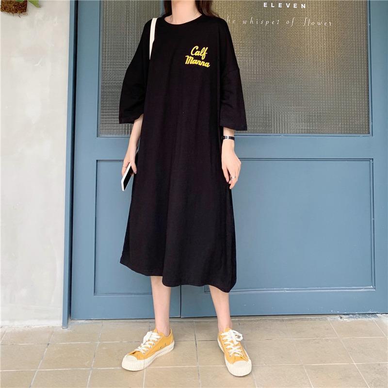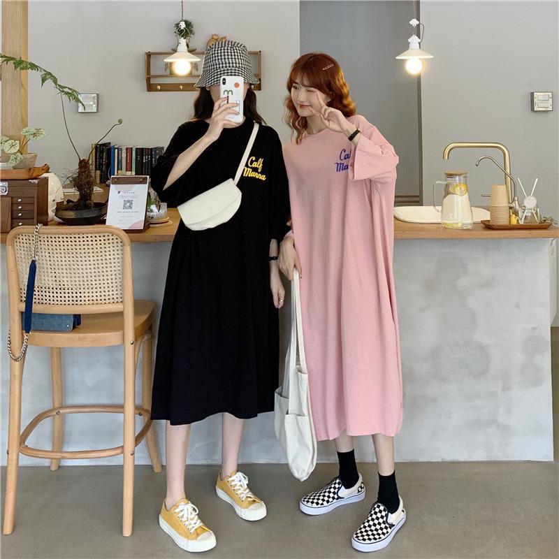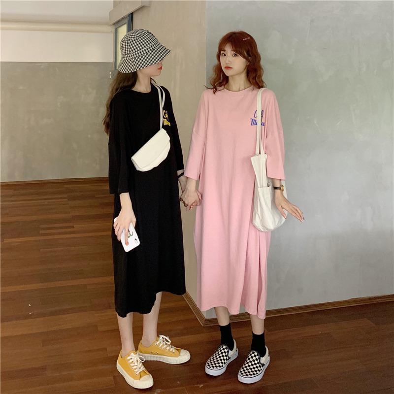 Vestido de maternidad, vestido de verano de media manga, suelto, 200 kg de largo por encima de la rodilla, vestido de verano de estilo coreano para embarazadas.