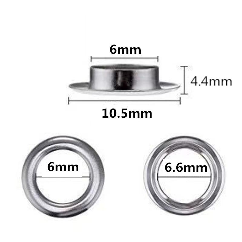 Para 200 juegos transfronterizos de herramientas de instalación de ojo de aire de metal de 6 mm de diámetro interior + ojo de aire, hebilla de ojo de cobre, hebilla de ojo de zapato, punto