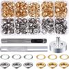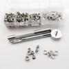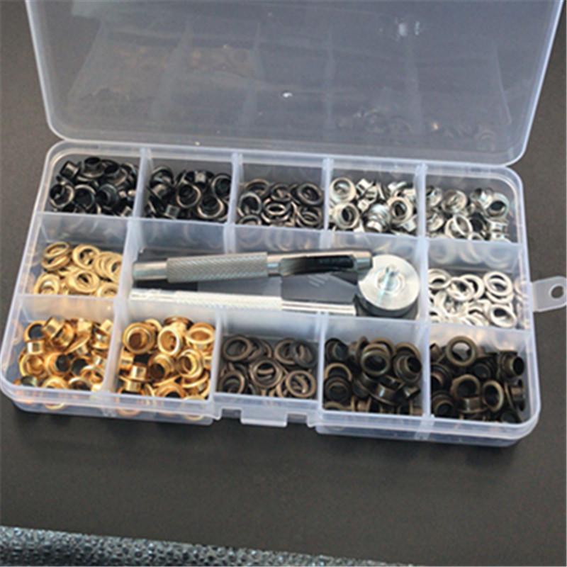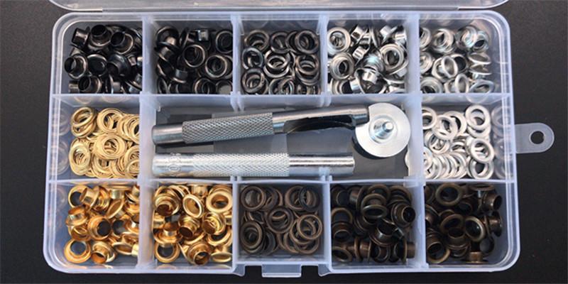 Contenido: Plata, blanco, azul, bronce, negro plomo, oro, 50 juegos de cada color + herramientas de instalación a juego + herramientas de perforación + caja de almacenamiento