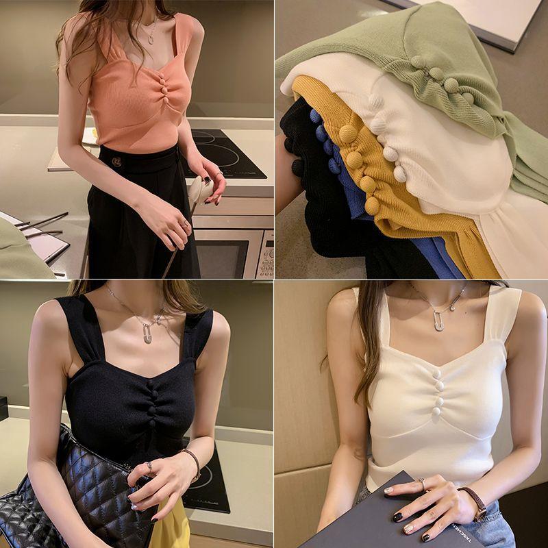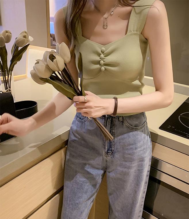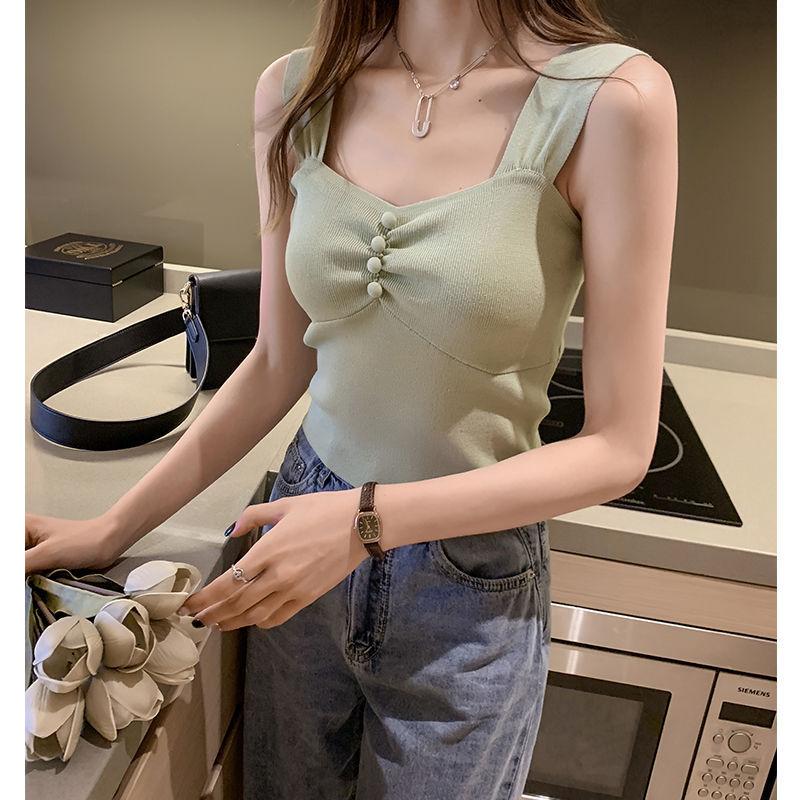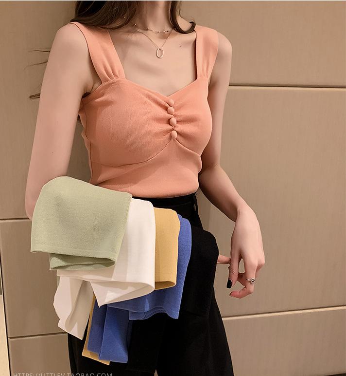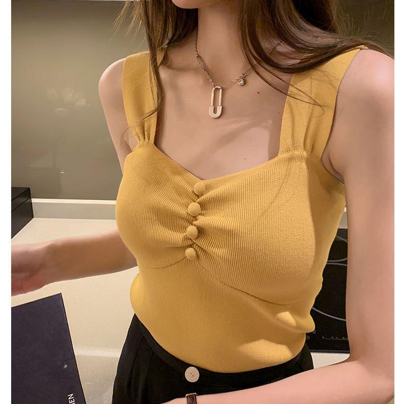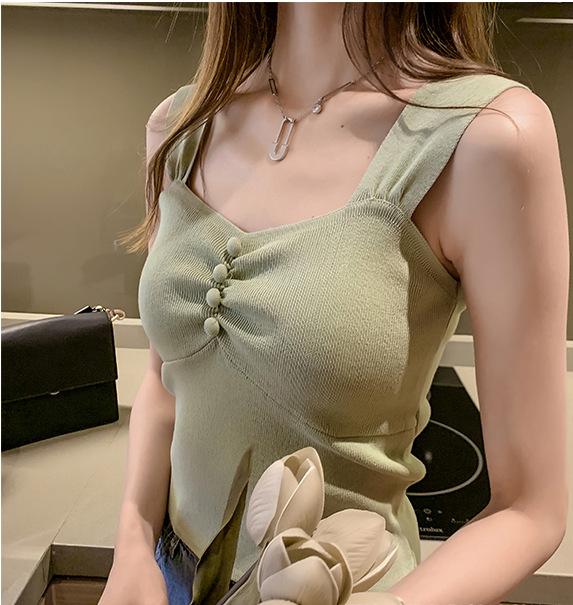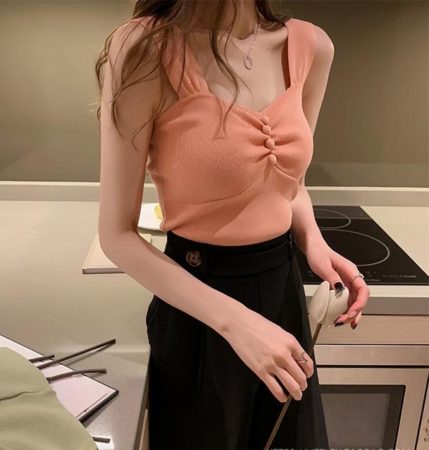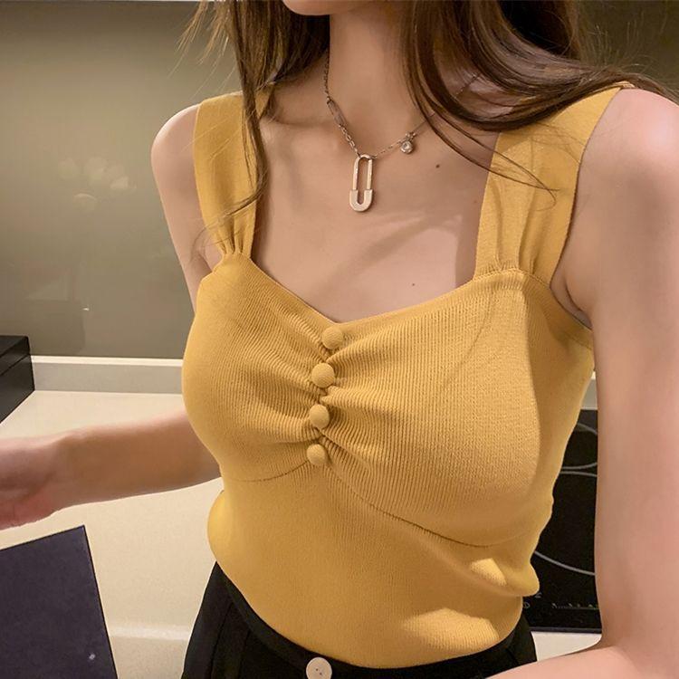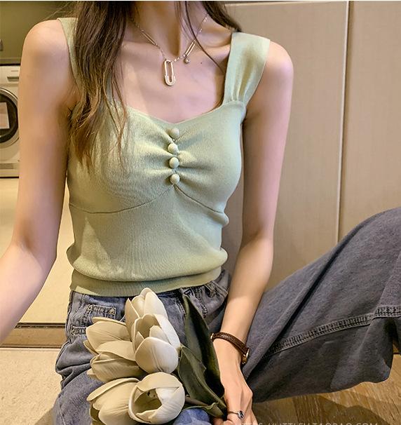 Camisola de punto de seda helada para mujer, nueva moda de primavera y verano, prenda exterior sin mangas, sexy, ajustada, con base interior