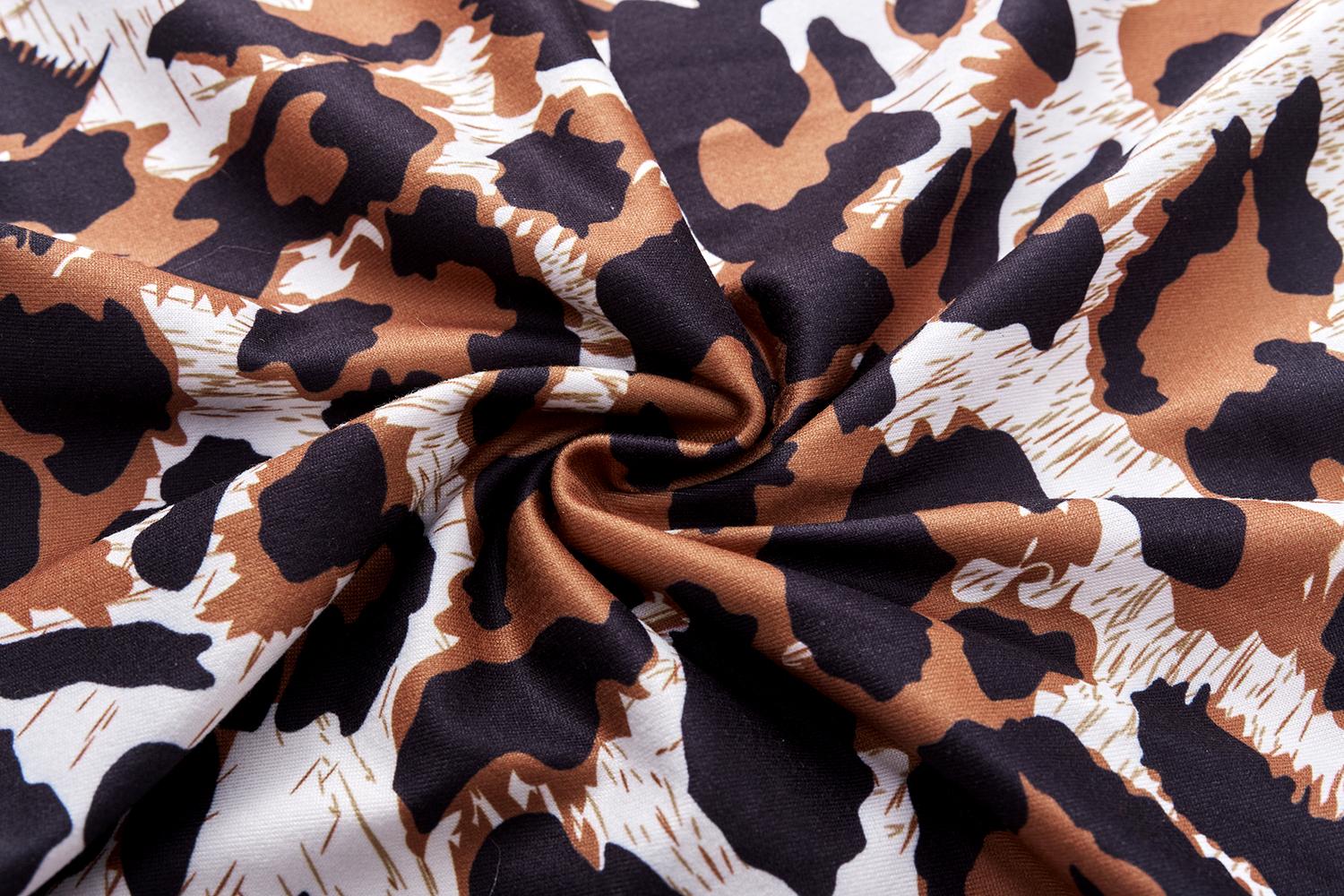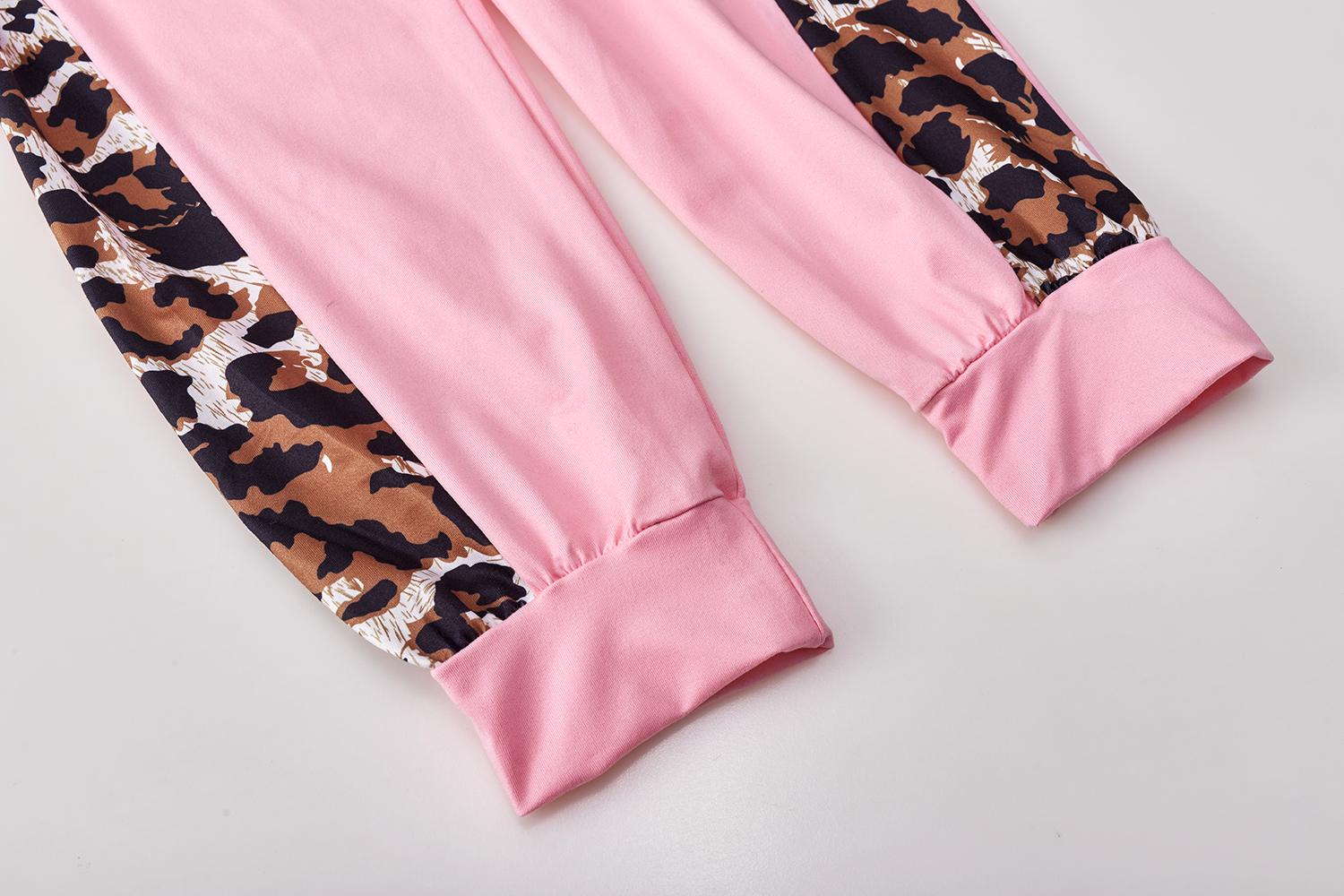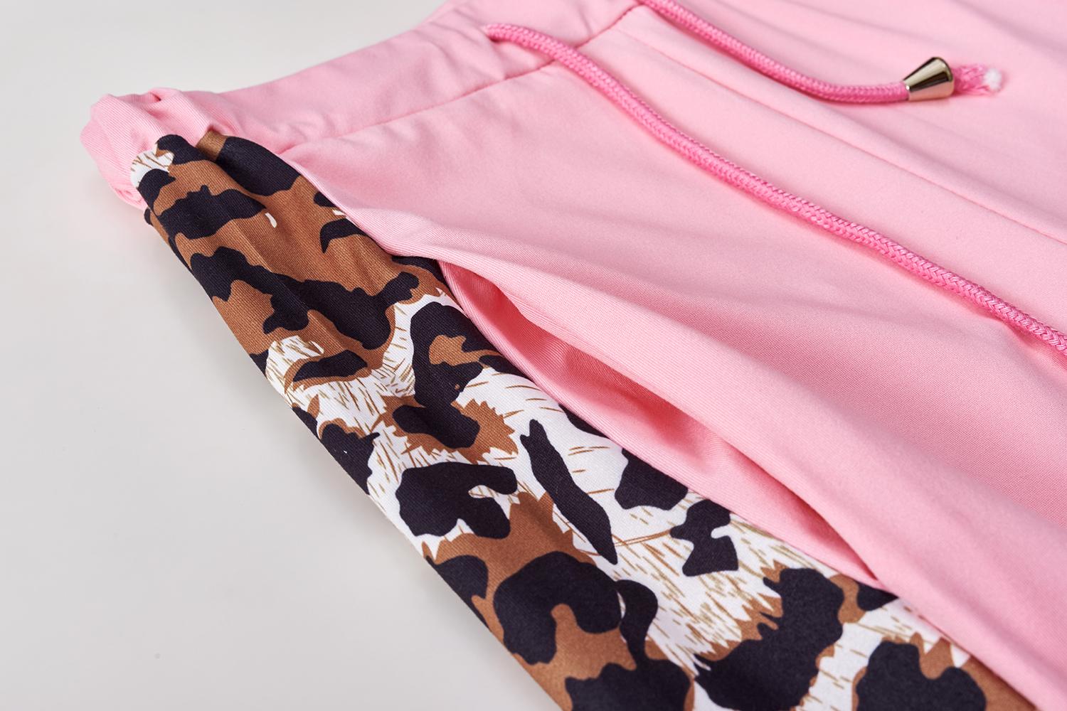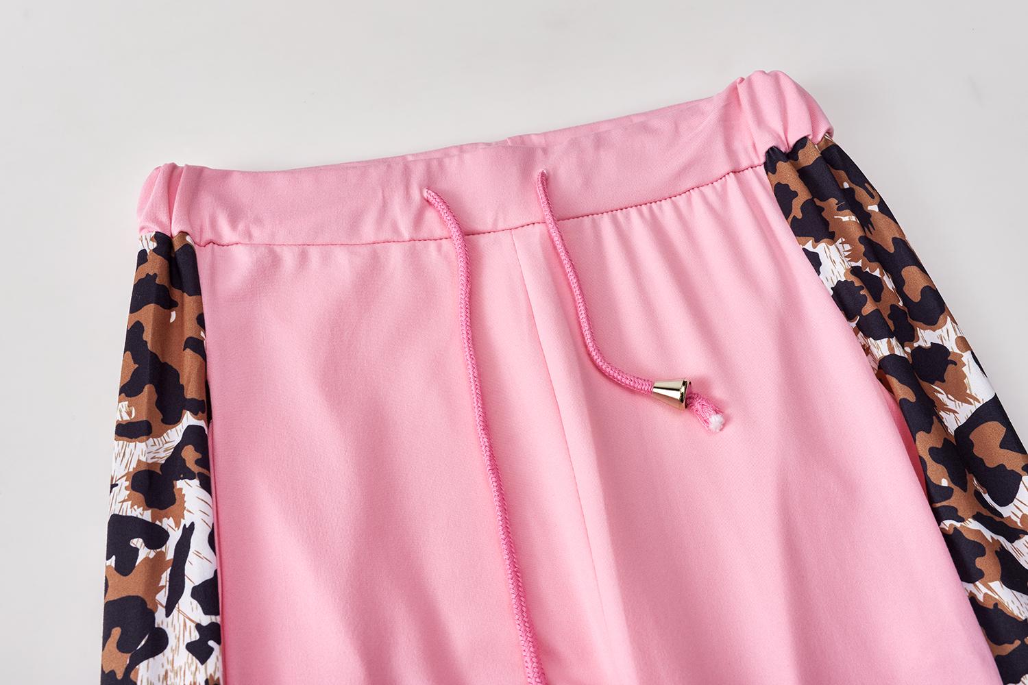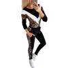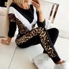 Amazon AliExpress transfronterizo Europa y Estados Unidos Primavera y Otoño Cuello Redondo en V Sudadera con Combinación de Colores Leopardo Traje Deportivo Casual Liquidación