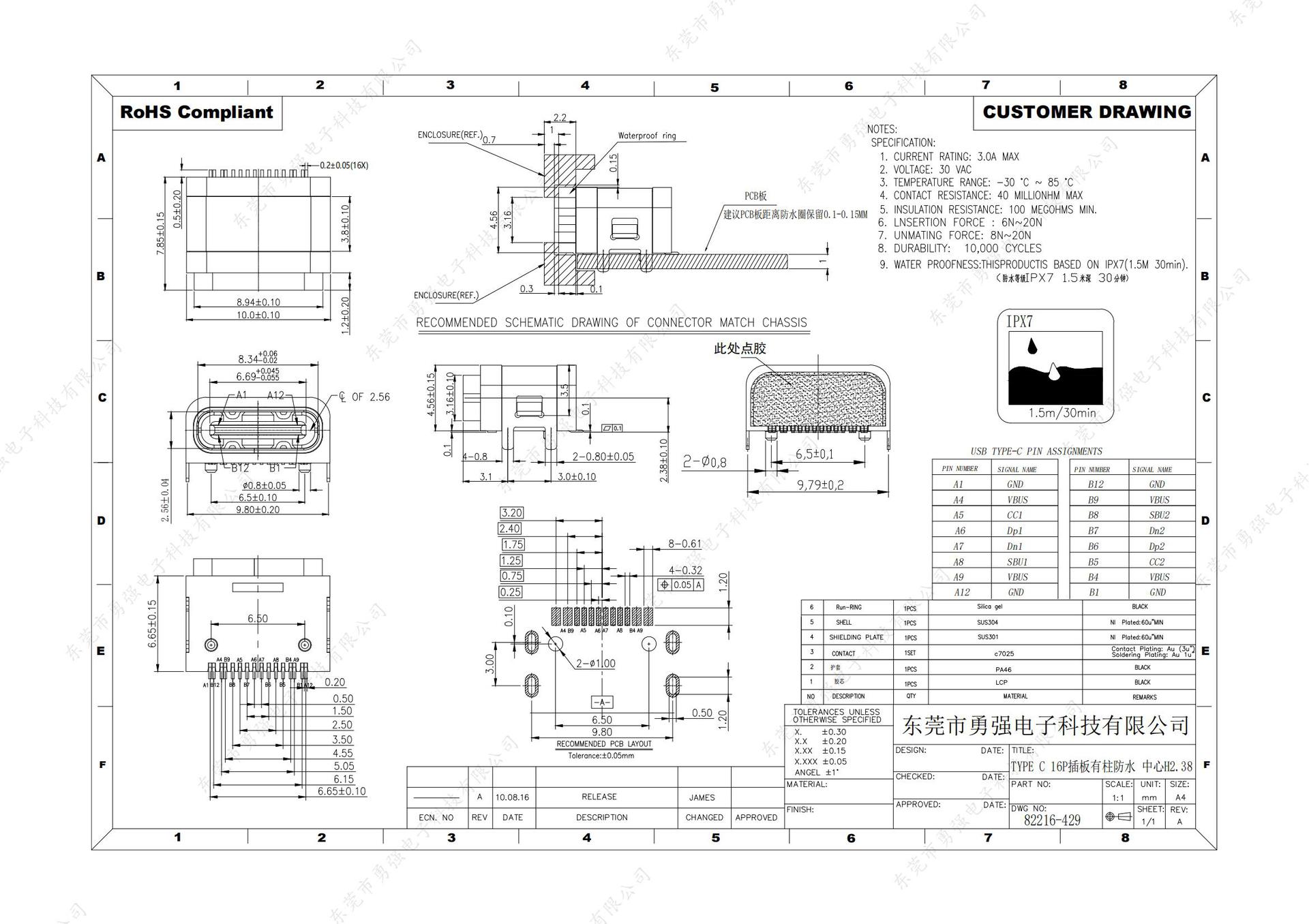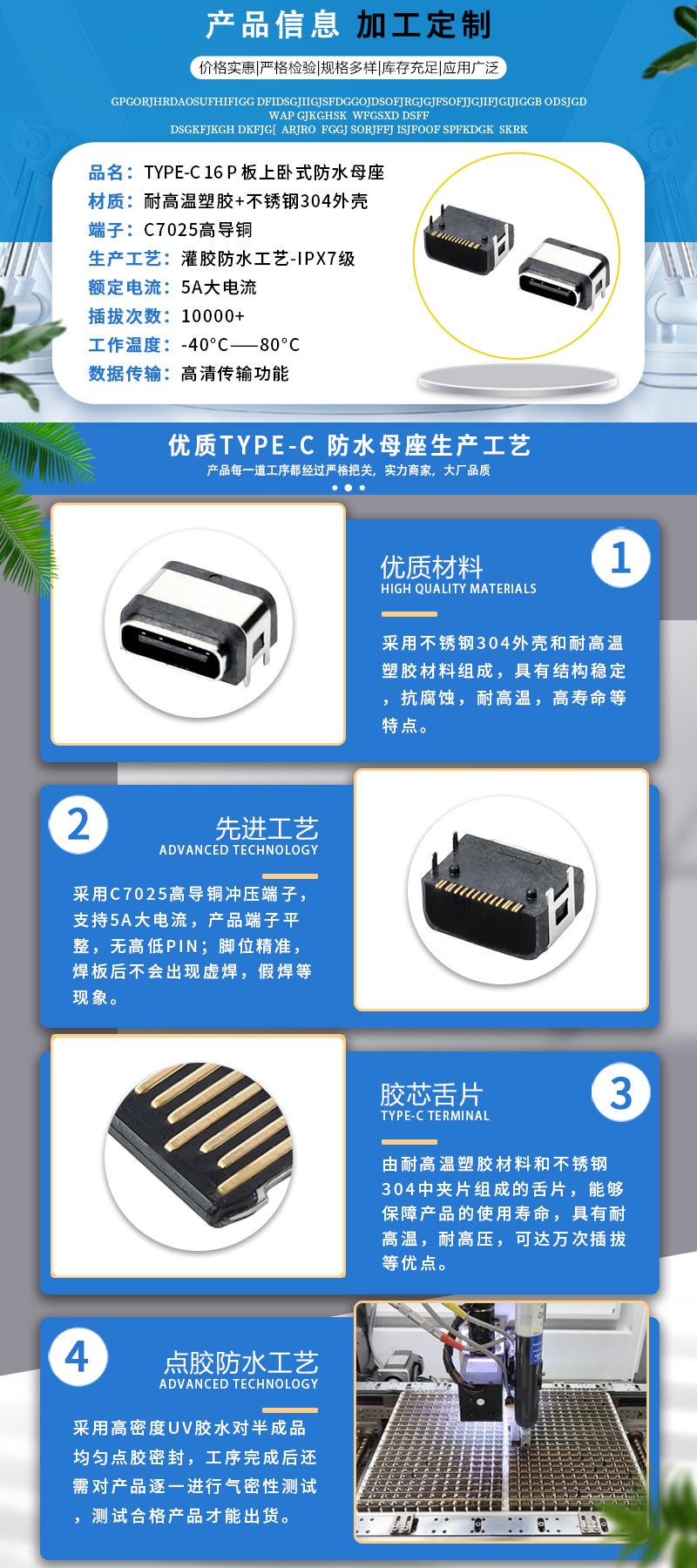 Conector hembra impermeable de cuatro patas con parche horizontal tipo placa de 16 pines, tipo C16P/16 pines