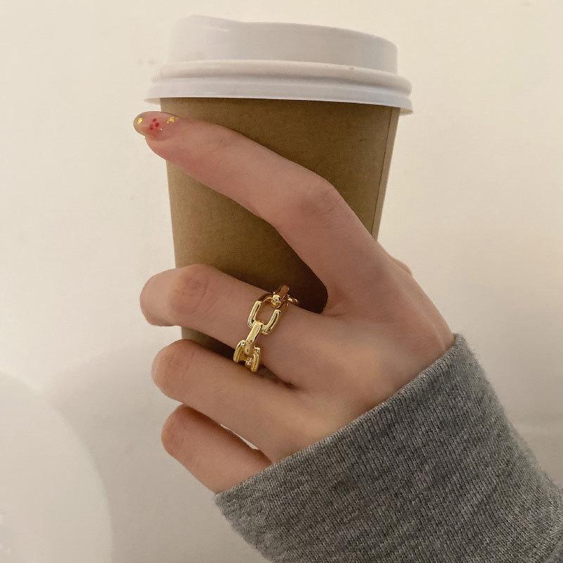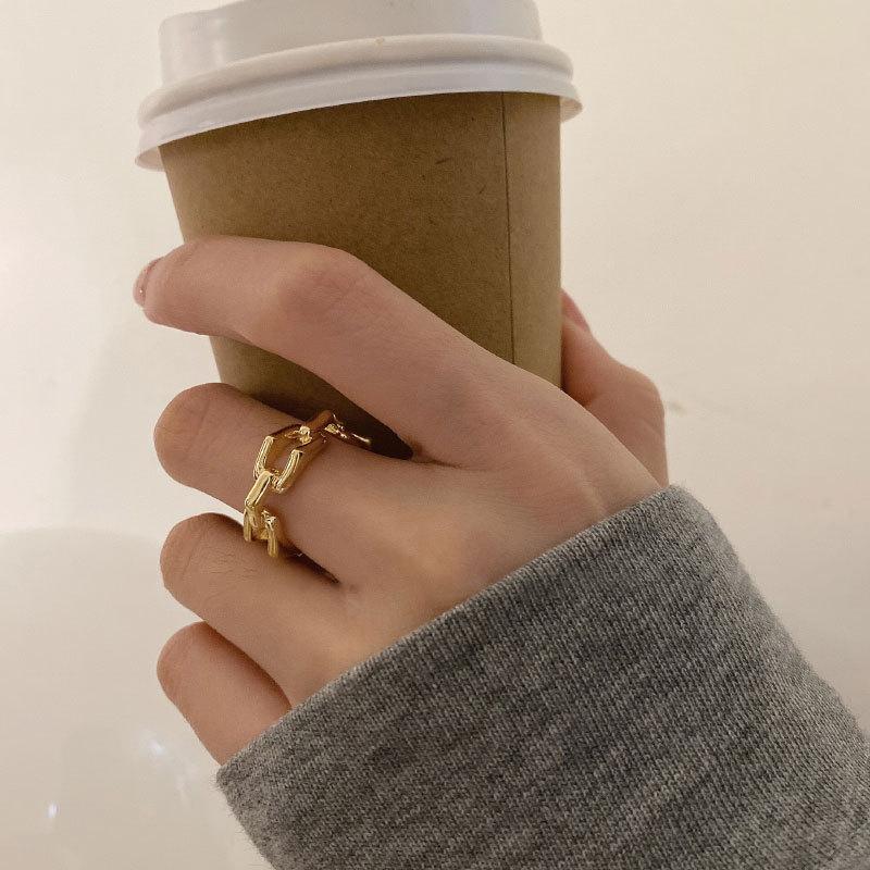 Anillo de Cadena Geométrica Retro S925 Plateado para Mujer Anillo de Diseño de Lujo Simple y Accesible Estilo Hong Kong Anillo de Tendencia para el Dedo Índice