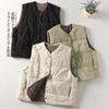 2025 Invierno Algodón y Lino para Mujer Nuevo Acolchado a Cuadros Acolchado Engrosado Artístico Retro para Mujer Chaqueta de Algodón Chaleco