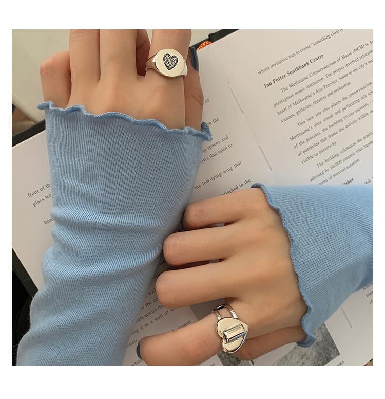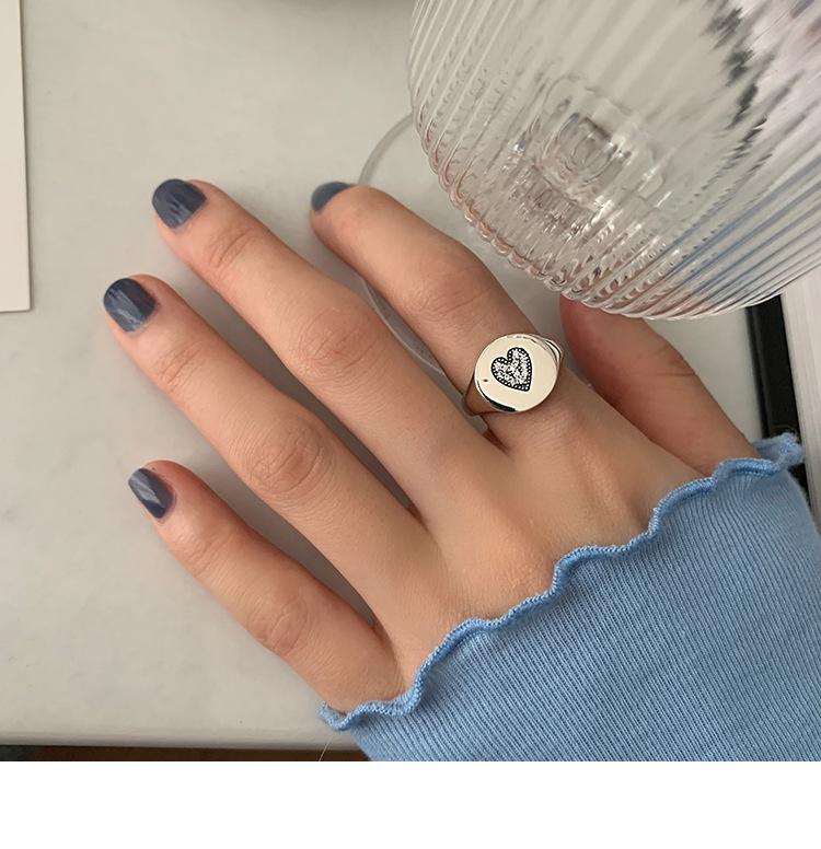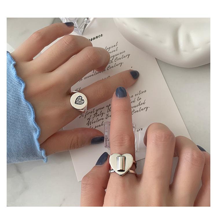 Anillo de Amor Dulce de Plata S925 Japonesa y Coreana para Mujer Moda Retro Elegante Anillo Abierto en Forma de Corazón Anillo de Dedo Hip-hop