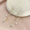Pendientes de dos piezas de perlas Dongdaemun de Corea del Sur para mujer, de alta gama, ligeros, de lujo, con borlas largas, con pasador de plata, joyería para las orejas.