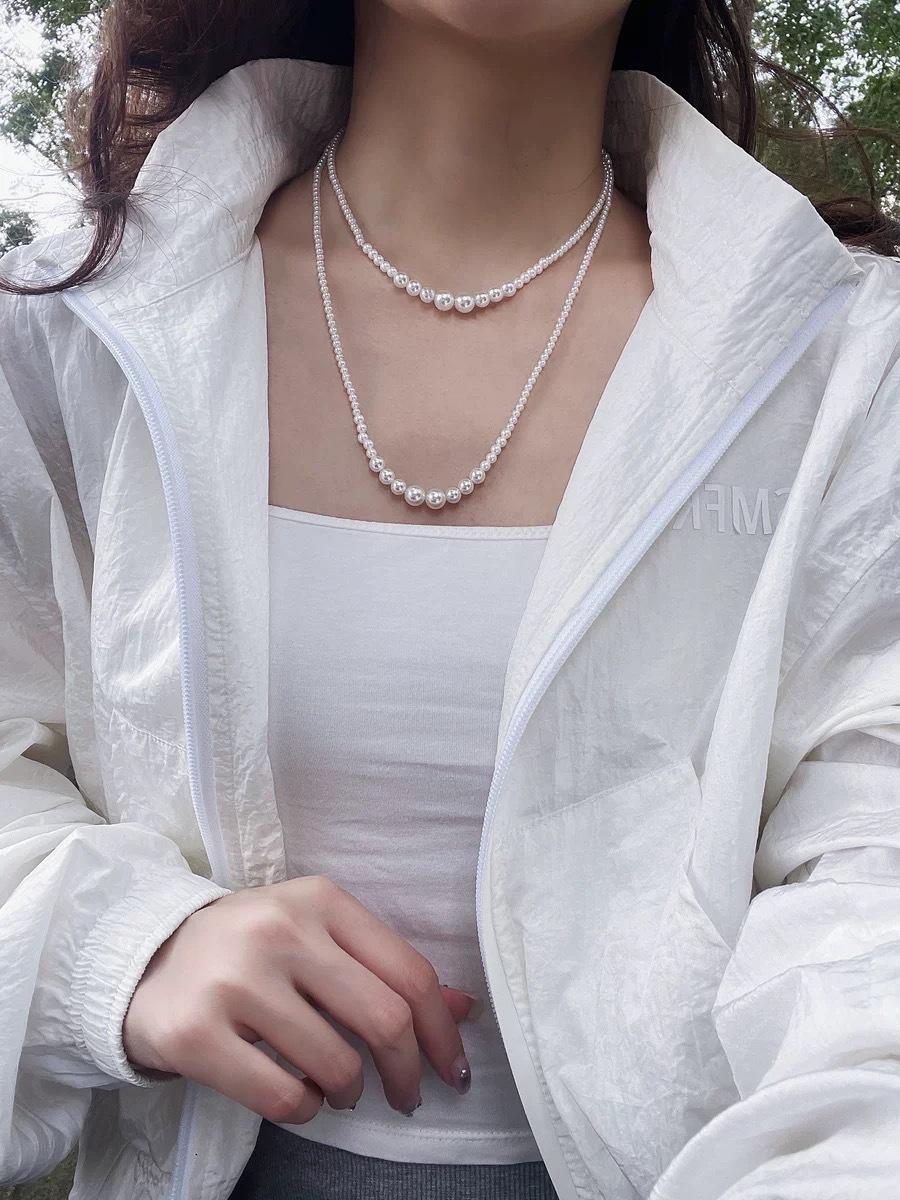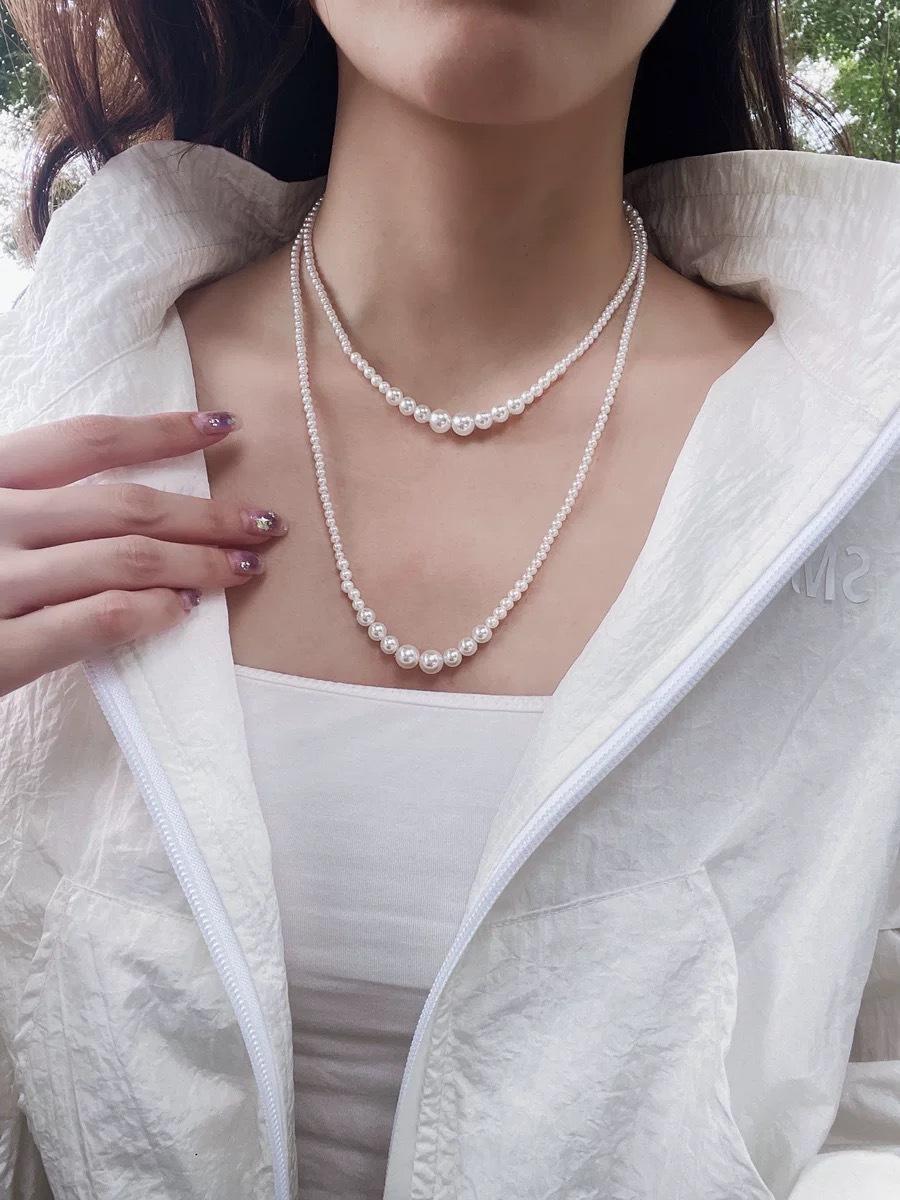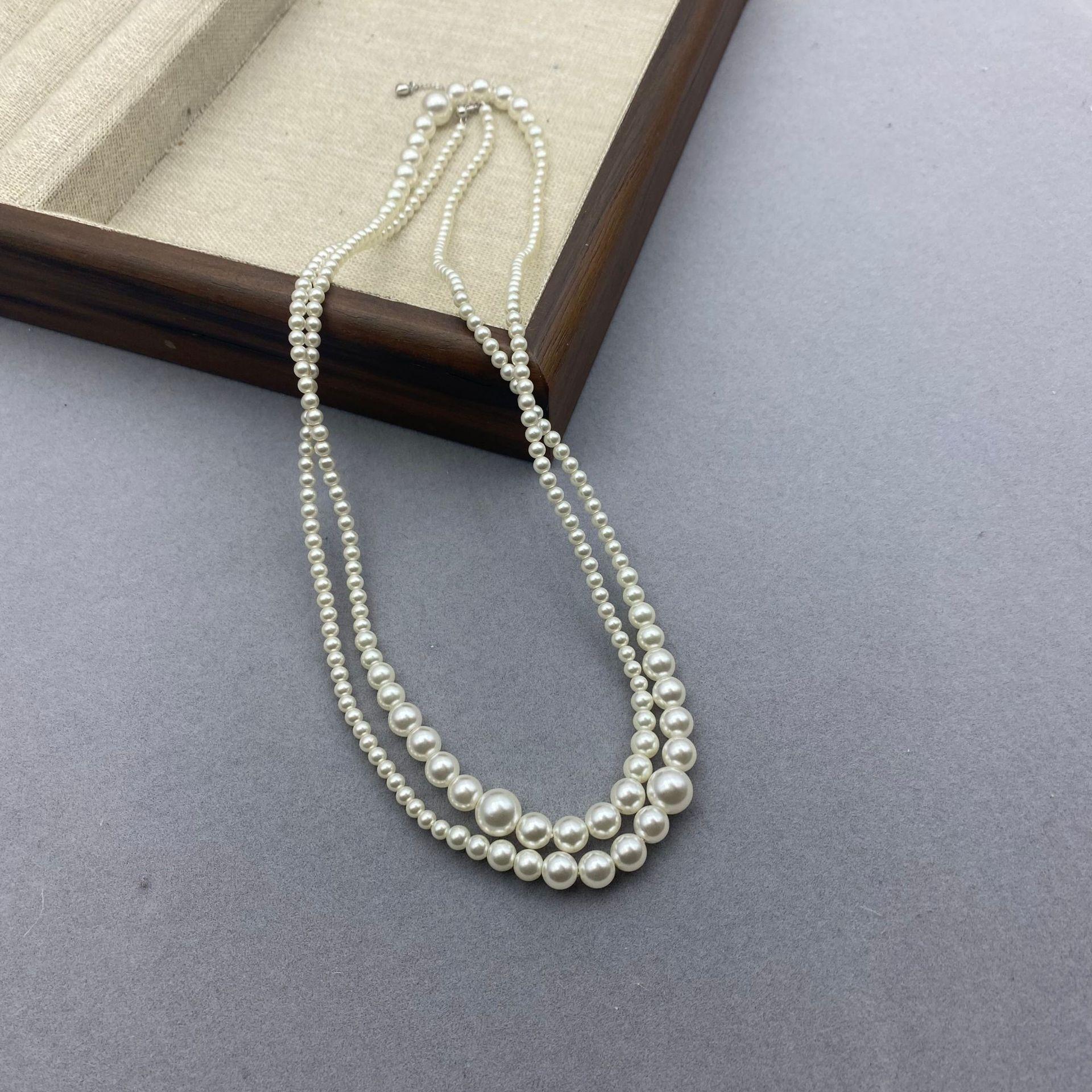 Collar de perlas degradadas para mujer, ligero, de lujo, plegable, estilo retro, para primavera y otoño, elegante, de alta calidad, estilo francés, con cadena de clavícula.