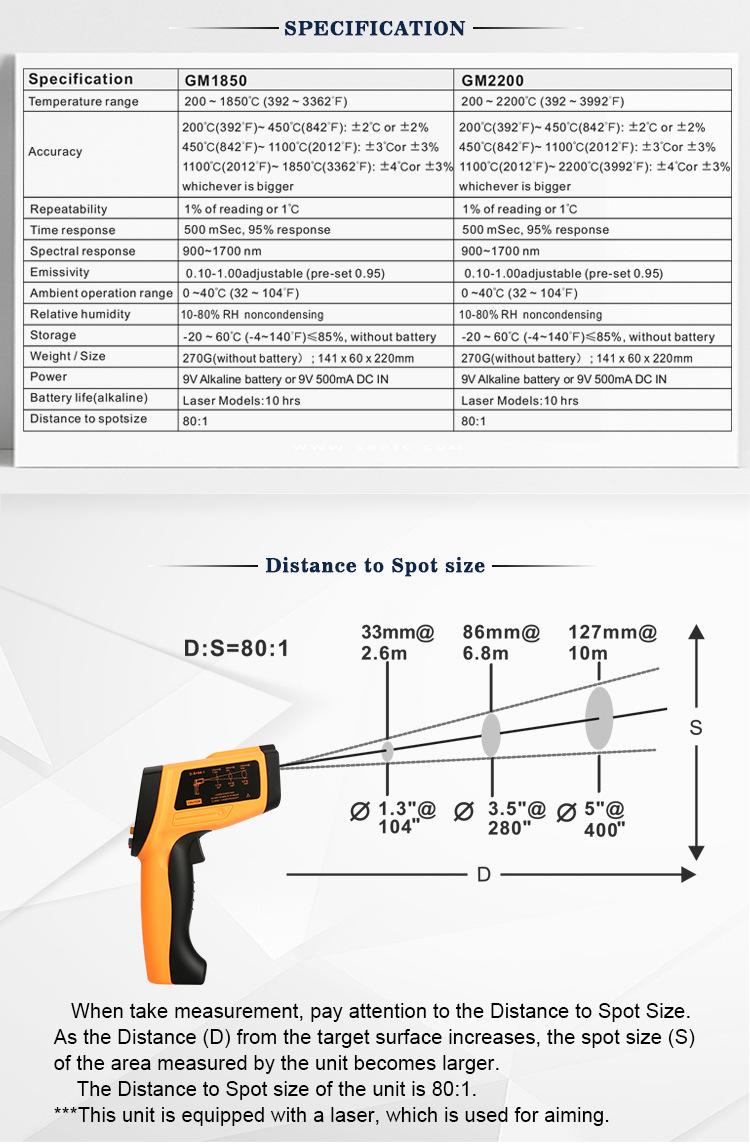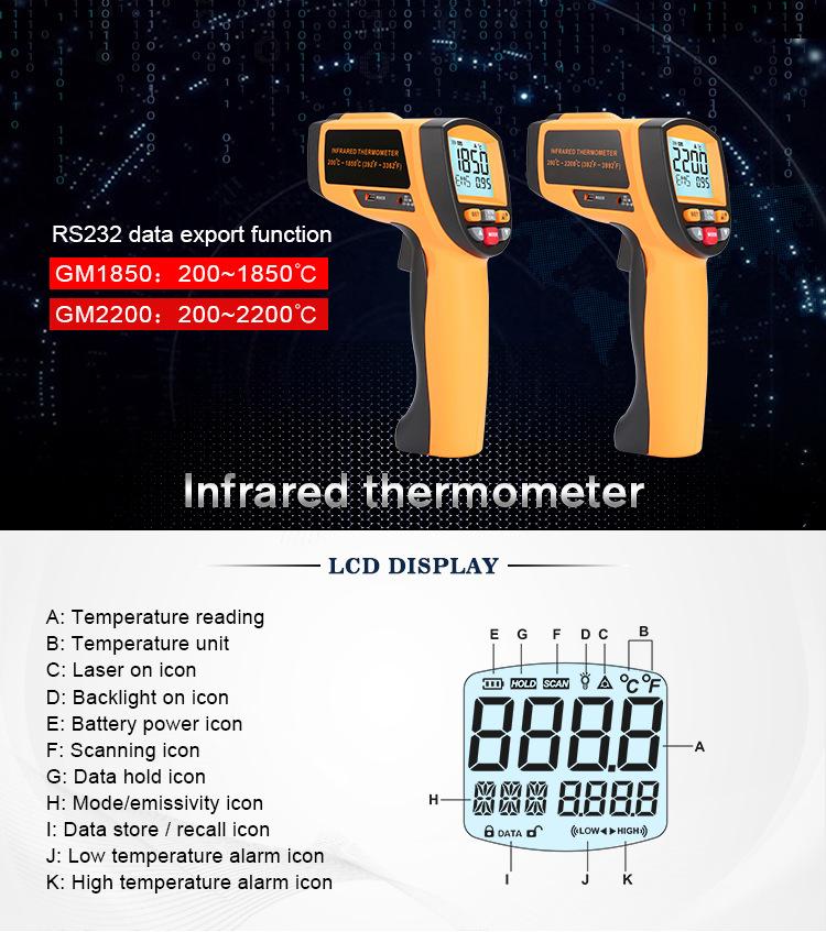 Biaozhi Gm1850&2200 Software para Pistola de Temperatura + Almacenamiento Termómetro Infrarrojo Temperatura Infrarroja