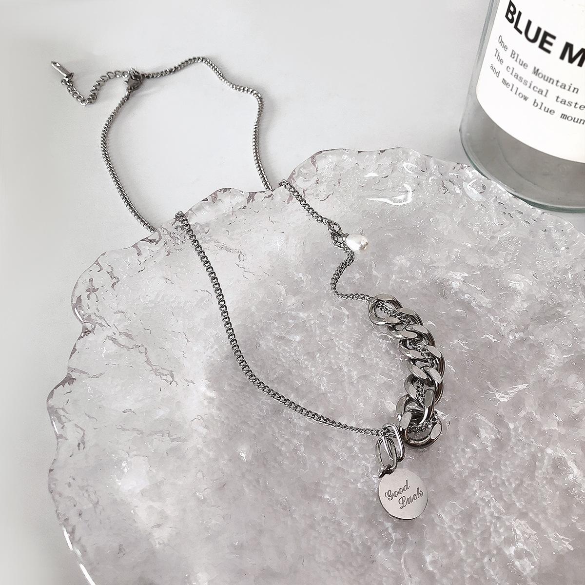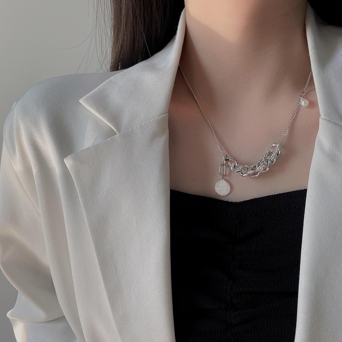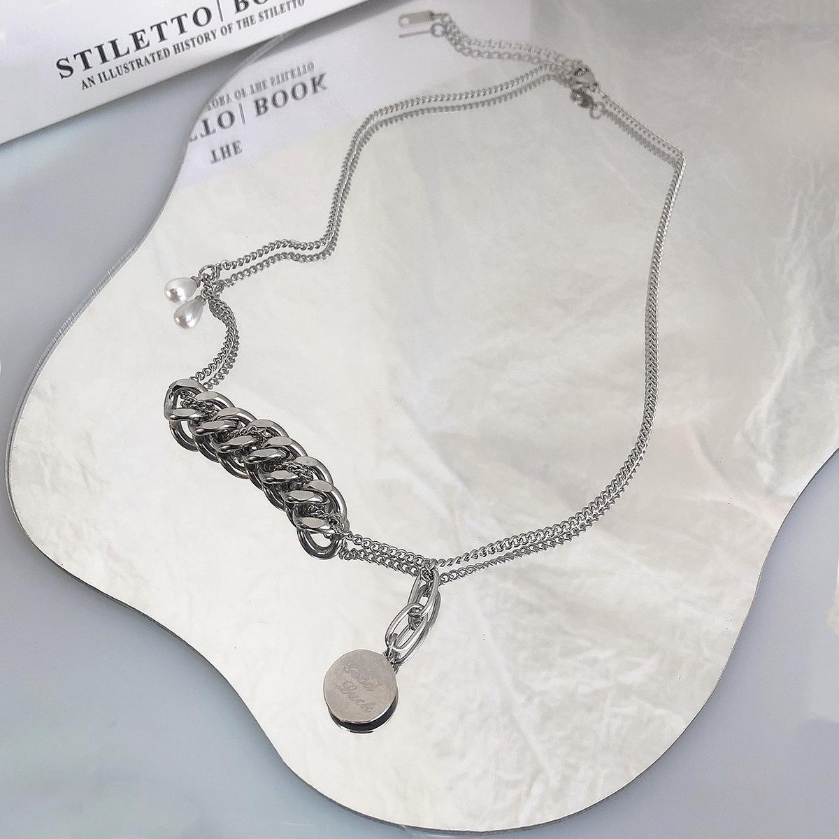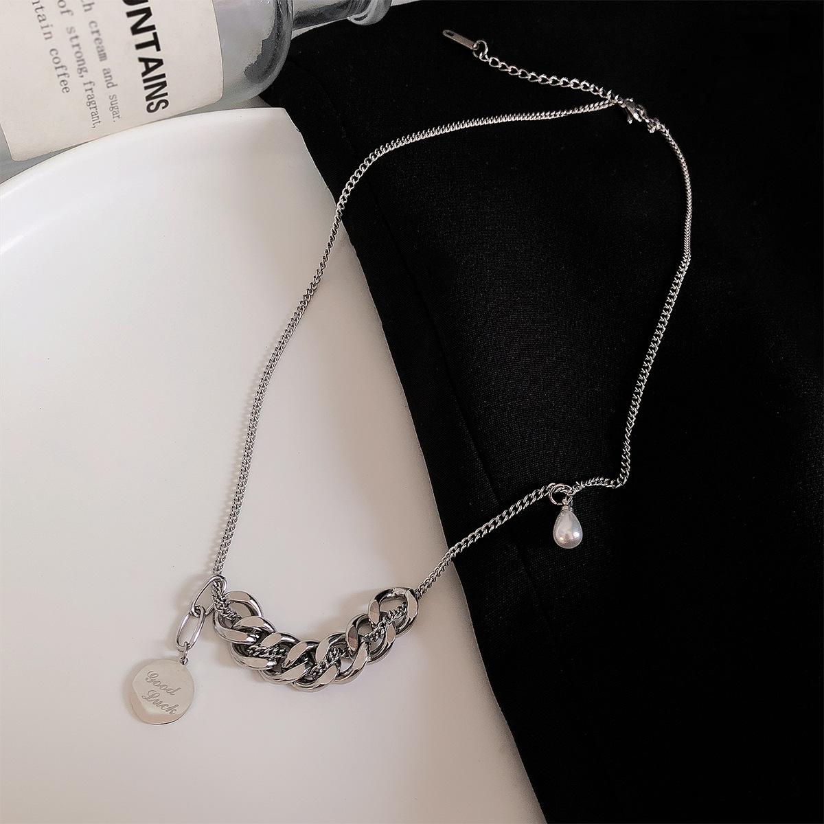 Cadena de clavícula de perlas para mujer, estilo hip hop, de lujo, ligera y sencilla, con accesorios de alta calidad, de acero de titanio y metal sin color.