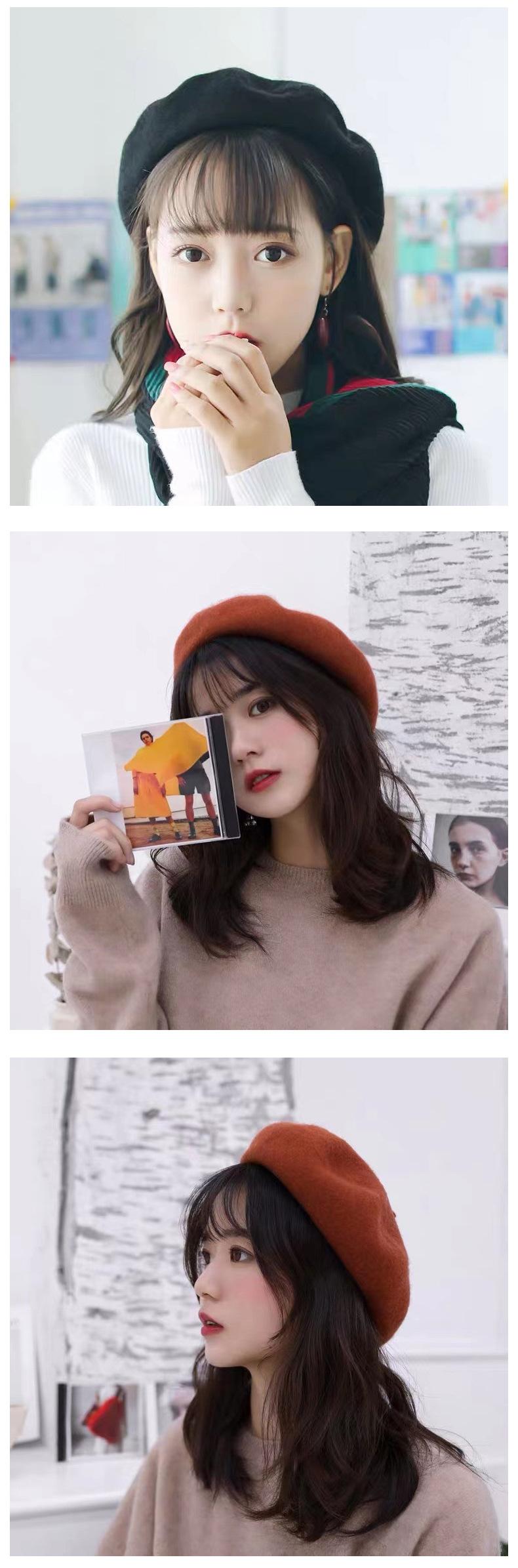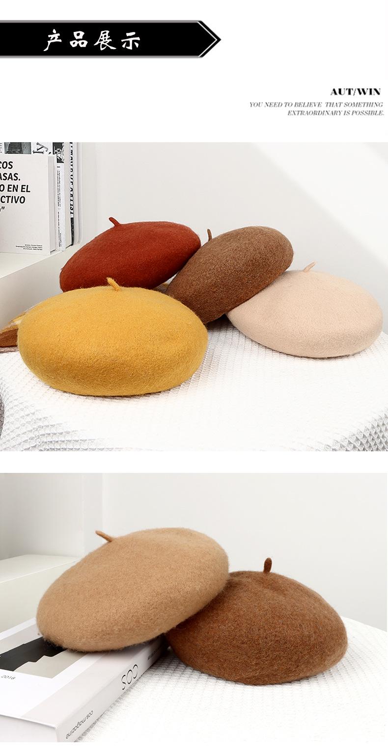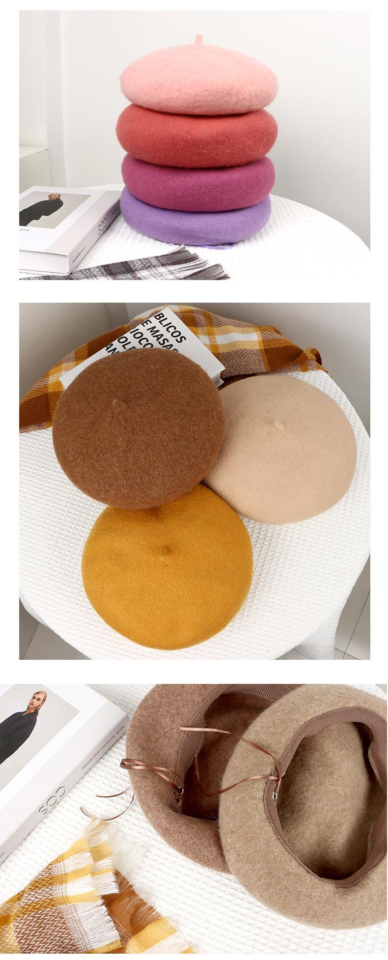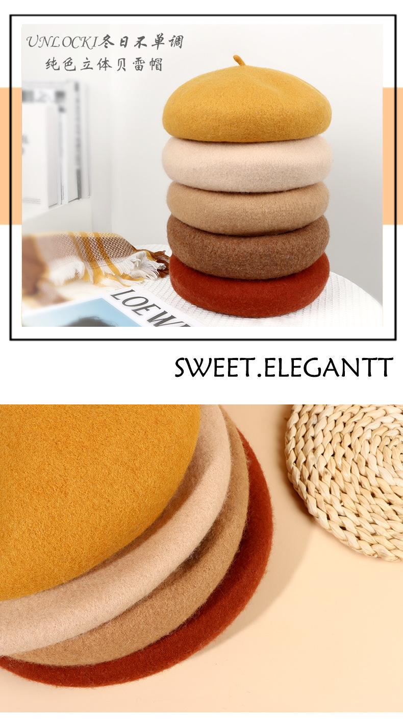 Sombrero de Lana Mujer Moda Coreana Boina Lana Retro Elegante Sombrero de Pintor Color Sólido Lindo Sombrero de Calabaza