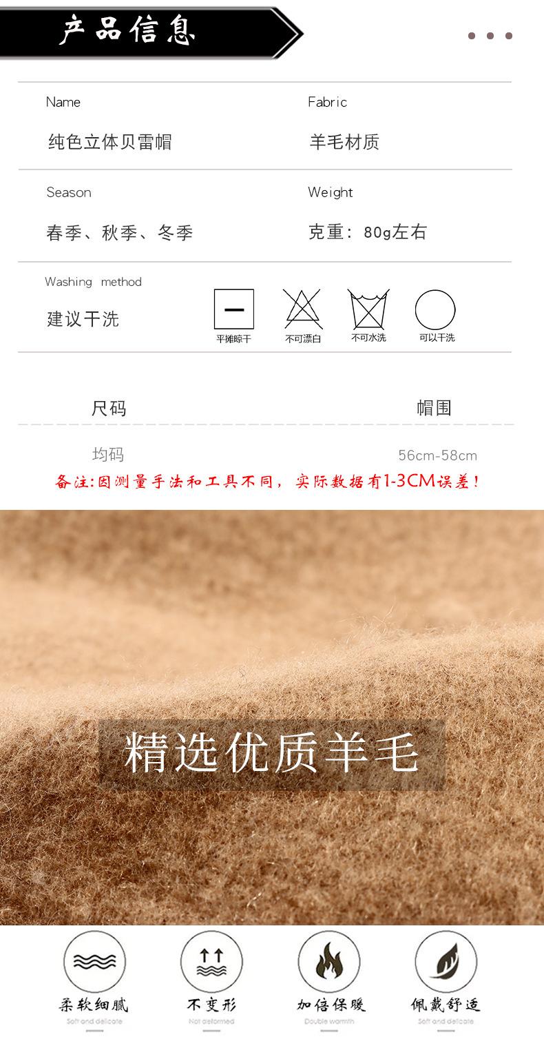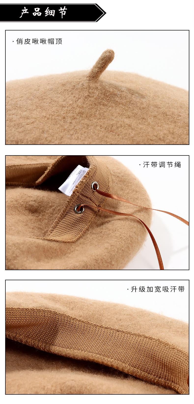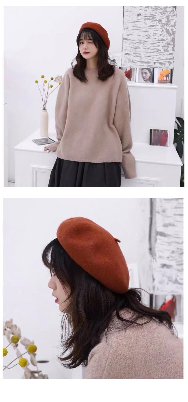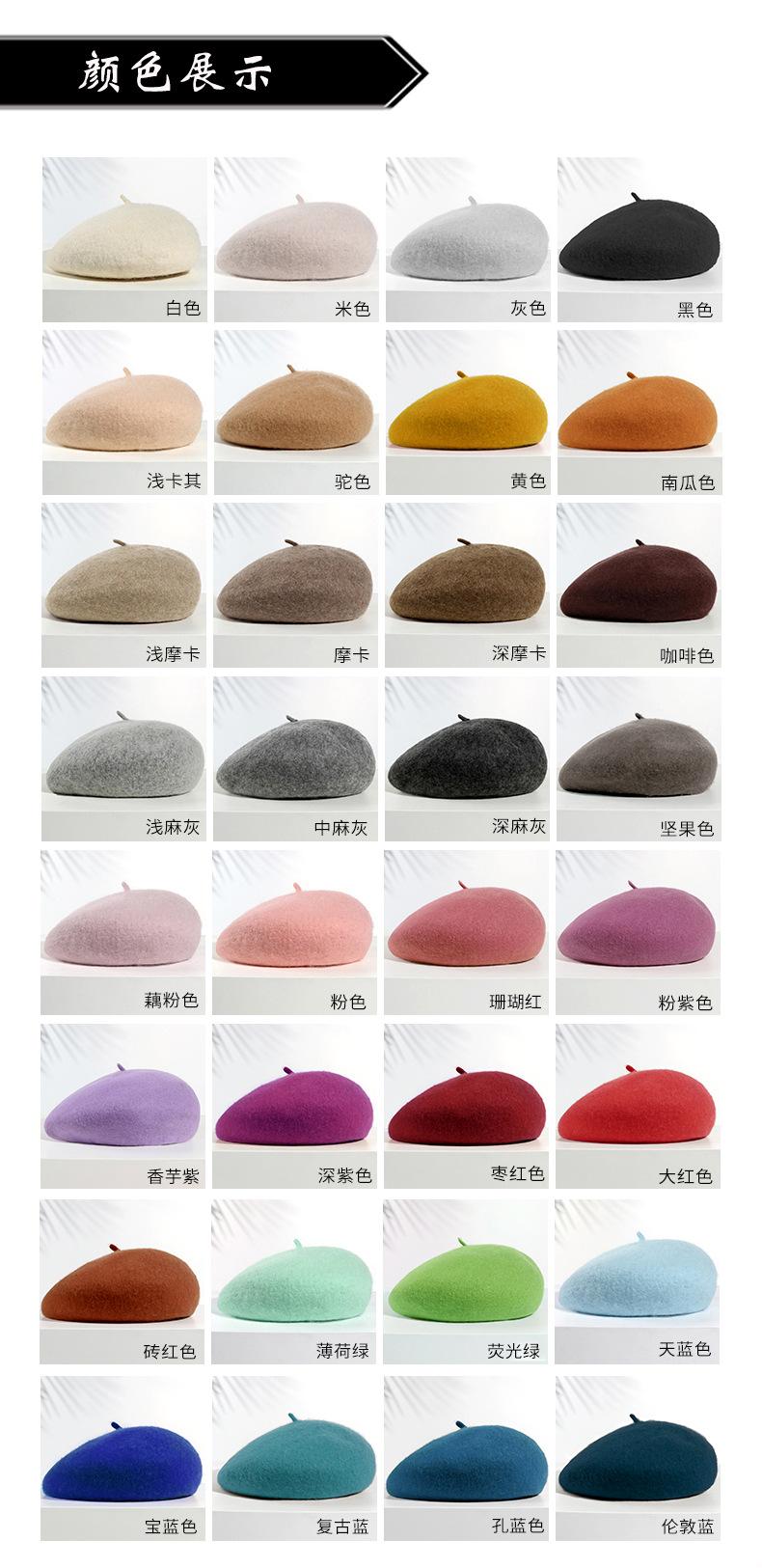 Sombrero de Lana Mujer Moda Coreana Boina Lana Retro Elegante Sombrero de Pintor Color Sólido Lindo Sombrero de Calabaza