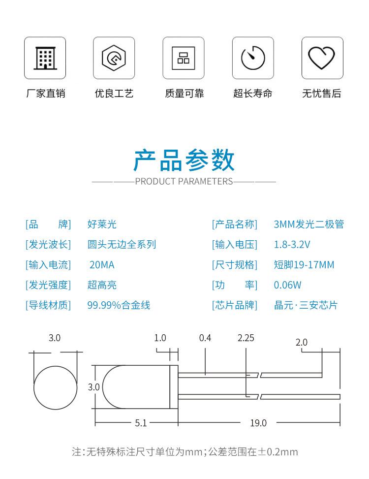 Diodo Emisor de Luz LED F3/3Mm Cabeza Redonda Pata Corta Infinidad Luz Blanca Niebla Rojo Azul Verde Amarillo Enchufe Directo Perlas de Lámpara LED