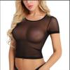 Lencería Sexy, Atractiva Ropa de Casa de Malla, Pijamas para Mujer, Crop Top Transparente, Camiseta, Sexy Hueco Estilo Europeo y Americano