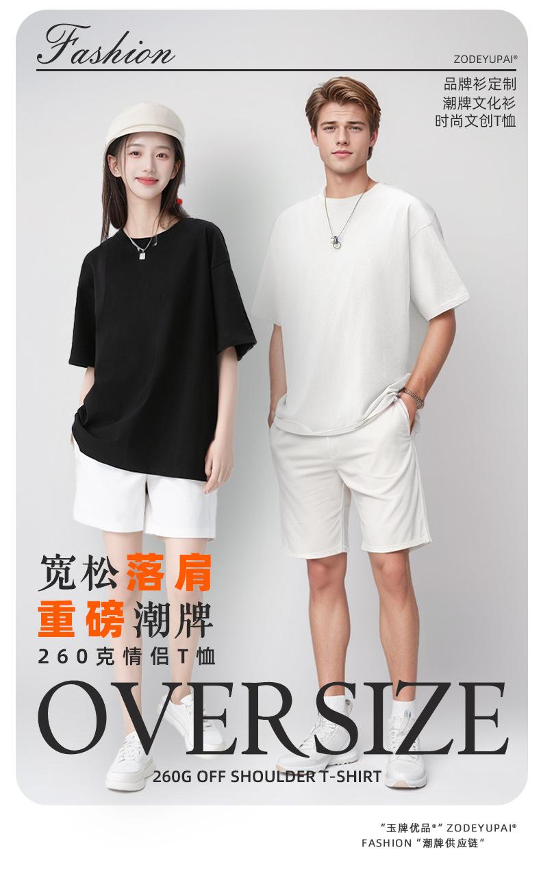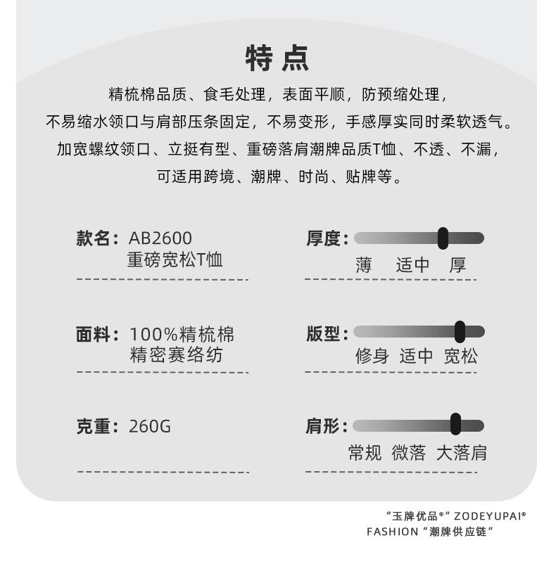 Marca de moda de algodón puro de 260 g, hombros caídos y sueltos.