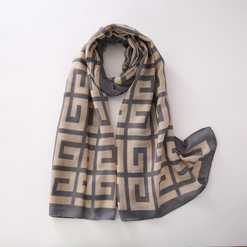 Bufanda de Geometría Moldeada de Algodón Nuevo y Sensación de Lino para Mujer Invierno Estilo Coreano Combinable Cálida Gasa Chal de Doble Uso Toalla de Playa