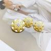 Estilo socialité Xiaoxiang botón repujado con copo de nieve botón redondo de metal con incrustaciones de diamantes hebilla para abrigo de piel traje chaqueta