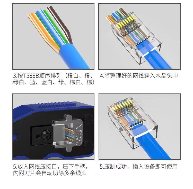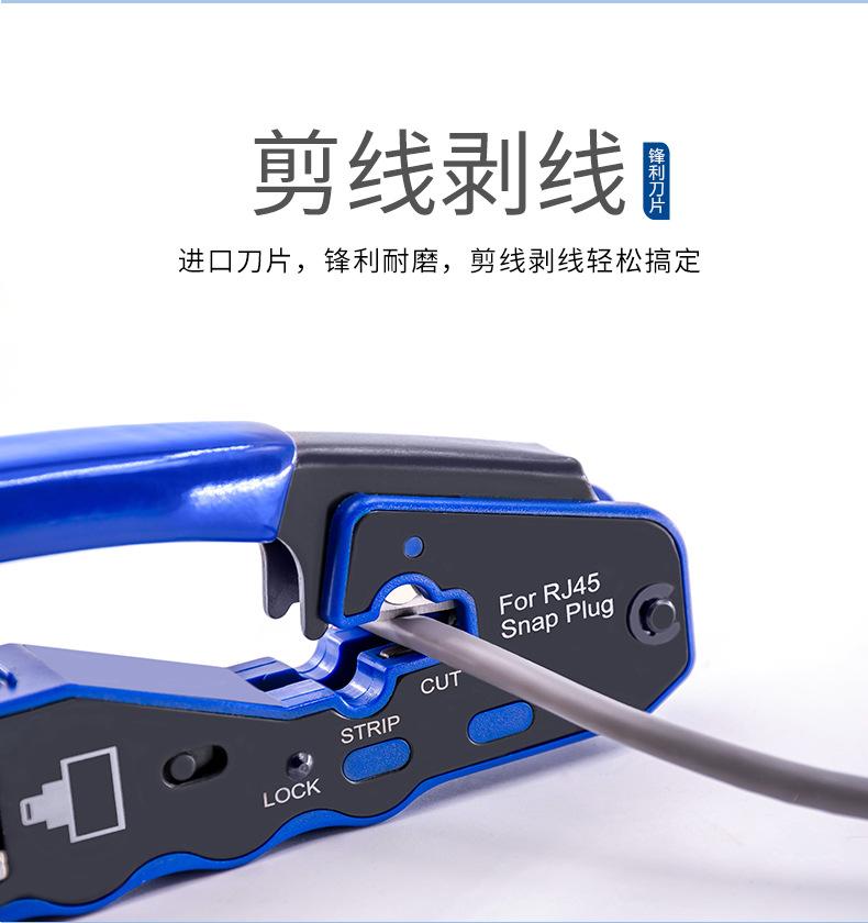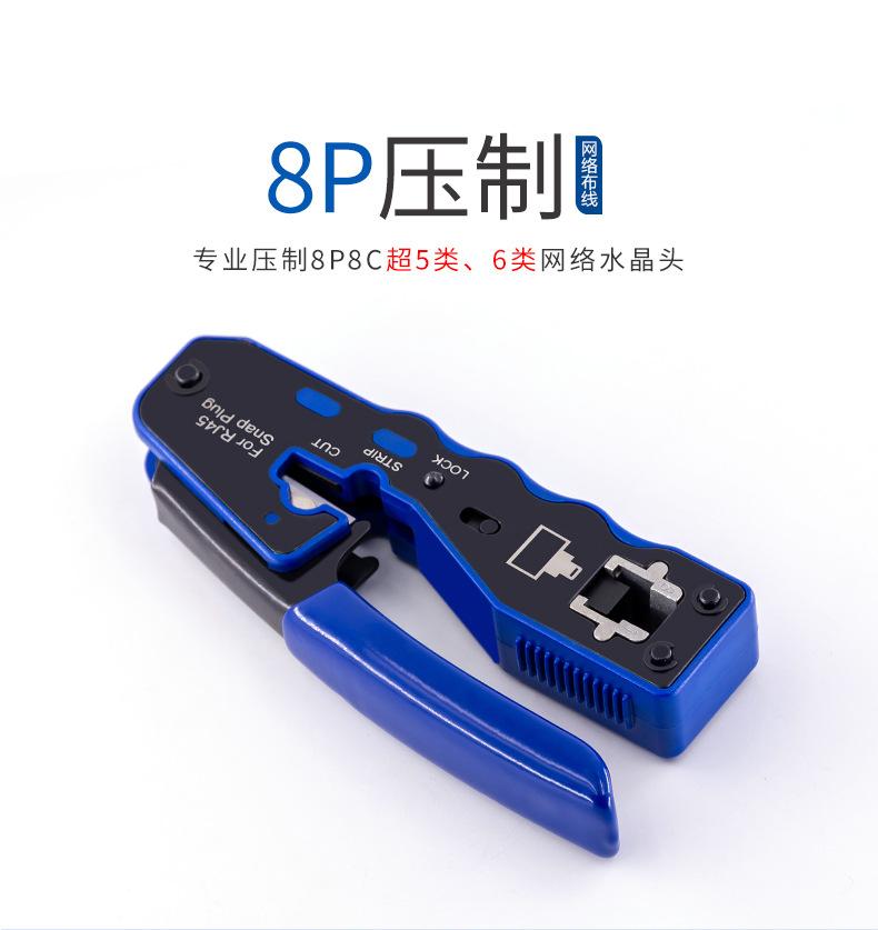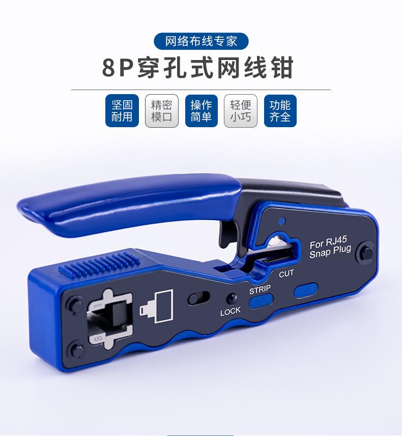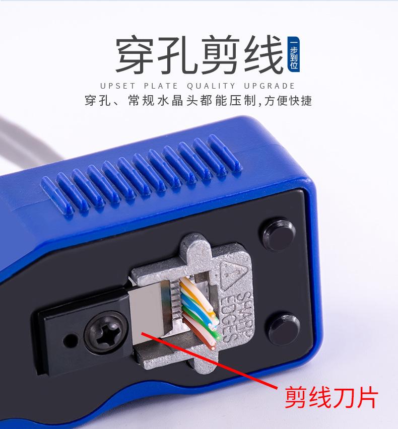 Alicates de red con cabeza de cristal, alicates de grado profesional para cables perforados, alicates de crimpado de cables con orificio pasante, 8P, súper cinco, seis tipos de blindaje