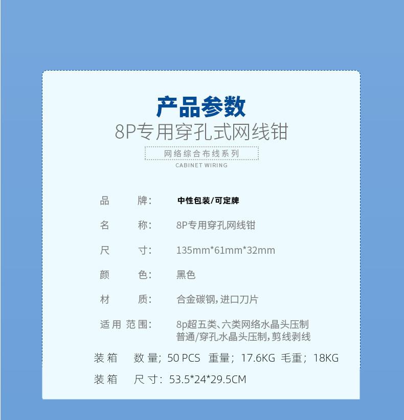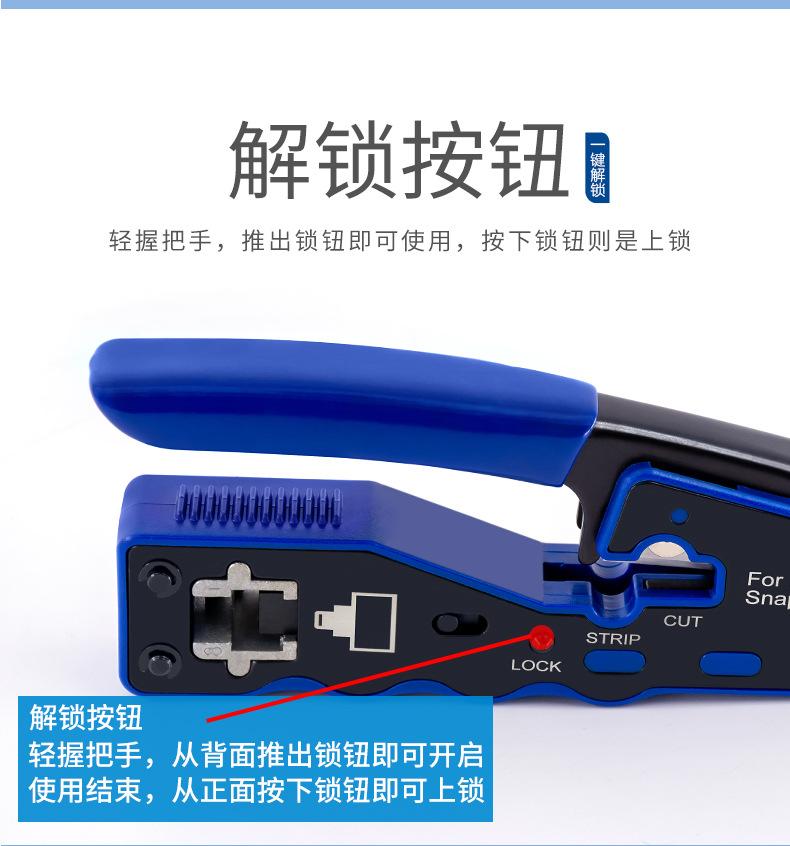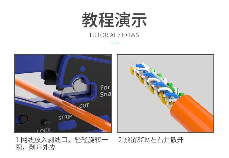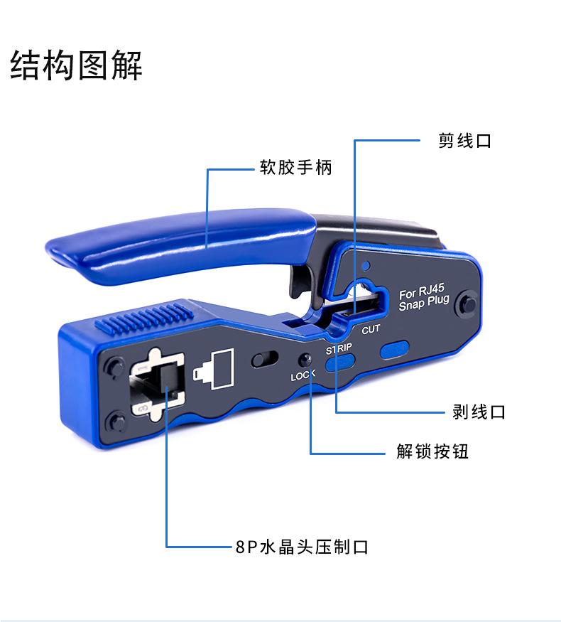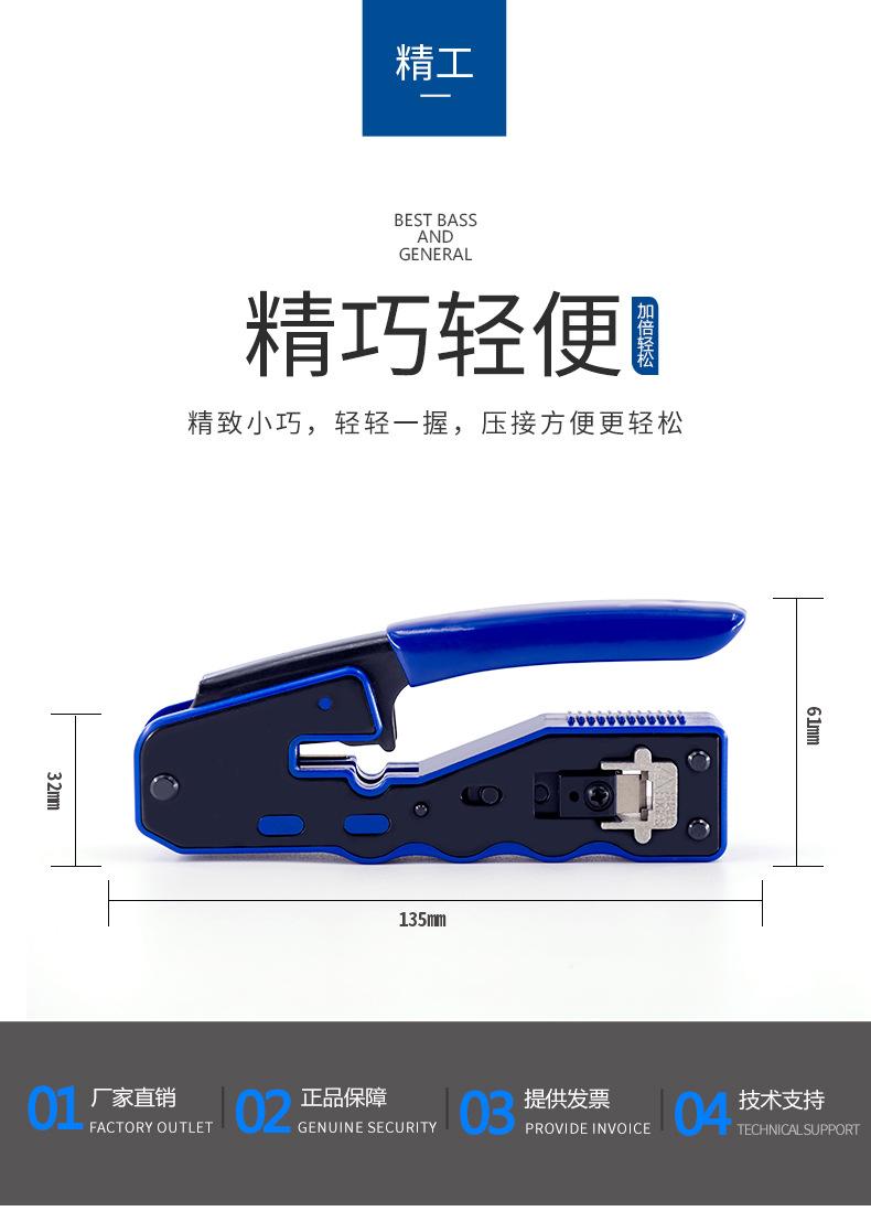 Alicates de red con cabeza de cristal, alicates de grado profesional para cables perforados, alicates de crimpado de cables con orificio pasante, 8P, súper cinco, seis tipos de blindaje