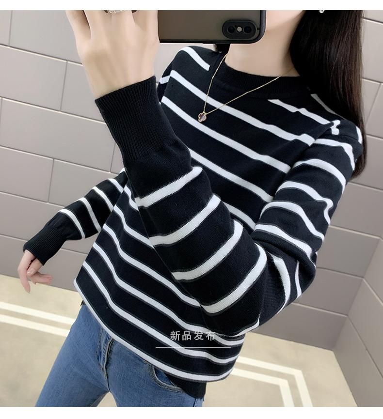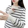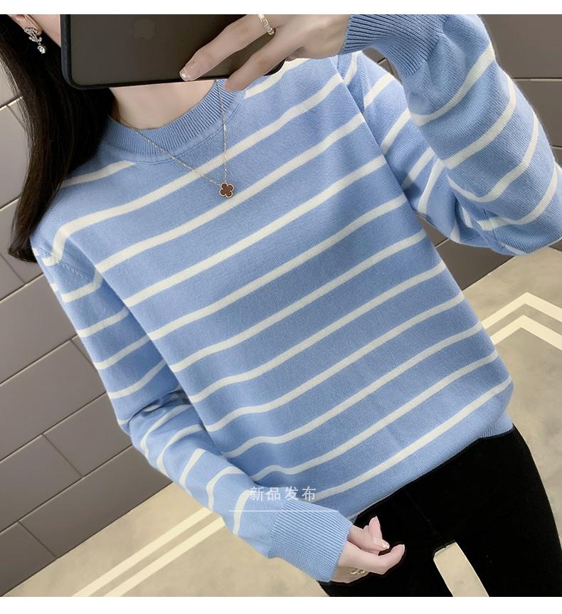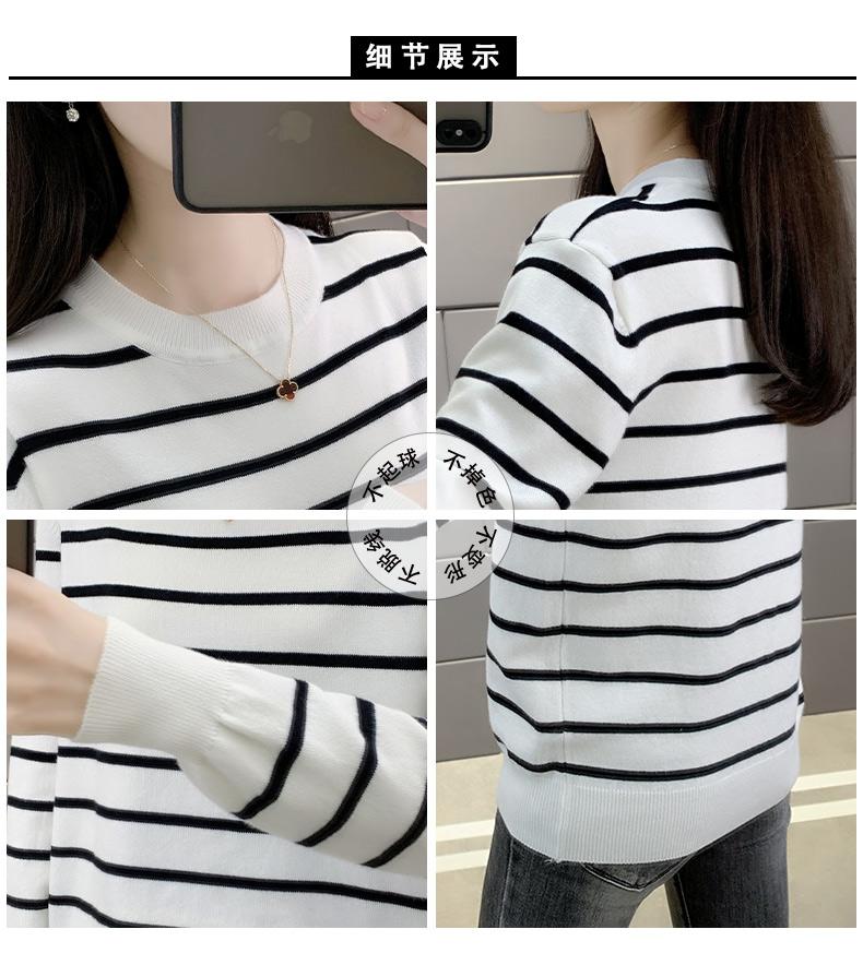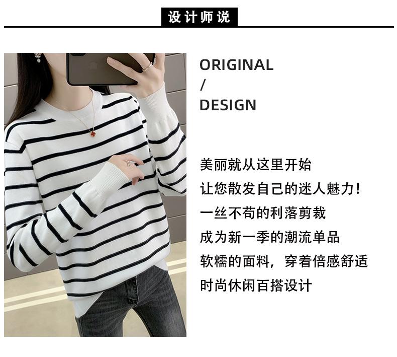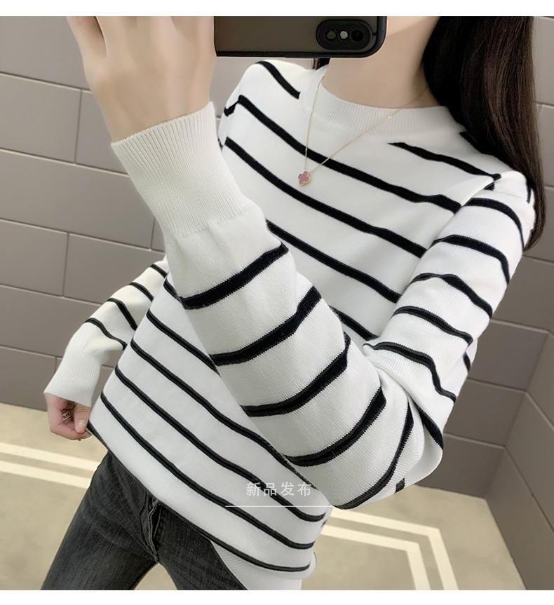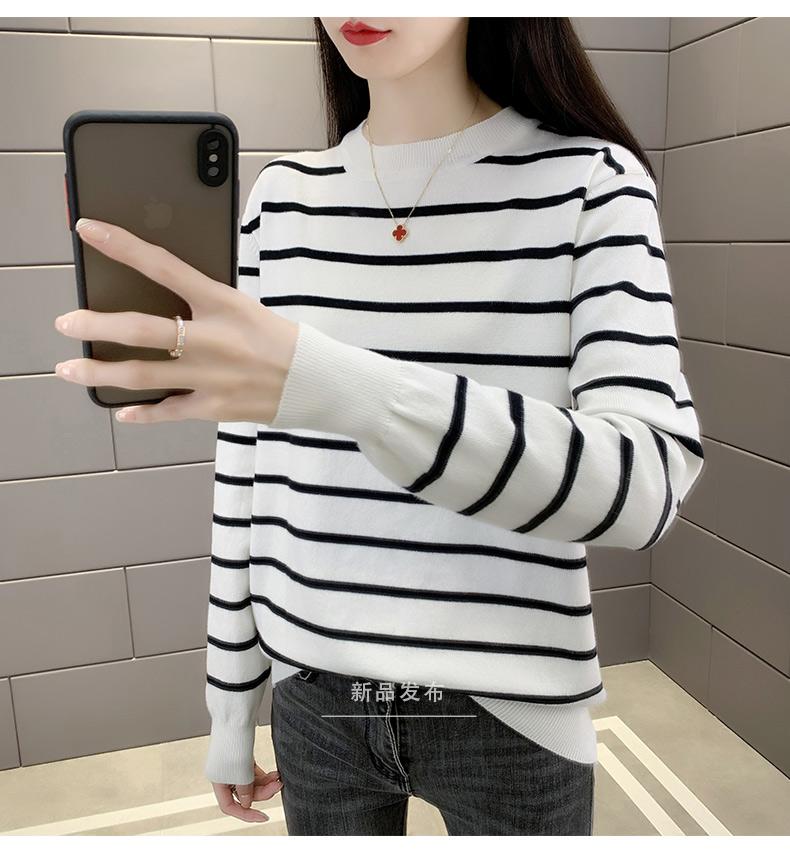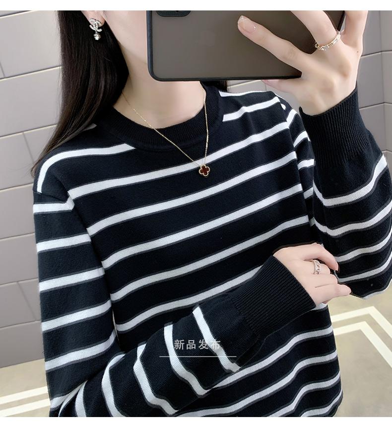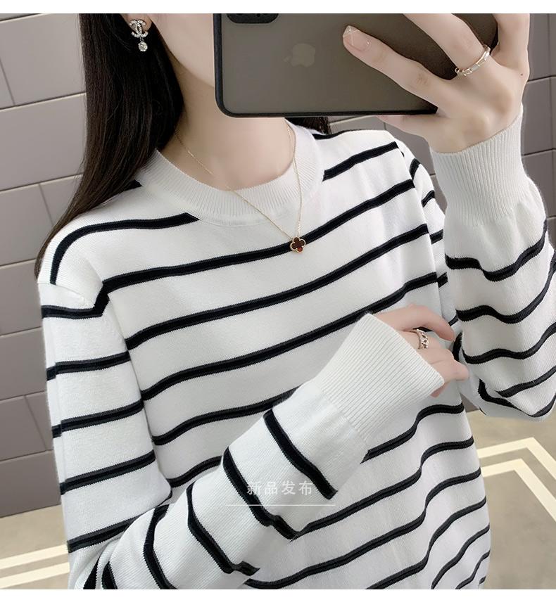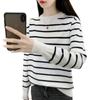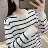 Suéter de Rayas de Cuello Redondo Blanco para Mujer Top Holgado tipo Pulóver Otoño 2025 Nuevo Suéter Tejido para Mujer Más Fácil para Combinar para Fondo