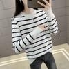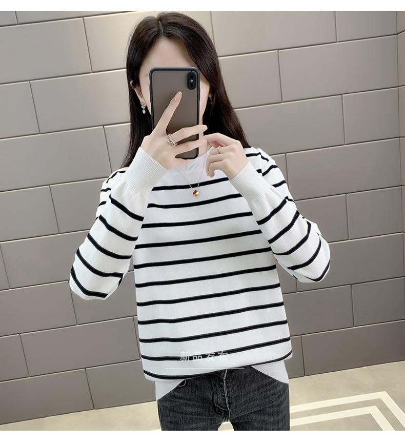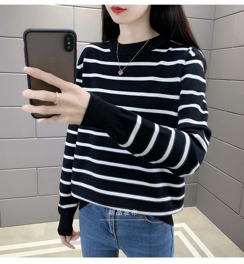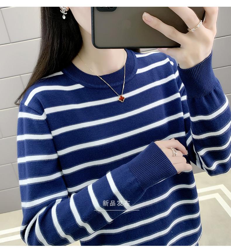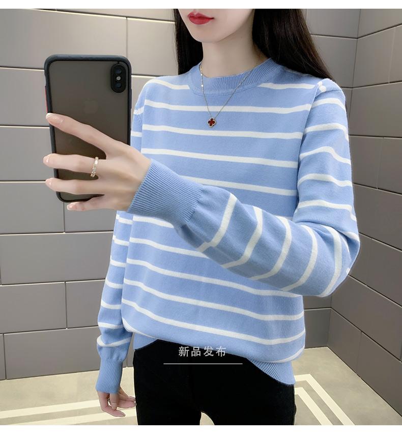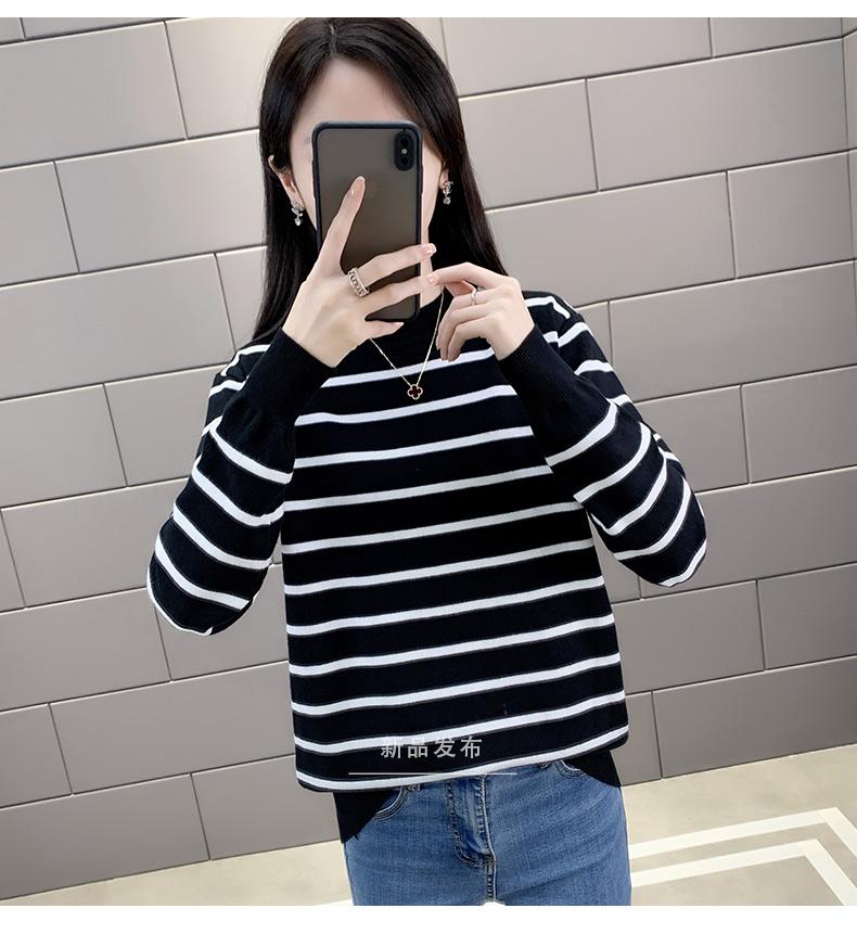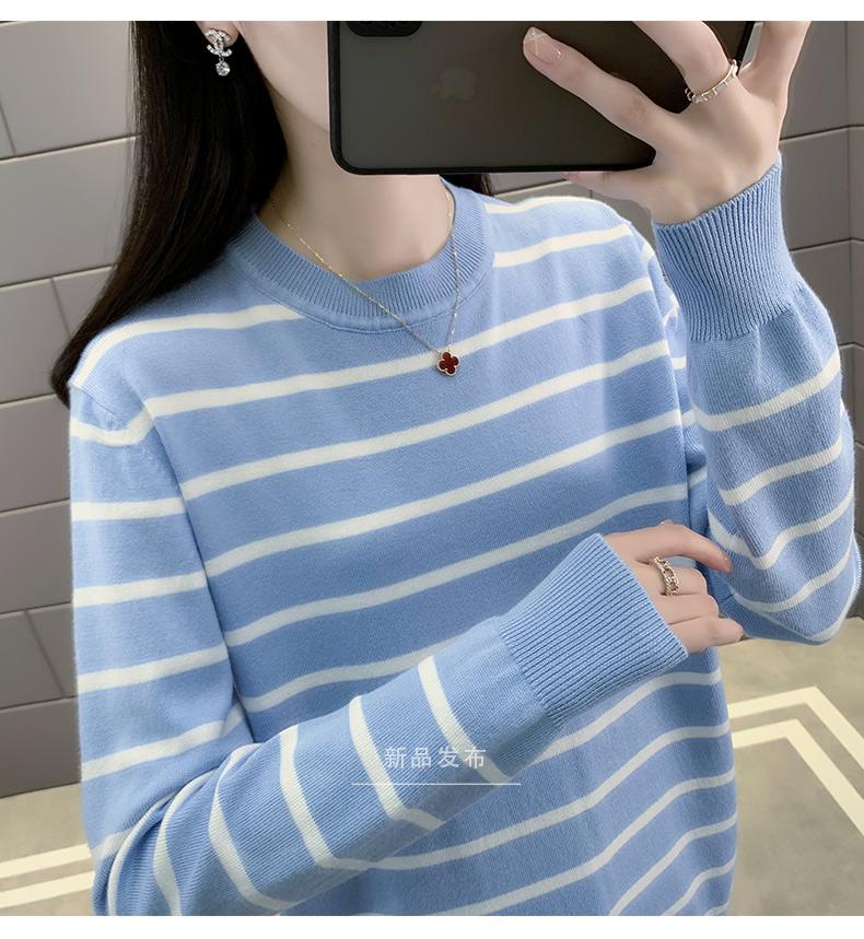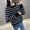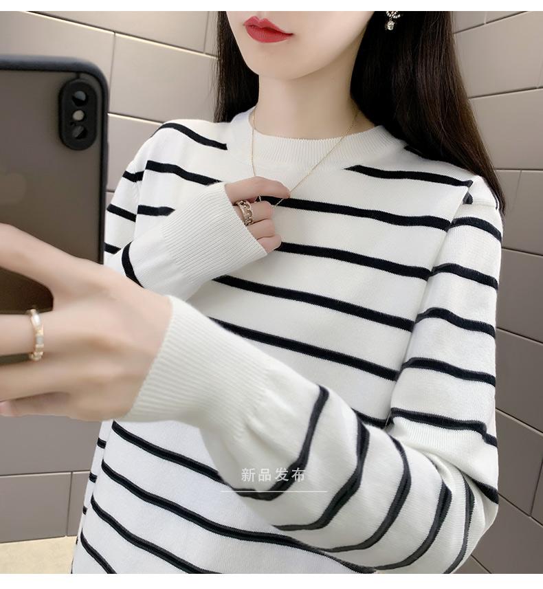Suéter de Rayas de Cuello Redondo Blanco para Mujer Top Holgado tipo Pulóver Otoño 2025 Nuevo Suéter Tejido para Mujer Más Fácil para Combinar para Fondo