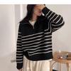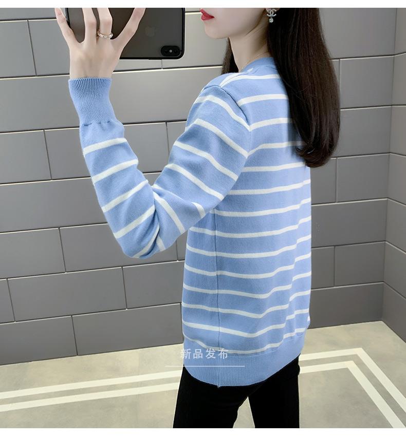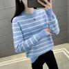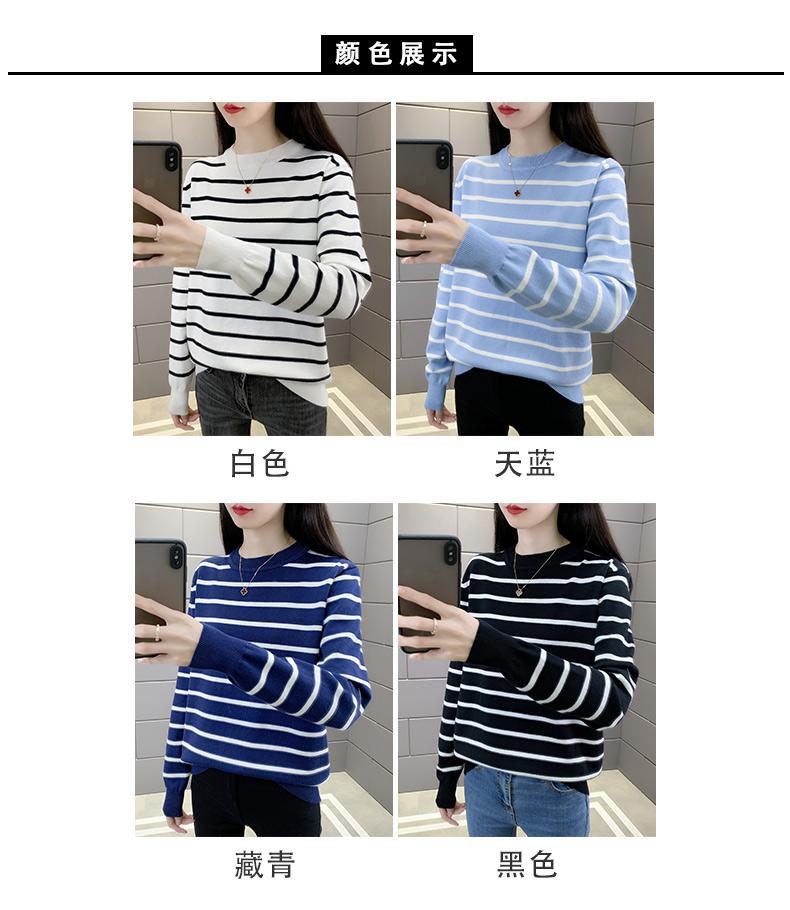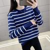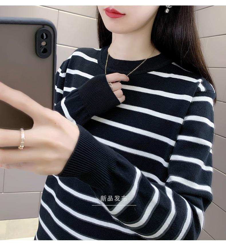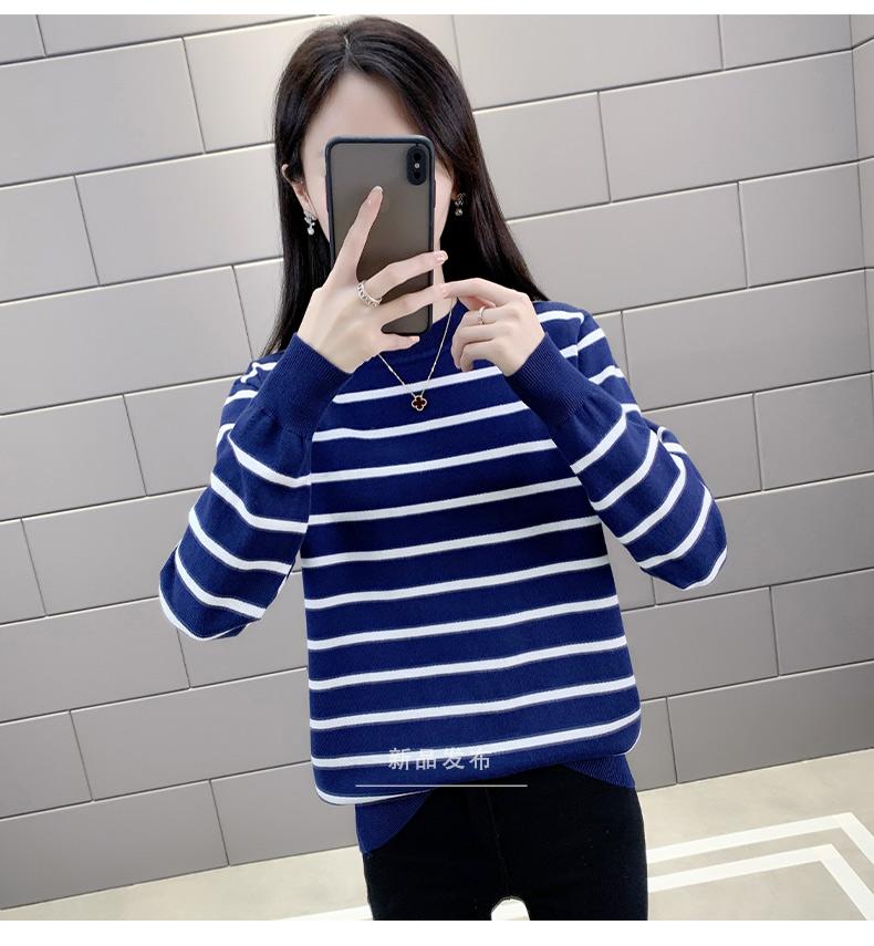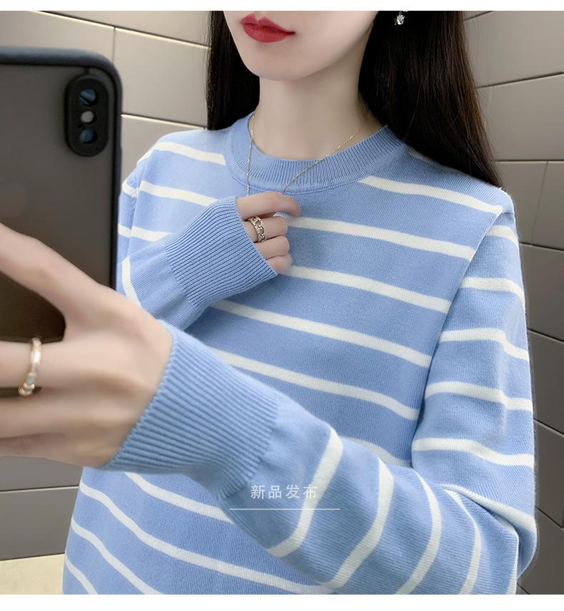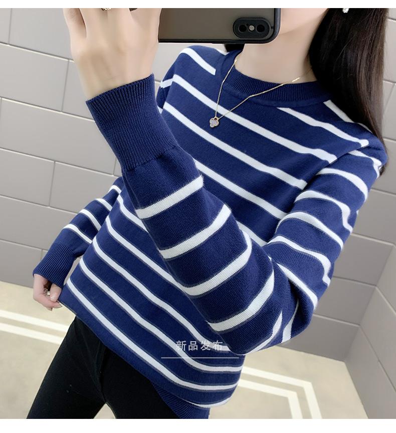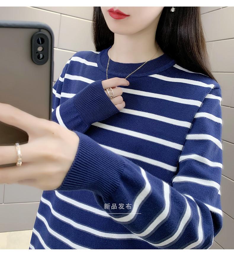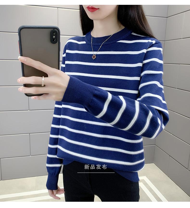 Suéter de Rayas de Cuello Redondo Blanco para Mujer Top Holgado tipo Pulóver Otoño 2025 Nuevo Suéter Tejido para Mujer Más Fácil para Combinar para Fondo