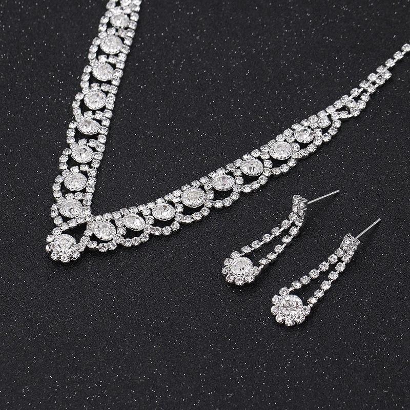Collar de novia, collar de circonitas artificiales, pendientes, pulsera, traje, joyería de boda, banquete de boda, vestido de banquete de estilo coreano
