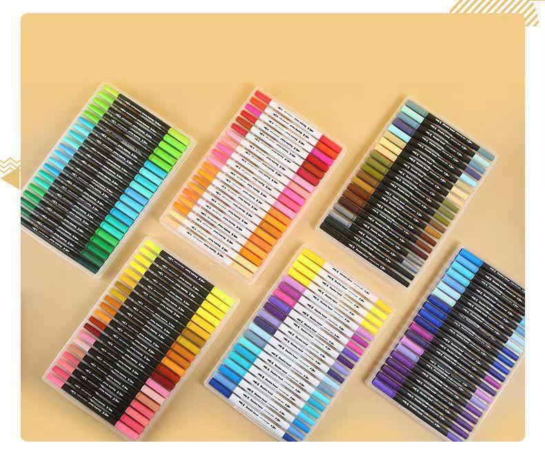 Rotulador de acuarela de doble punta con borde cruzado, marcador de color con línea de gancho, pincel de cabeza suave para grafiti infantil, protección del medio ambiente