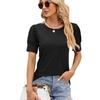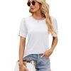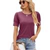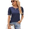 Camiseta de manga corta con cuello redondo y botones sueltos para mujer, nueva camiseta de primavera y verano 2024, comercio exterior transfronterizo europeo y americano de Amazon para mujer