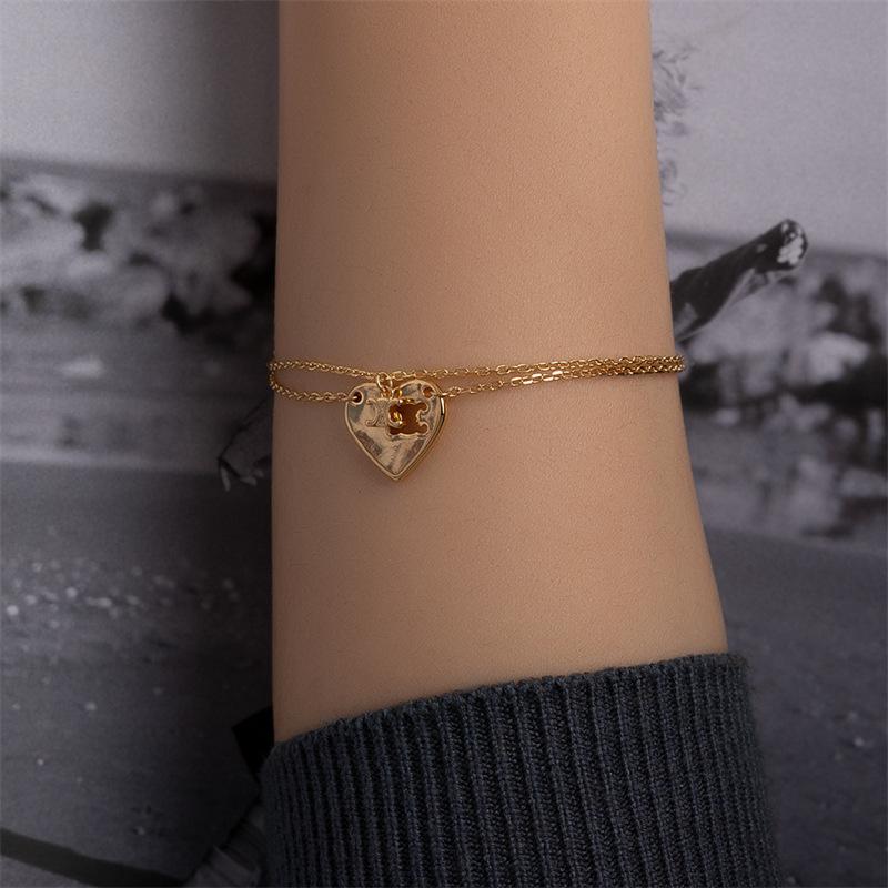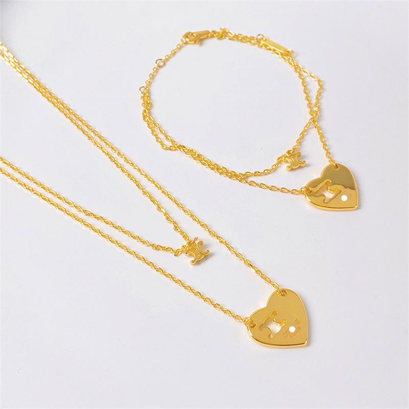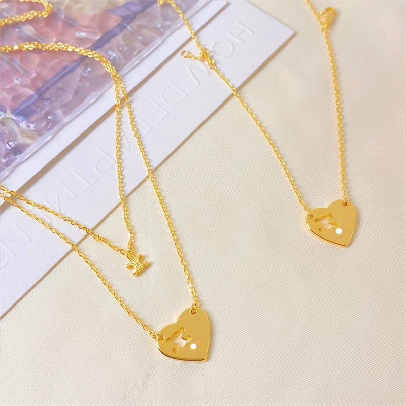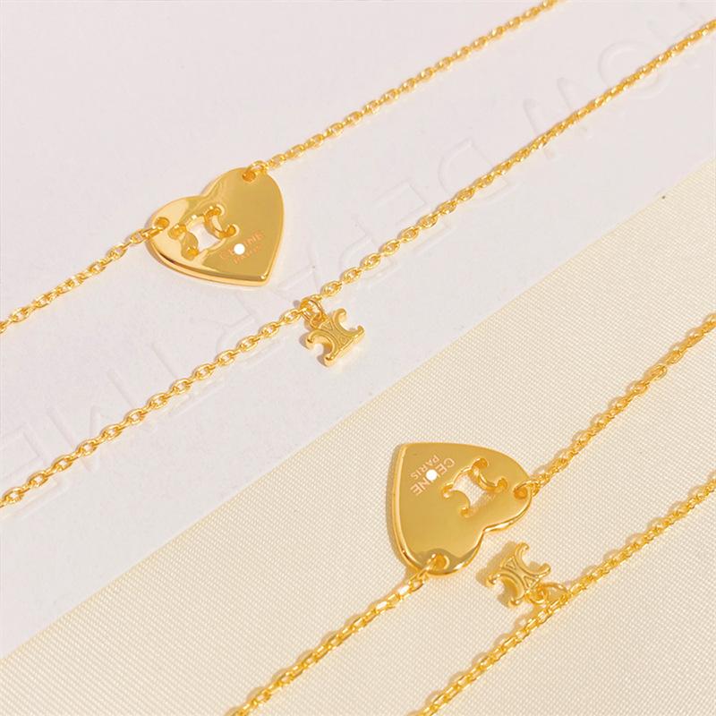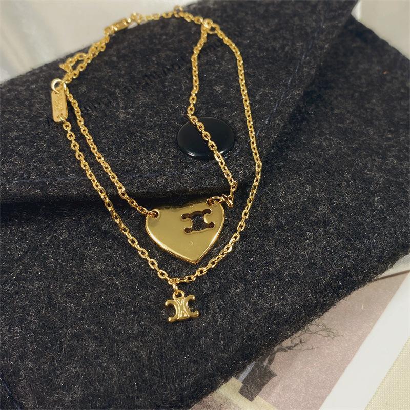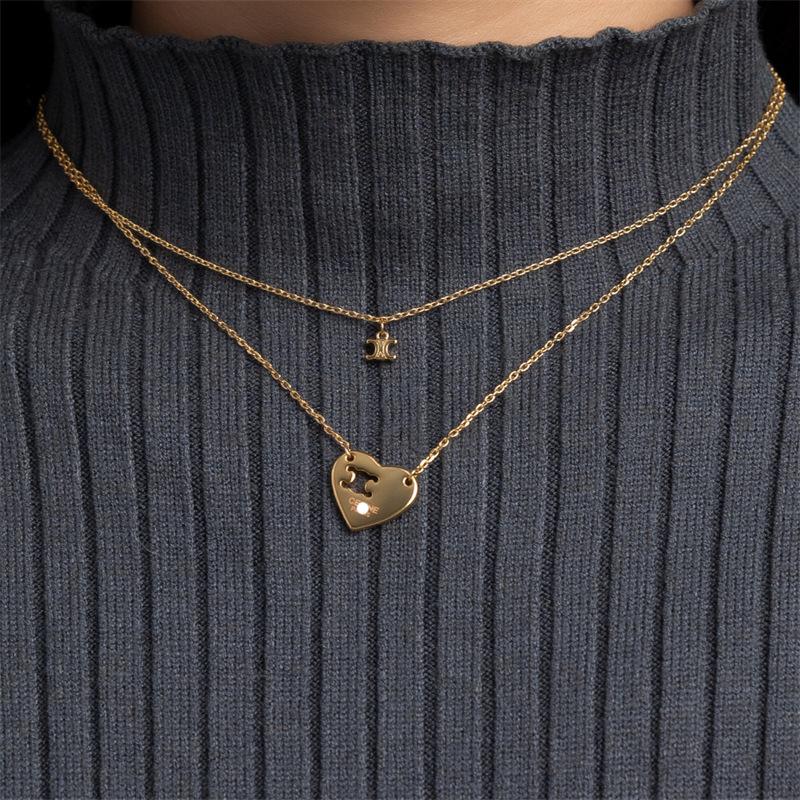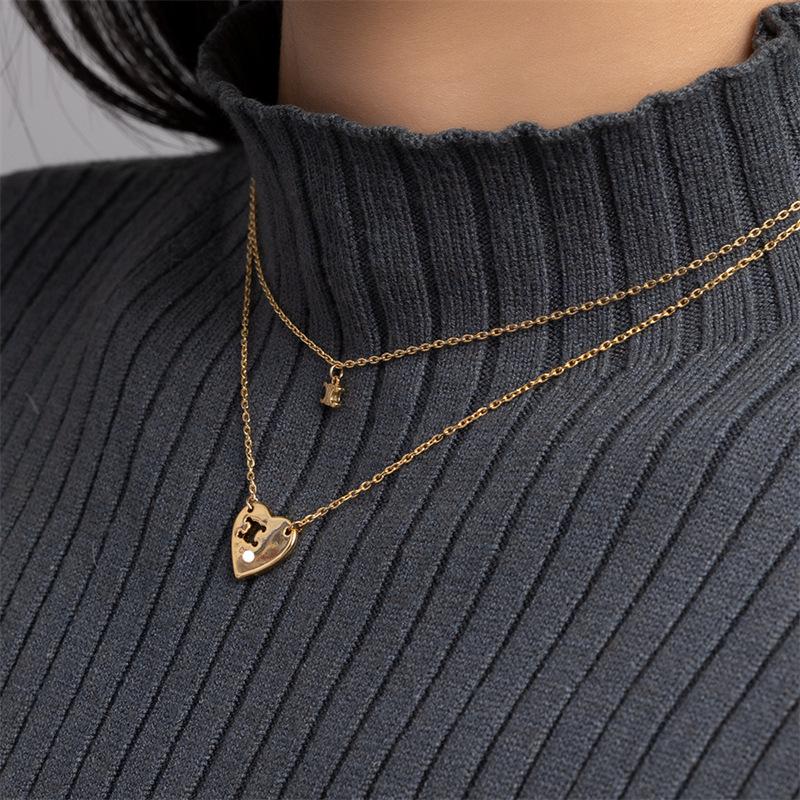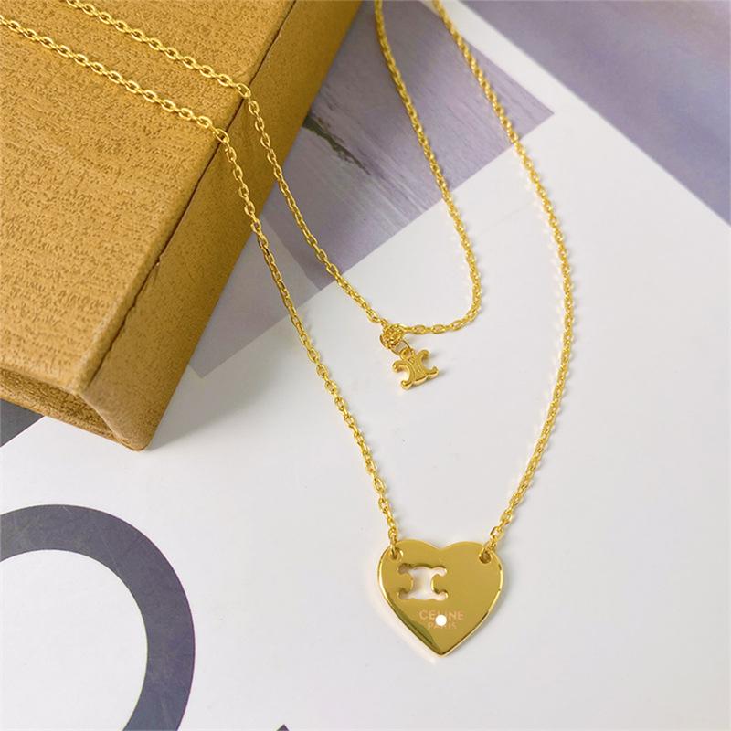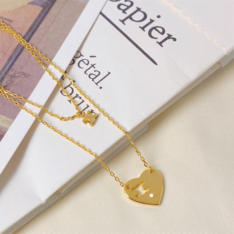 collar de doble capa de corazón hueco del mismo estilo familiar de celi simple exquisito de alta gama lujo ligero clásico cadena para clavícula Arco del Triunfo