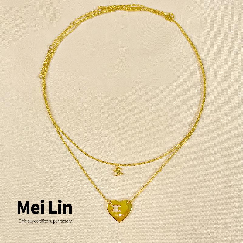 Celi Saijia Collar de Doble Capa Hollow Love Simple Exquisito de Alta Gama Lujo Ligero Clásico Cadena Arco del Triunfo