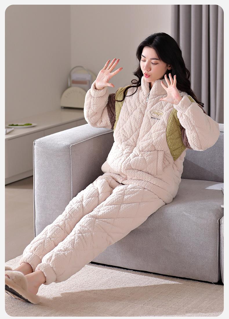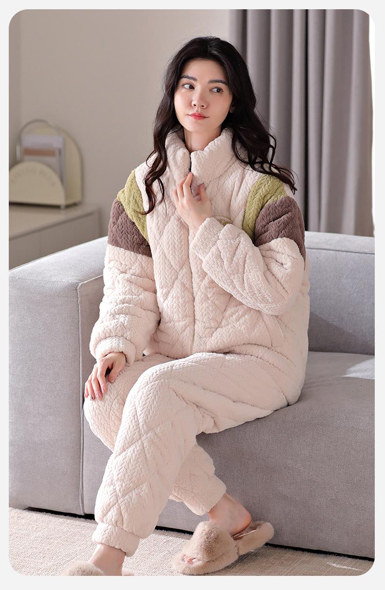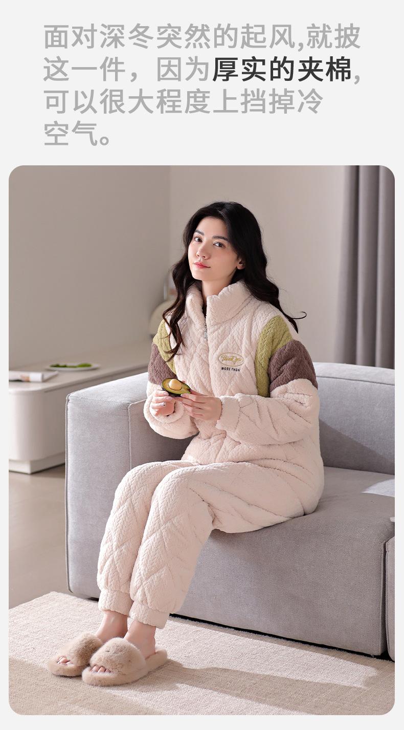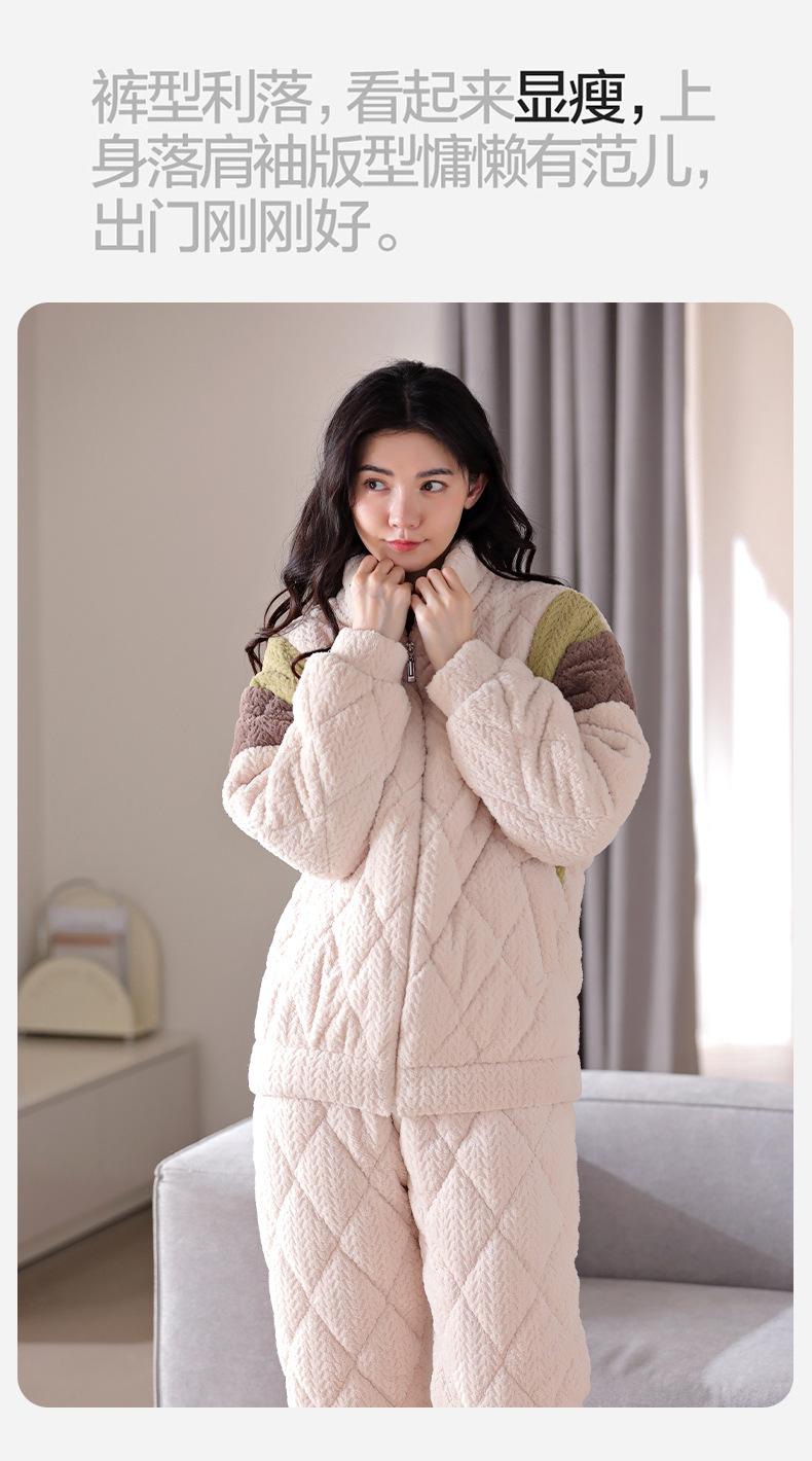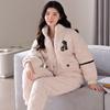 Nuevo pijama de invierno para mujer, cárdigan grueso con forro polar, acolchado de terciopelo de leche tallado, se puede usar al aire libre, traje de ocio para el hogar