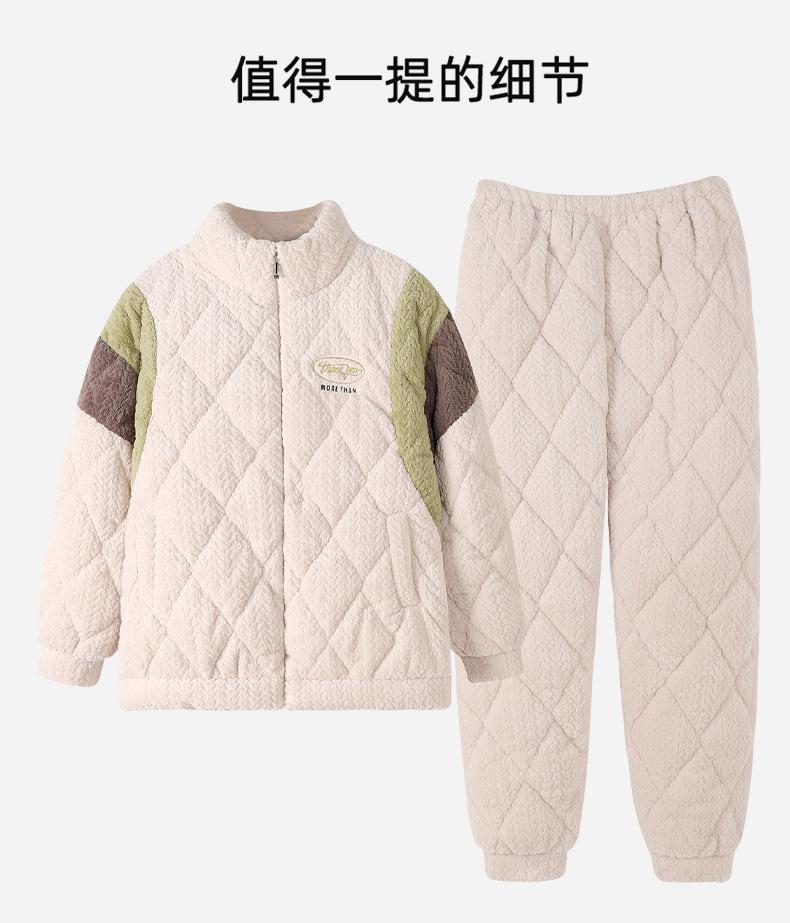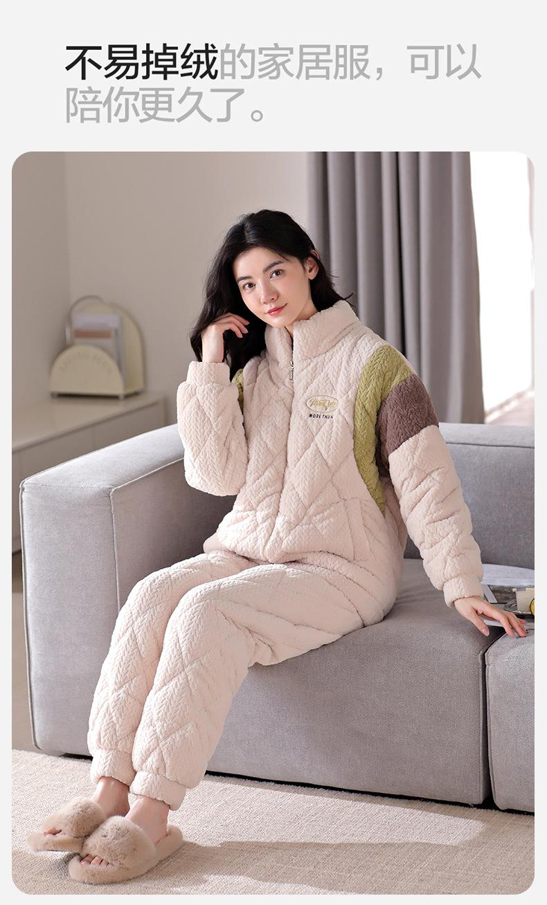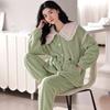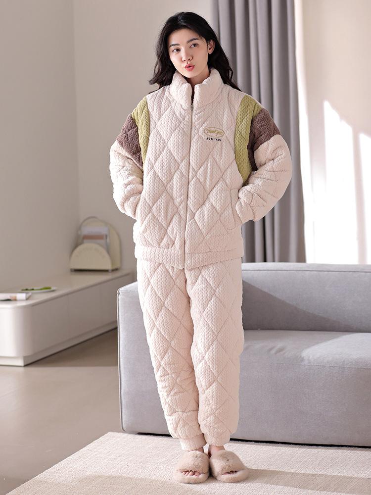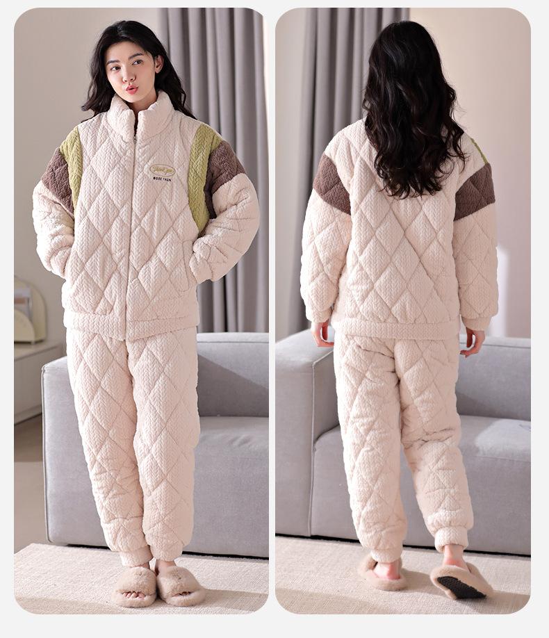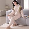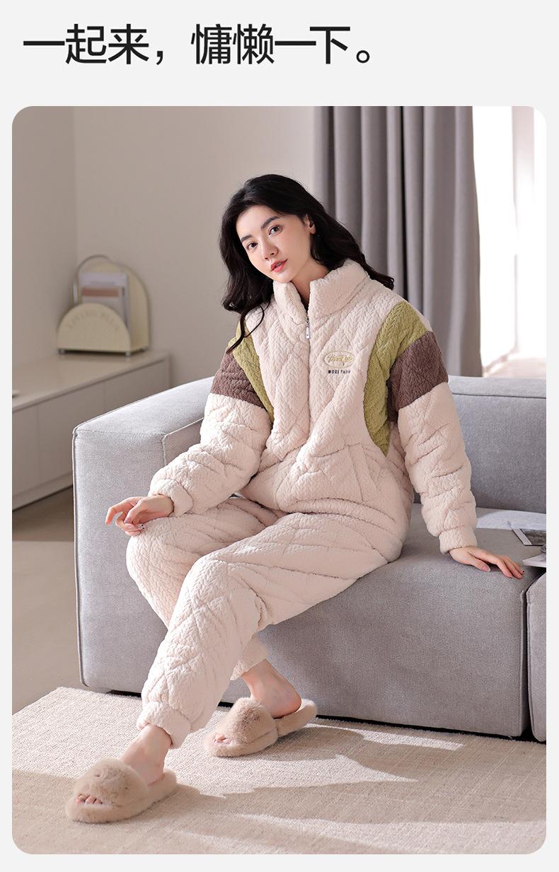 Nuevo pijama de invierno para mujer, cárdigan grueso con forro polar, acolchado de terciopelo de leche tallado, se puede usar al aire libre, traje de ocio para el hogar