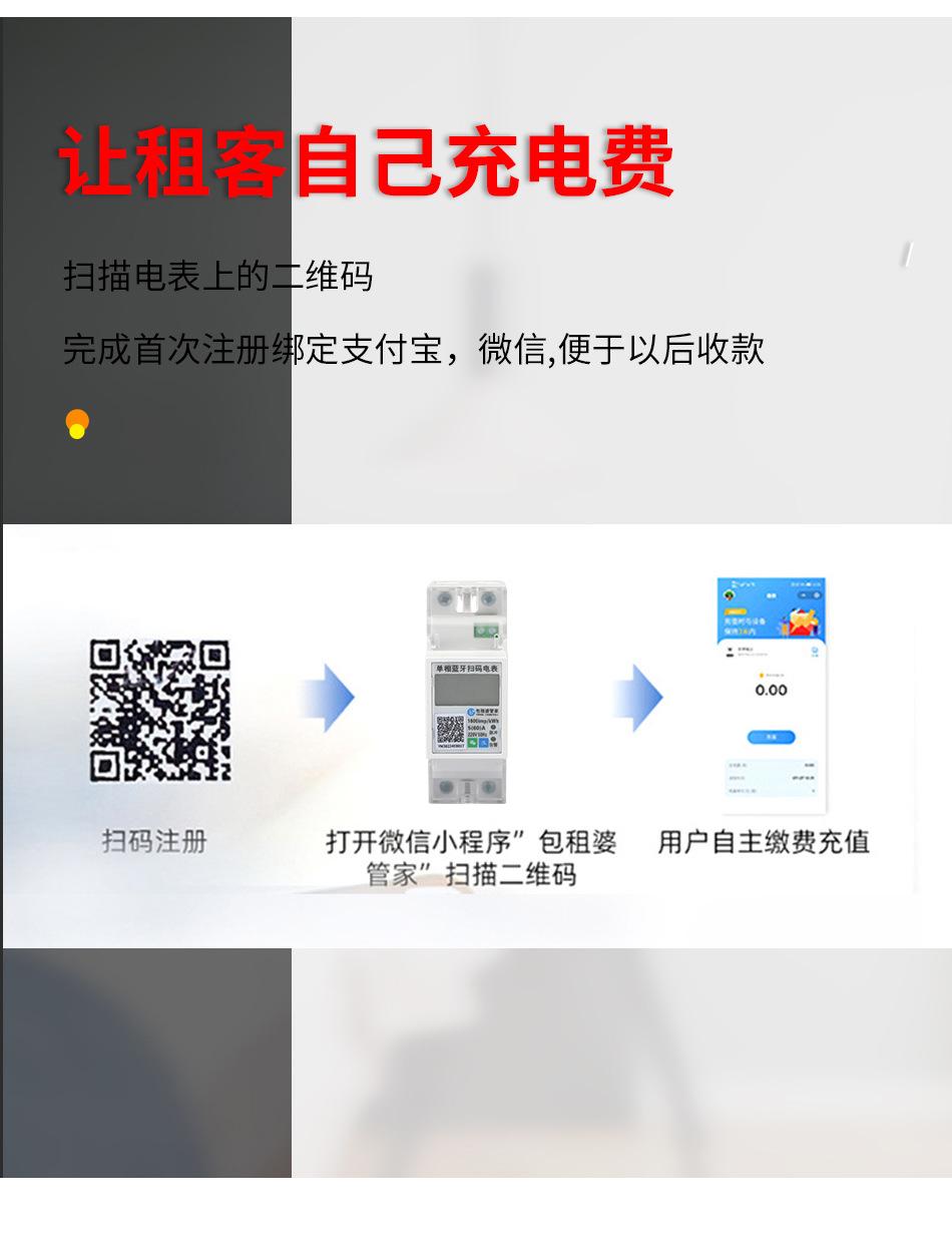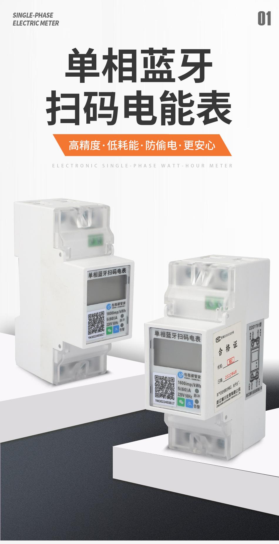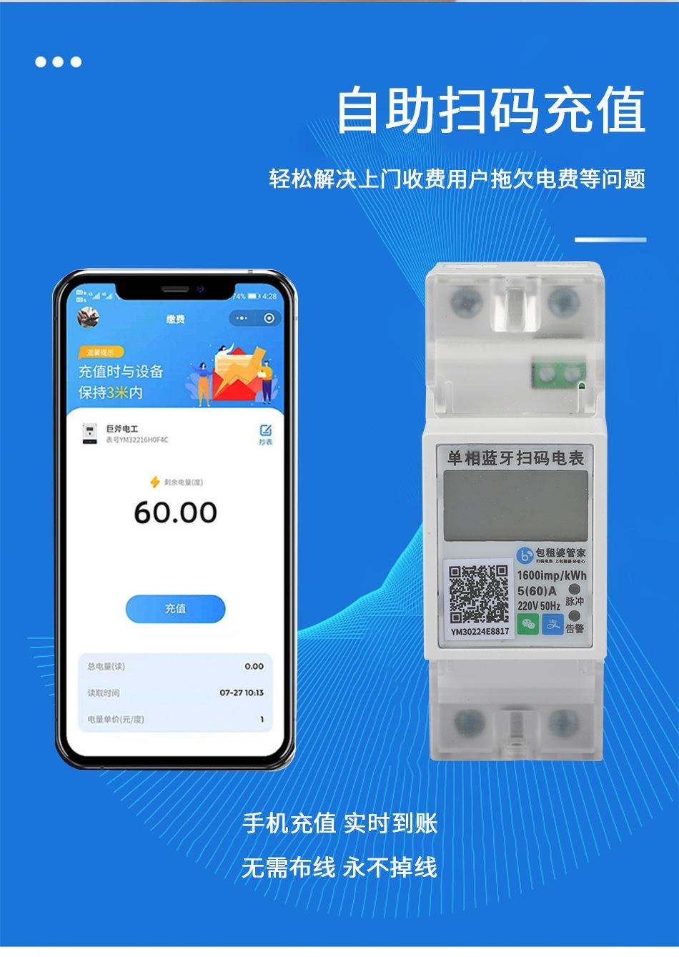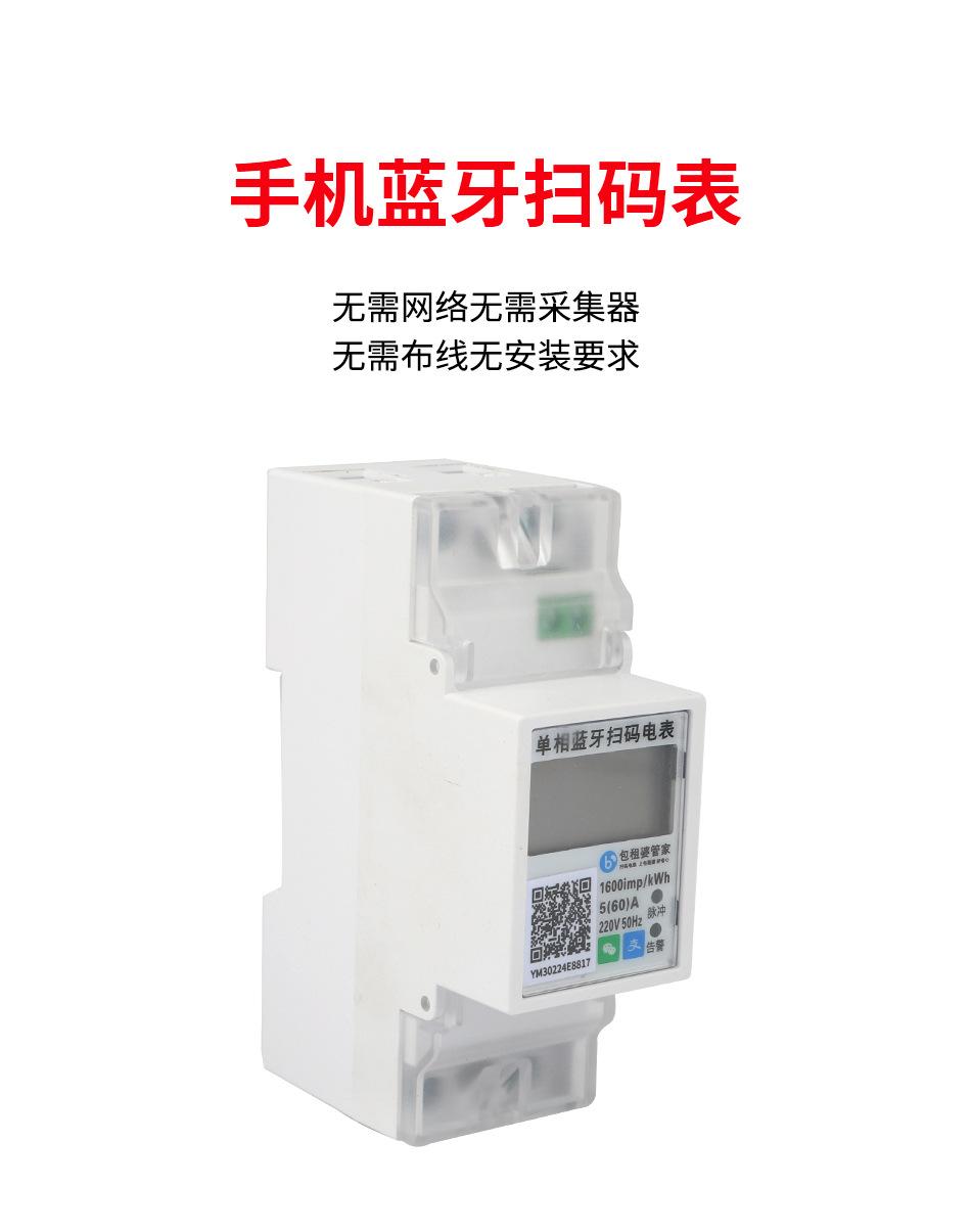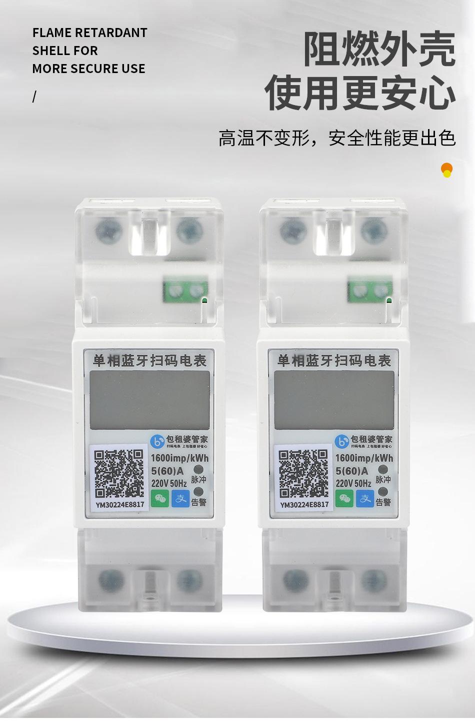 Medidor de energía inteligente con código de escaneo Bluetooth, tipo riel monofásico doméstico, pago remoto por teléfono móvil 4G, alquiler de habitación prepago