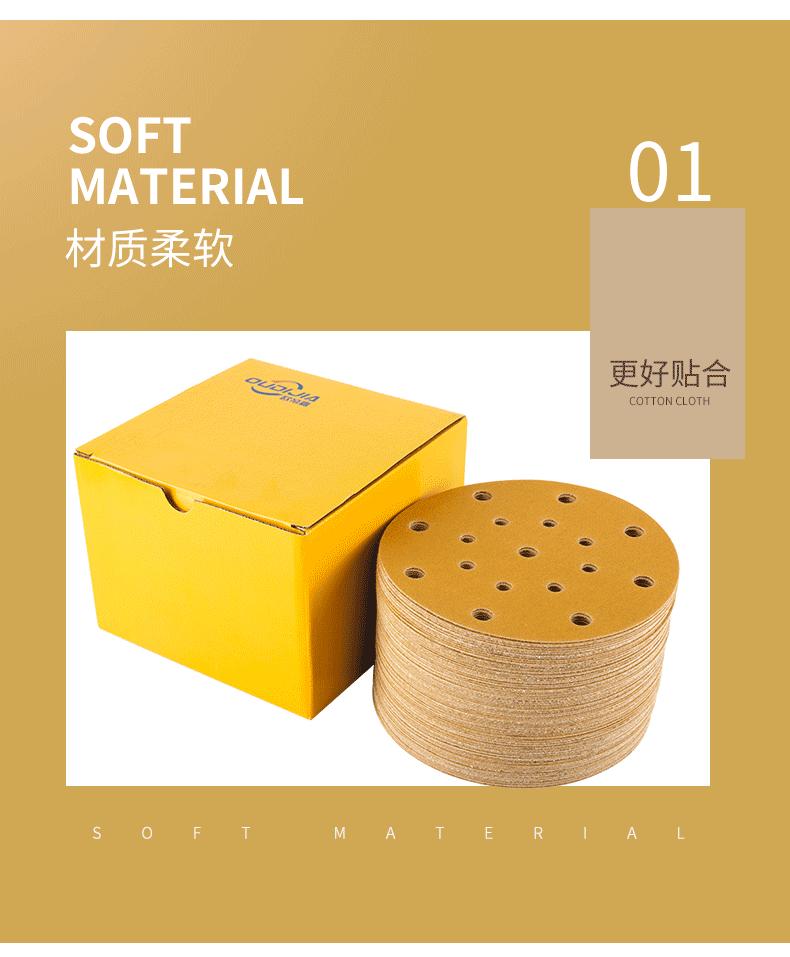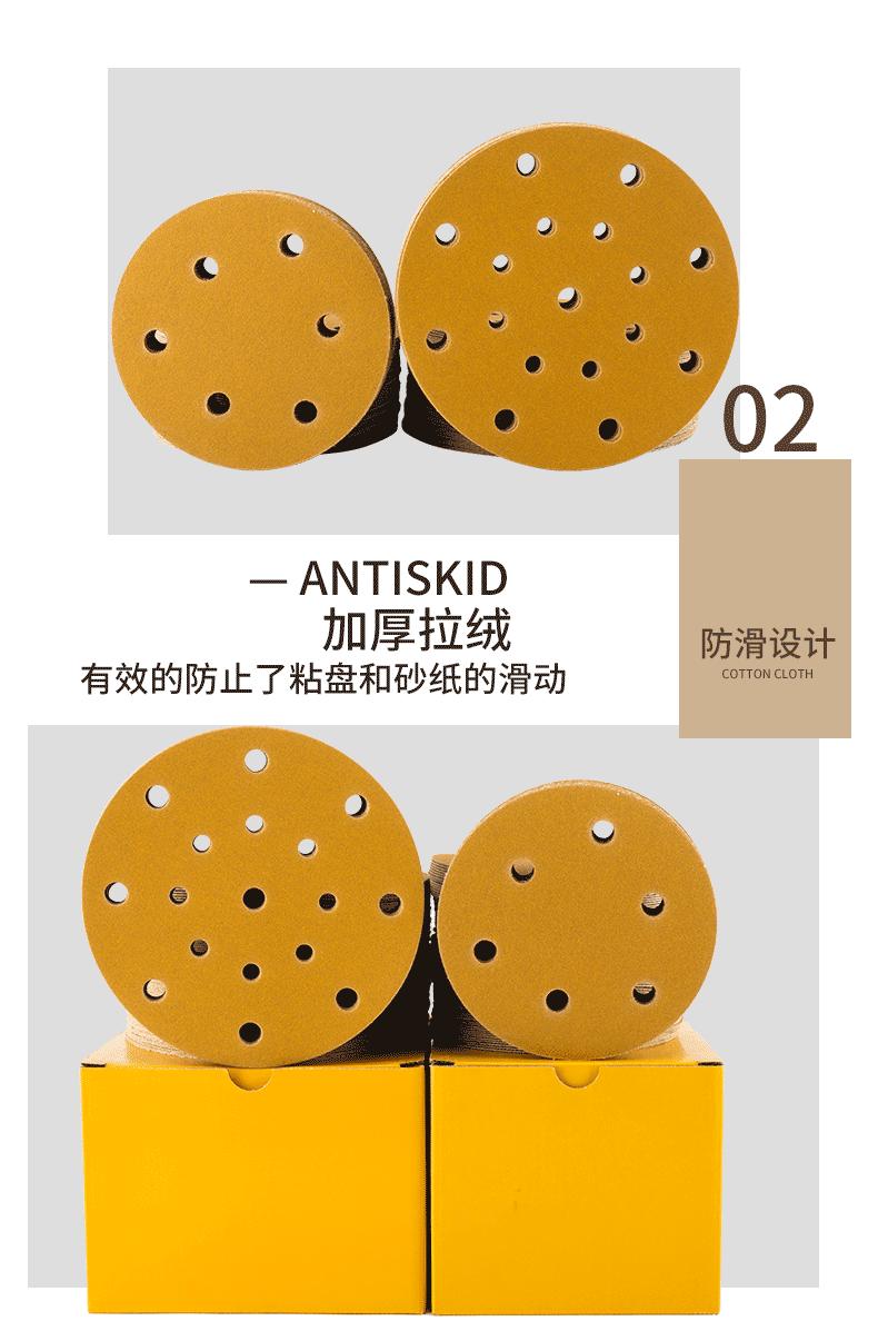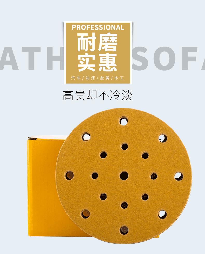 Papel de lija seco 6 pulgadas 17 agujeros 5 pulgadas 6 agujeros lija para lijadora neumática lijado de autos Festo pulido amarillo respaldo de lija de terciopelo