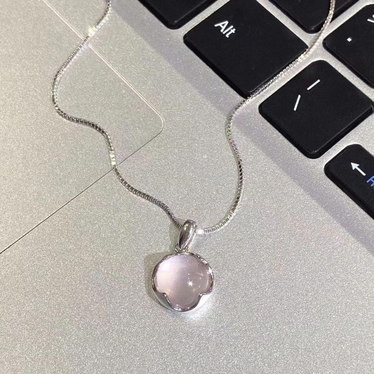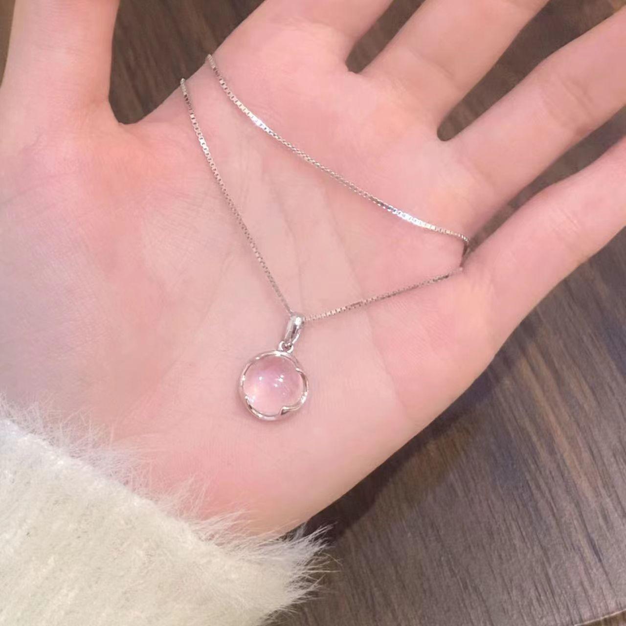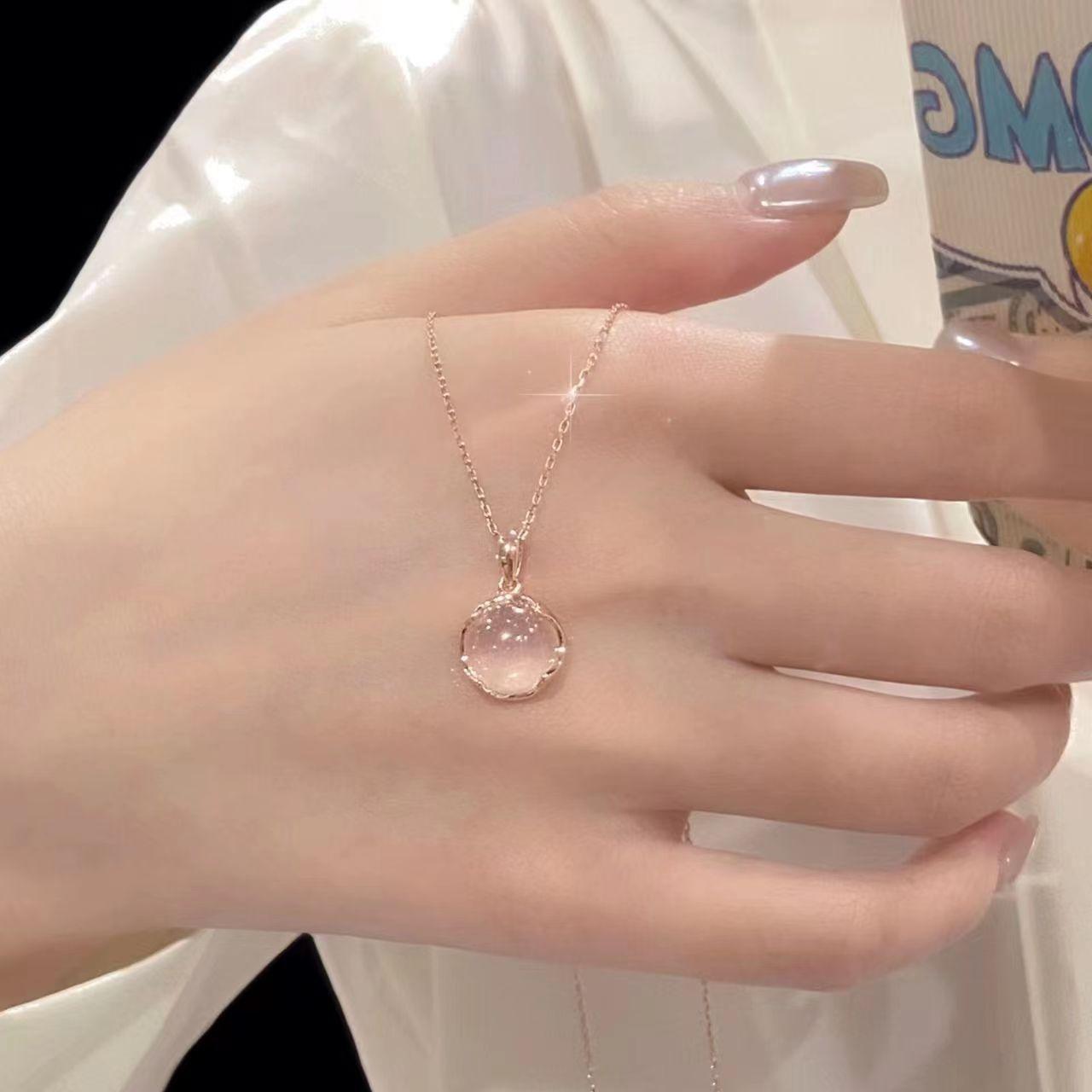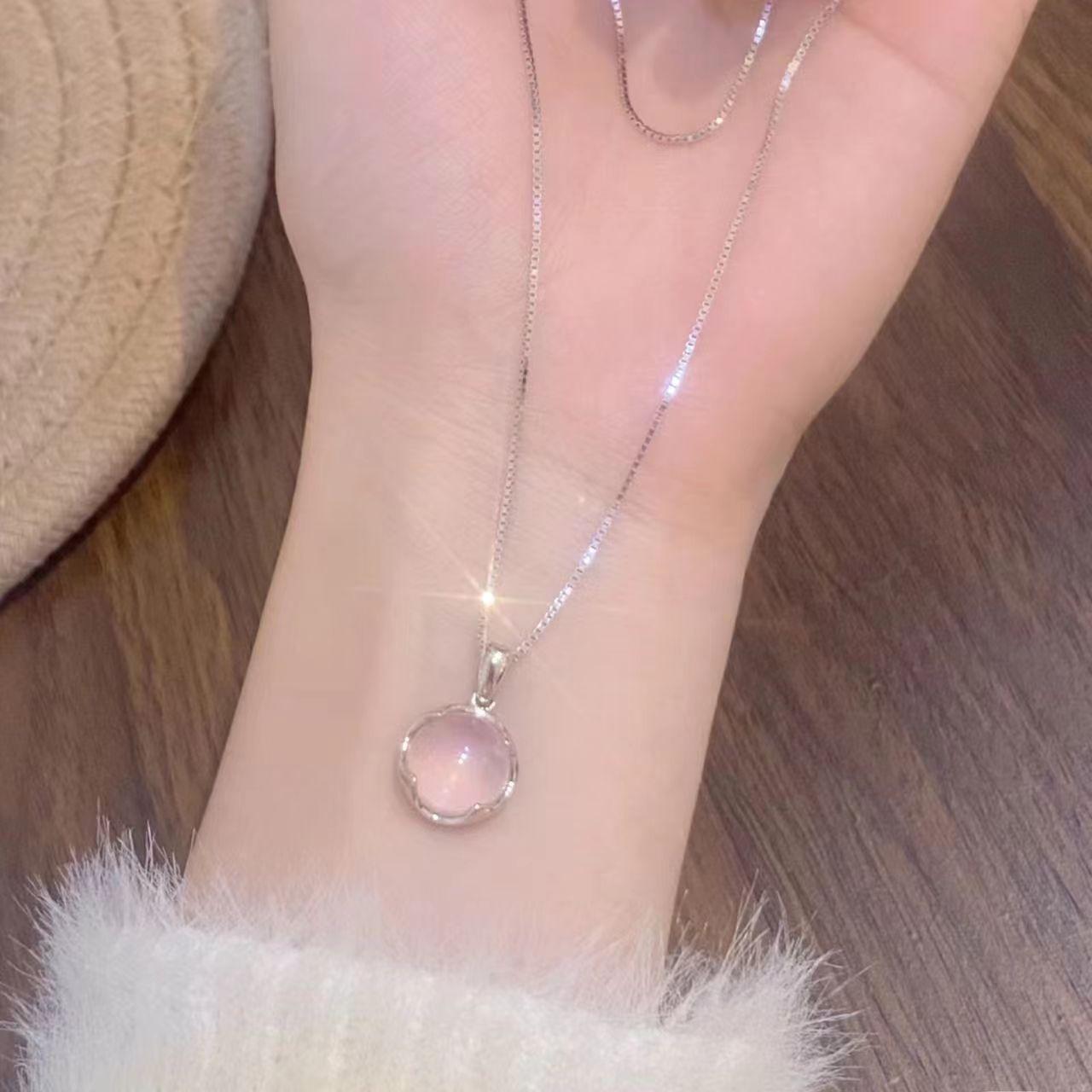 Nuevo collar de cristal rosa ojo de gato para mujer, ligero, de lujo, con cadena de clavícula sencilla y piedra lunar redonda, estilo celebridad de Internet.