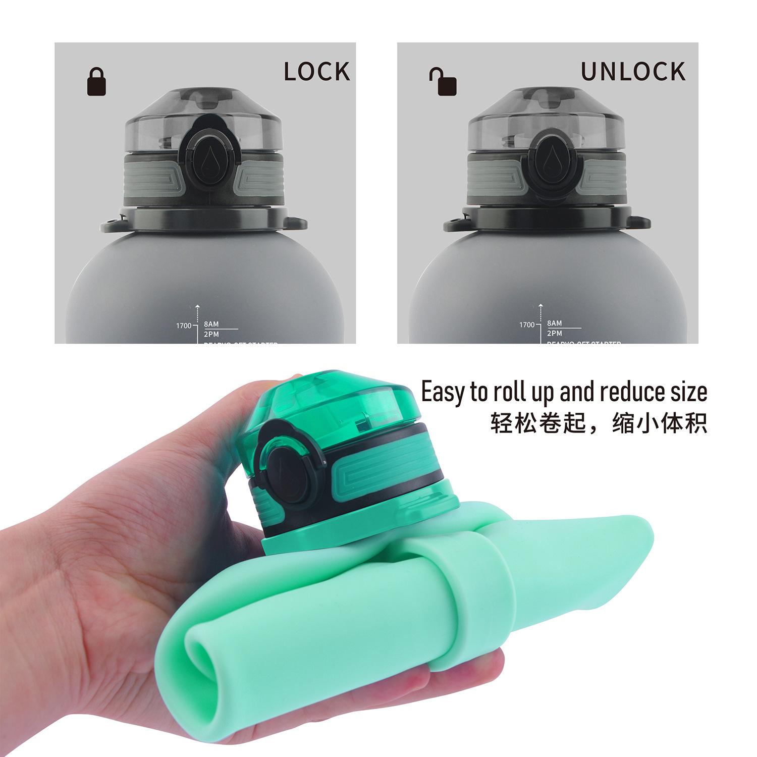 Amazon Más Vendido Silicona Deportes Hervidor Pajita Bomba Tapa Portátil Vaso de Agua de Viaje Creativo Exterior Botella de Agua Plegable