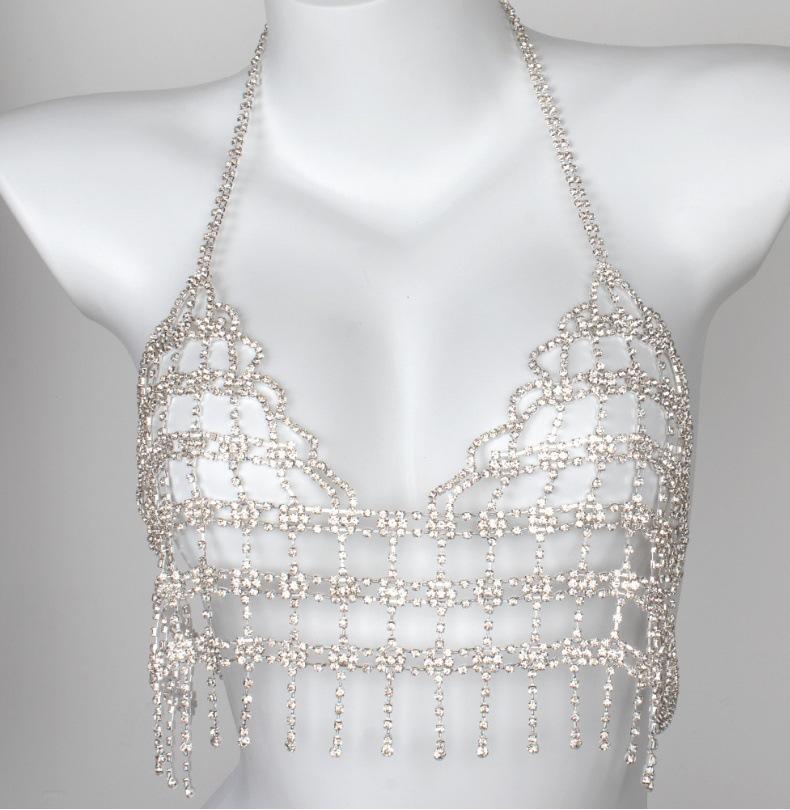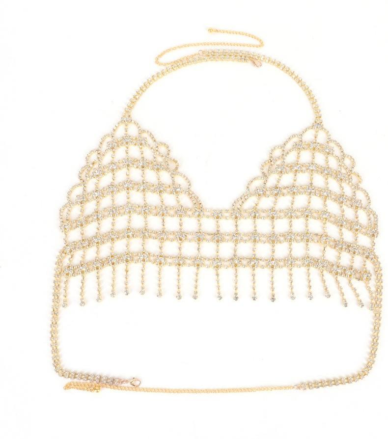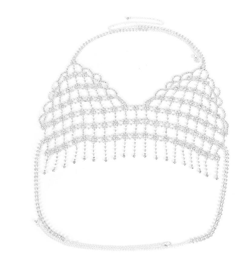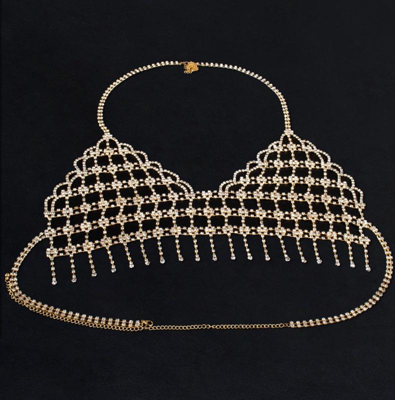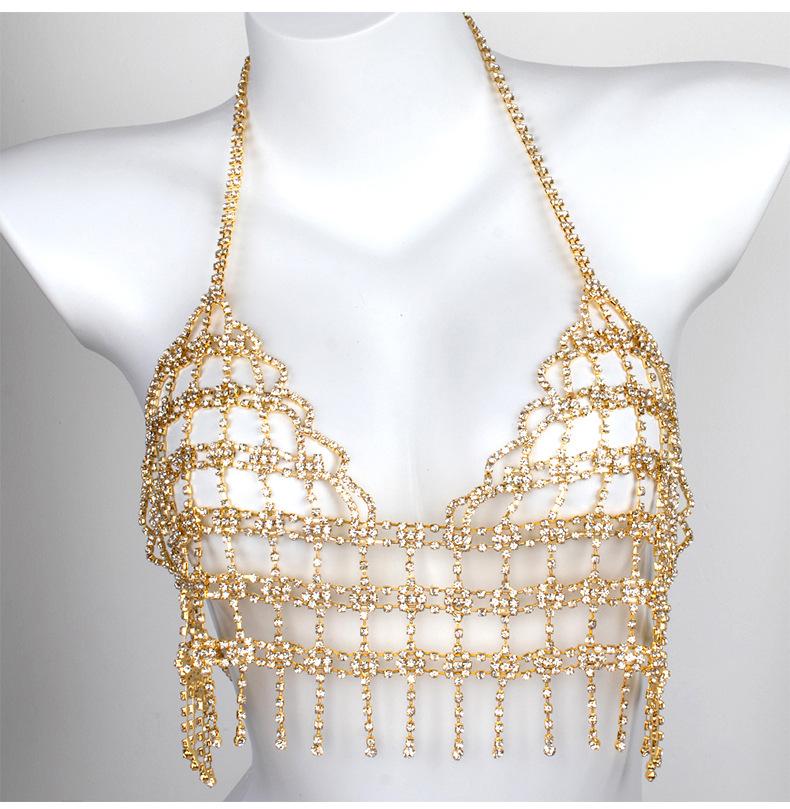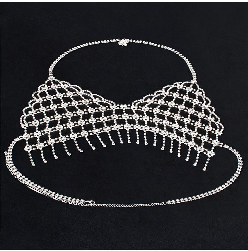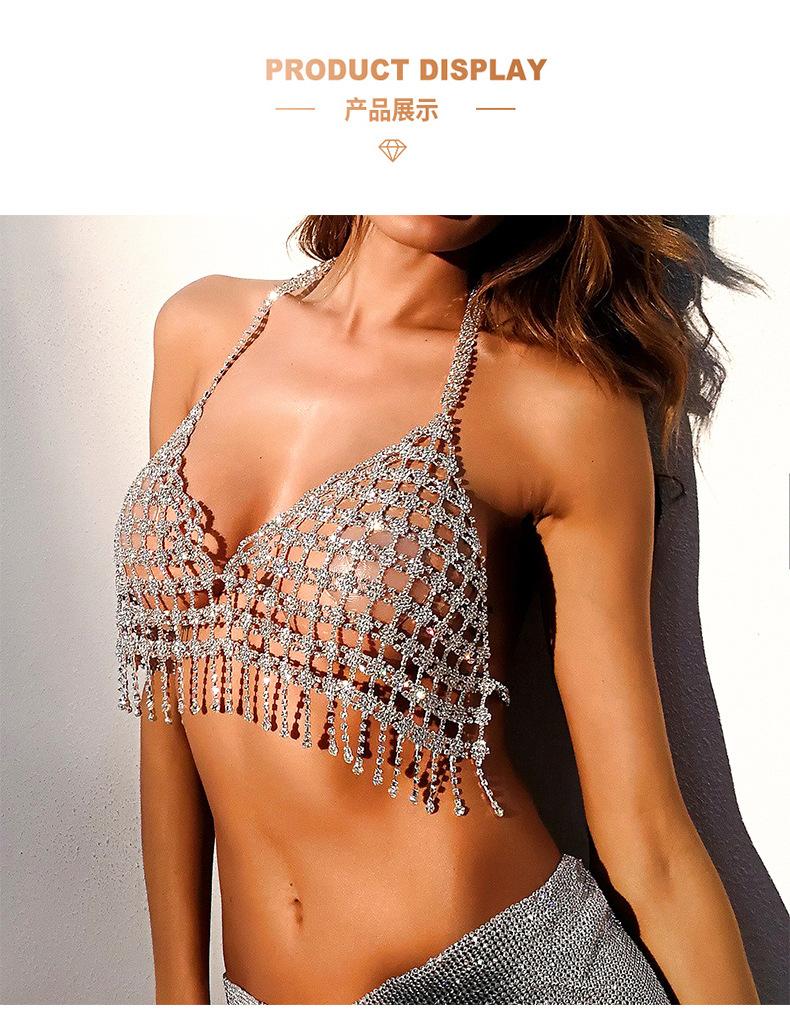 Accesorios de moda, cadena corporal con borlas de diamantes de imitación, hueca, sexy, para discoteca, sujetador de diamantes completo, cadena corporal con cadena para el pecho europea y americana.