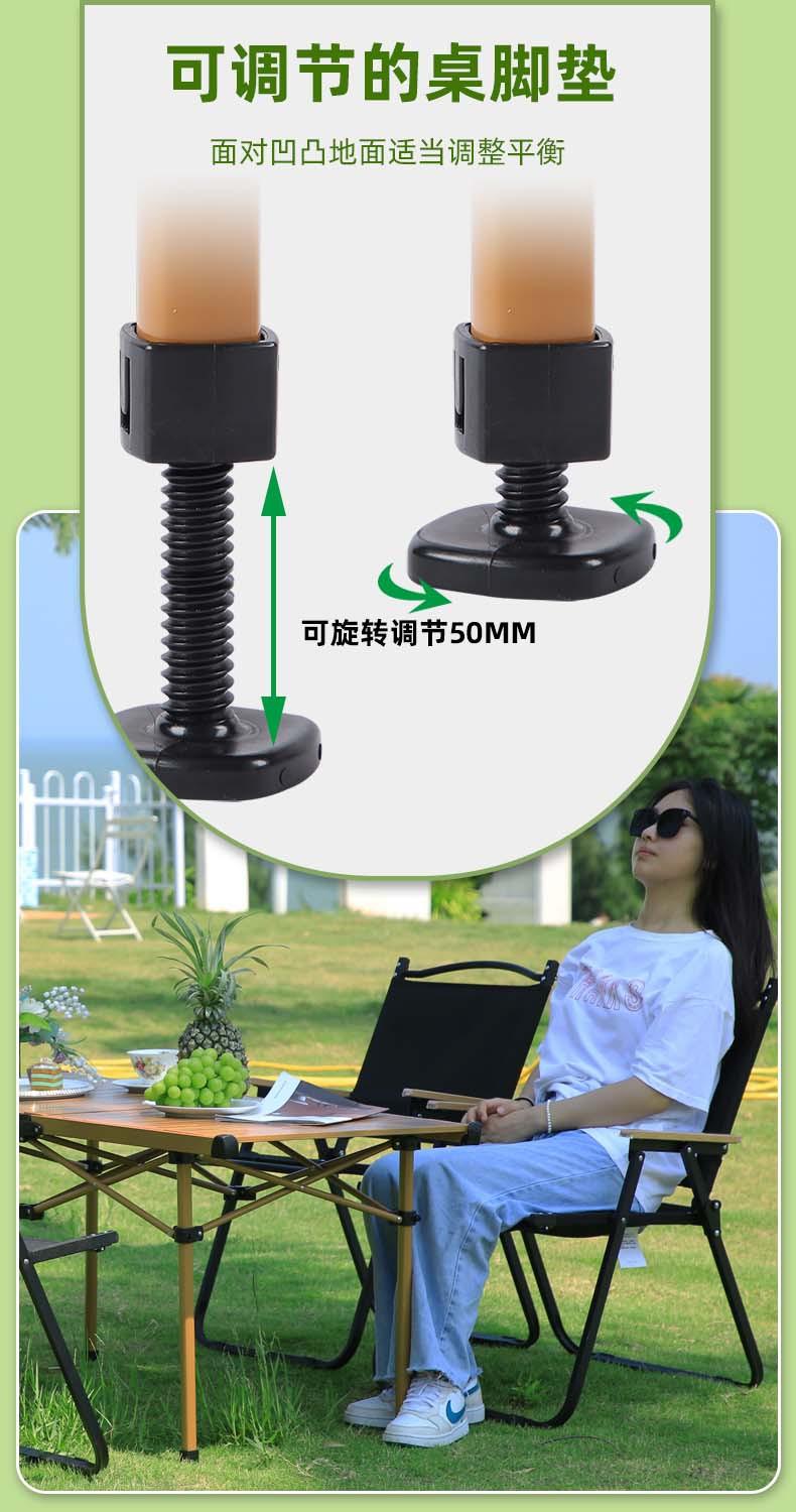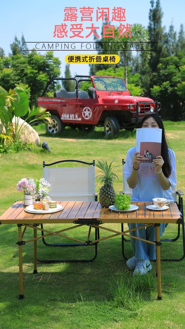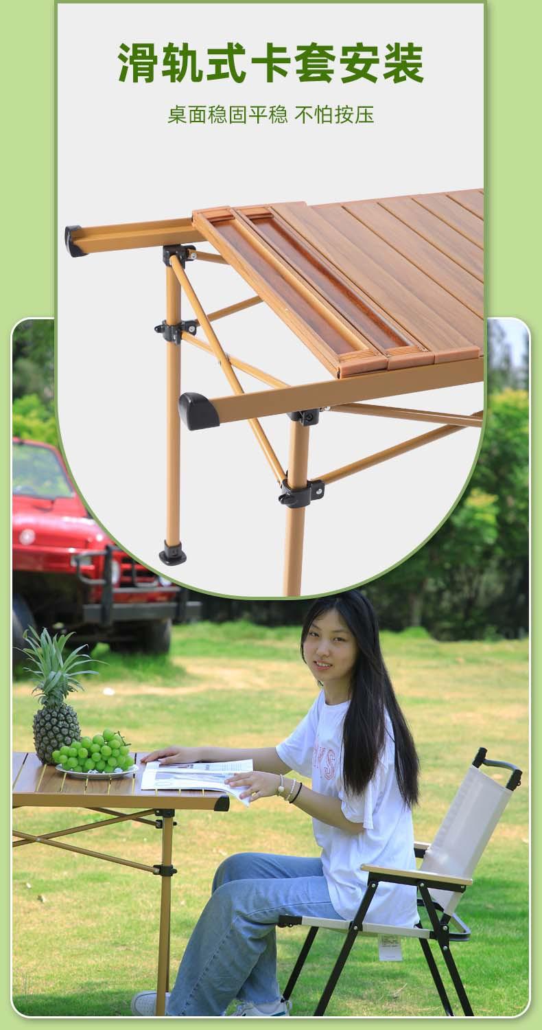 Nueva mesa y silla plegables para exteriores, mesa elevadora de aleación de aluminio con veta de madera, juego de mesa portátil para picnic y camping, para interiores