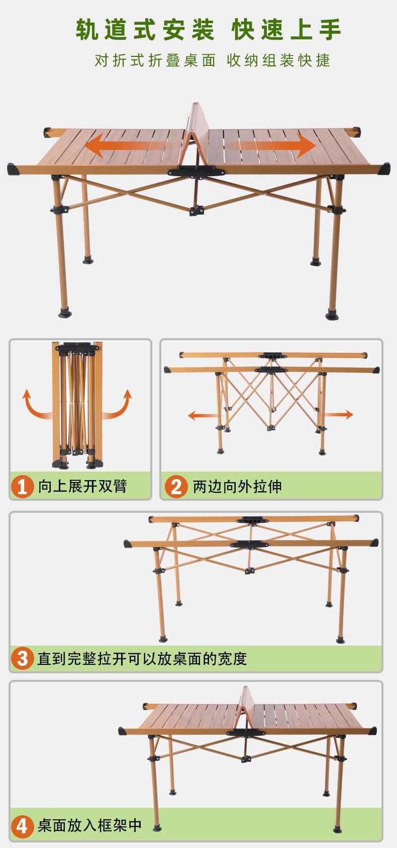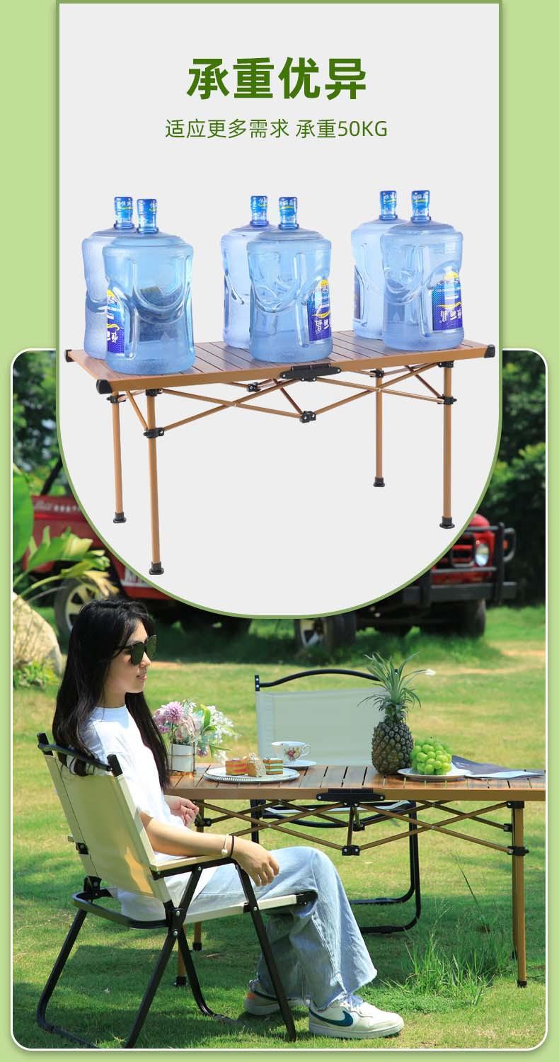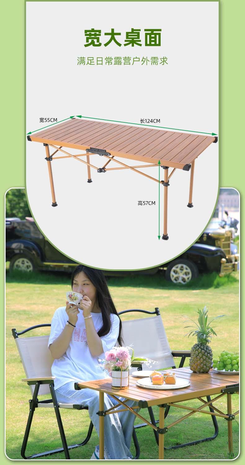 Nueva mesa y silla plegables para exteriores, mesa elevadora de aleación de aluminio con veta de madera, juego de mesa portátil para picnic y camping, para interiores