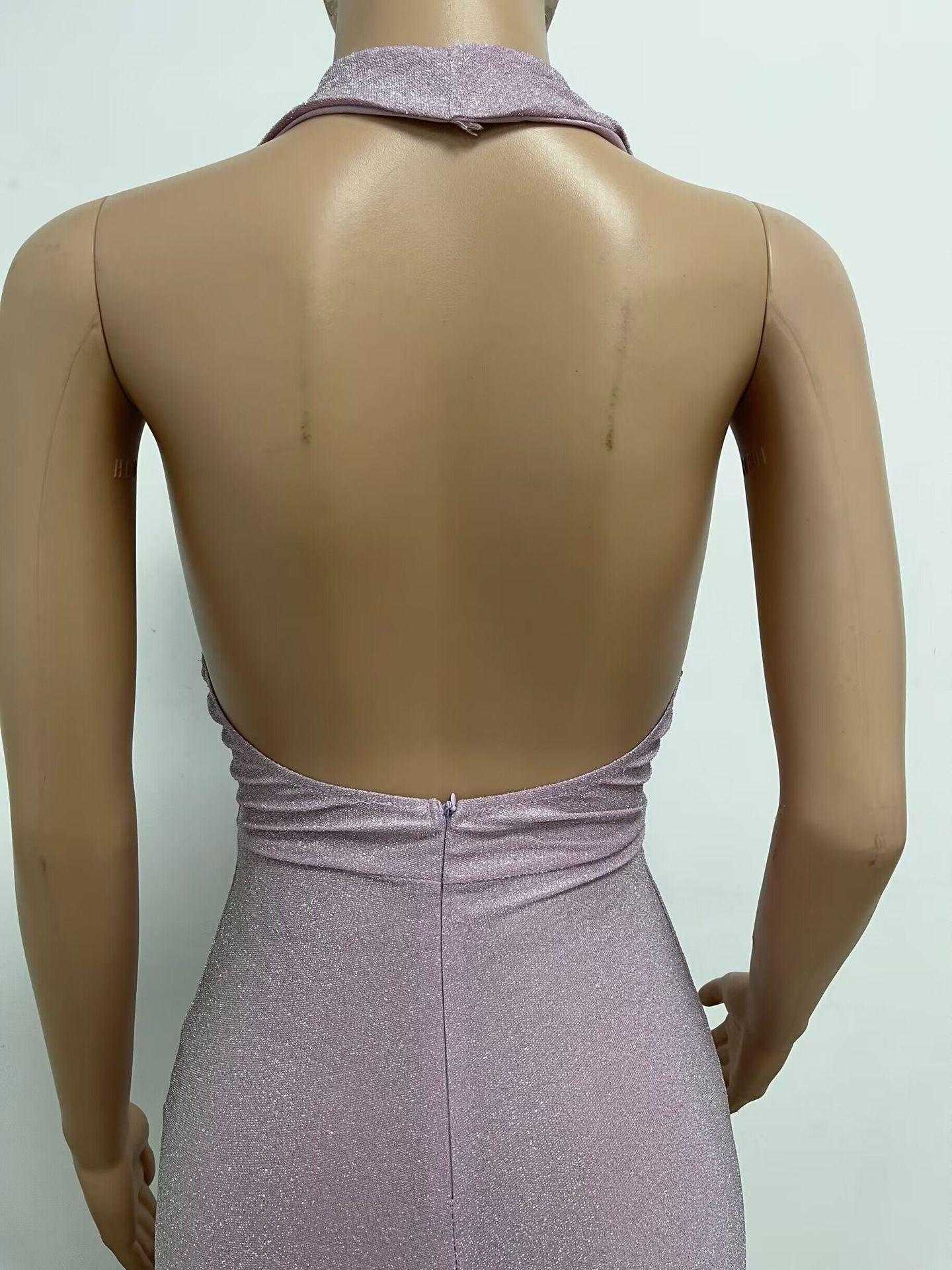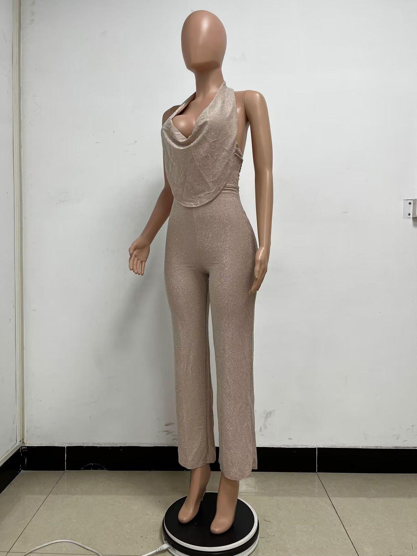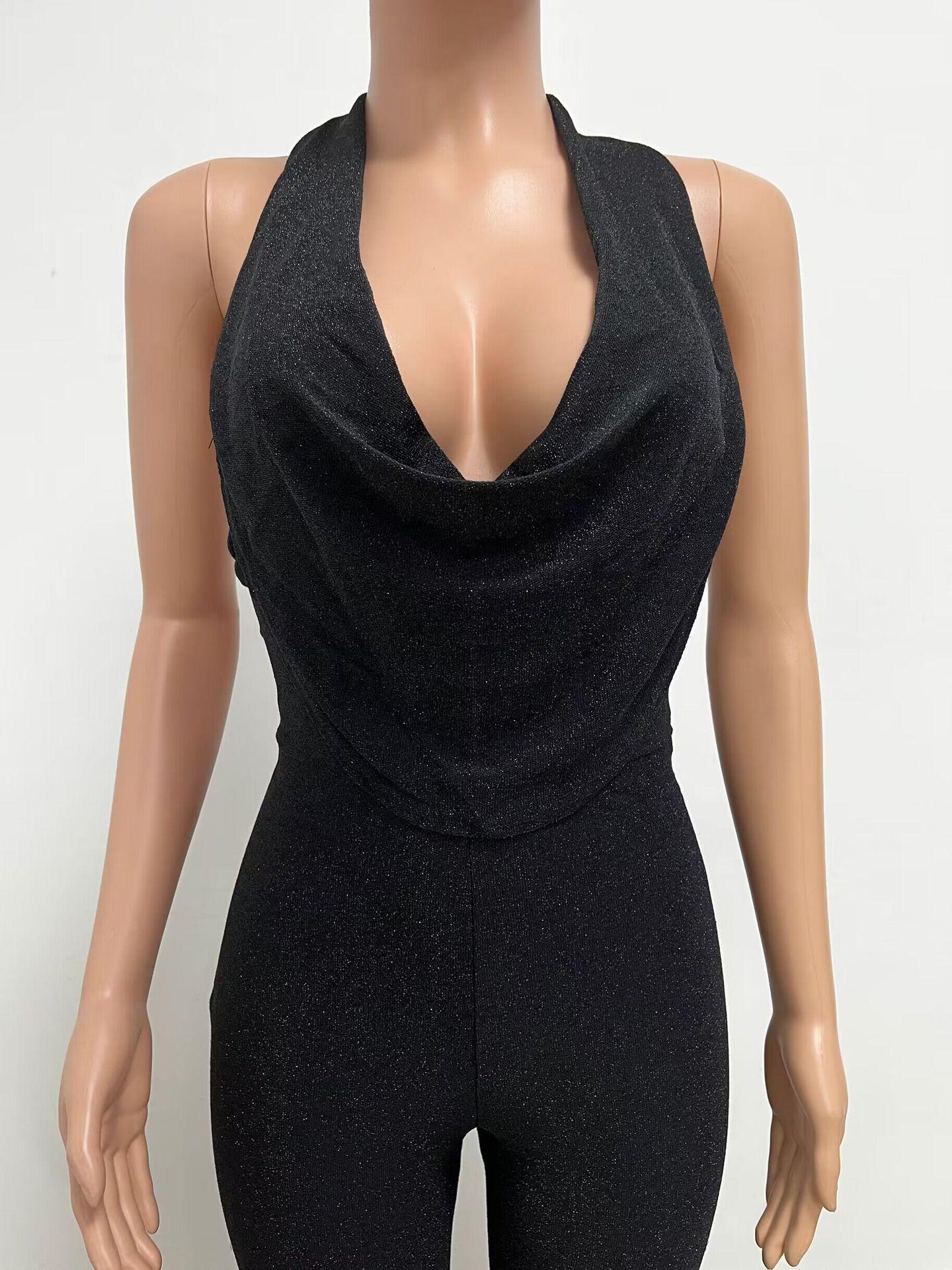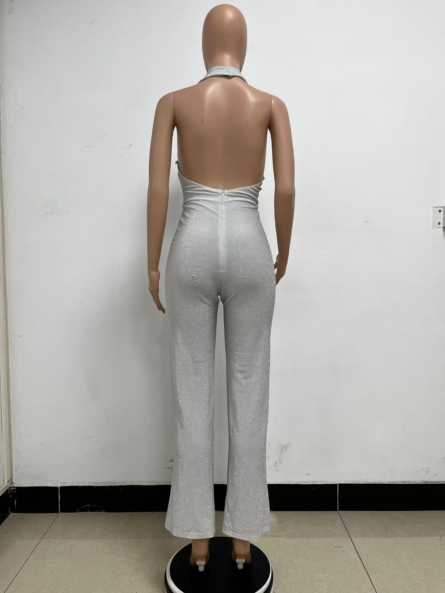Ropa de Mujer Transfronteriza Europea y Americana Nuevo Mono Plateado Elástico sin Mangas con Cuello Halter y Espalda Descubierta para Mujer Venta al por Mayor de Alta Gama