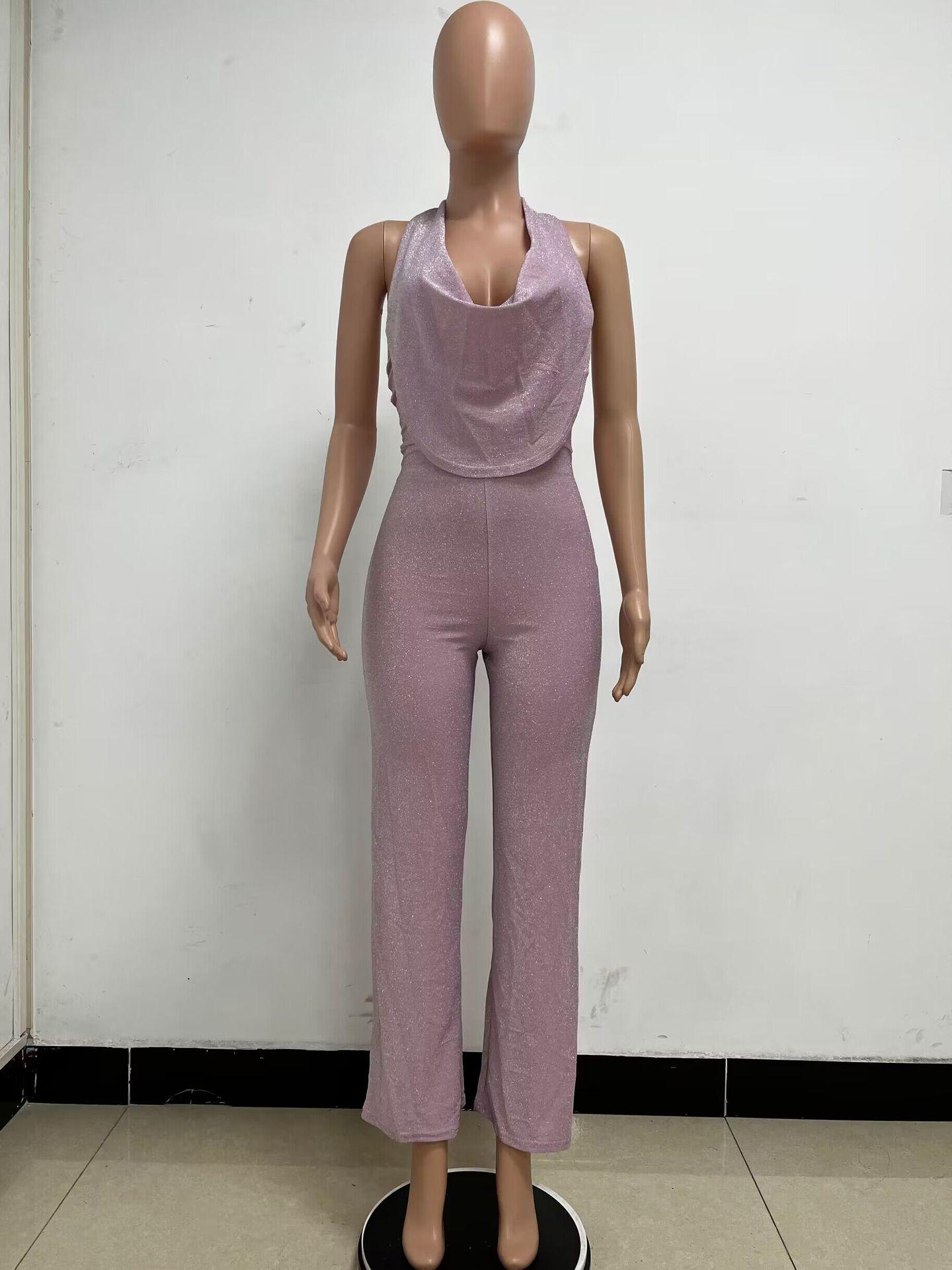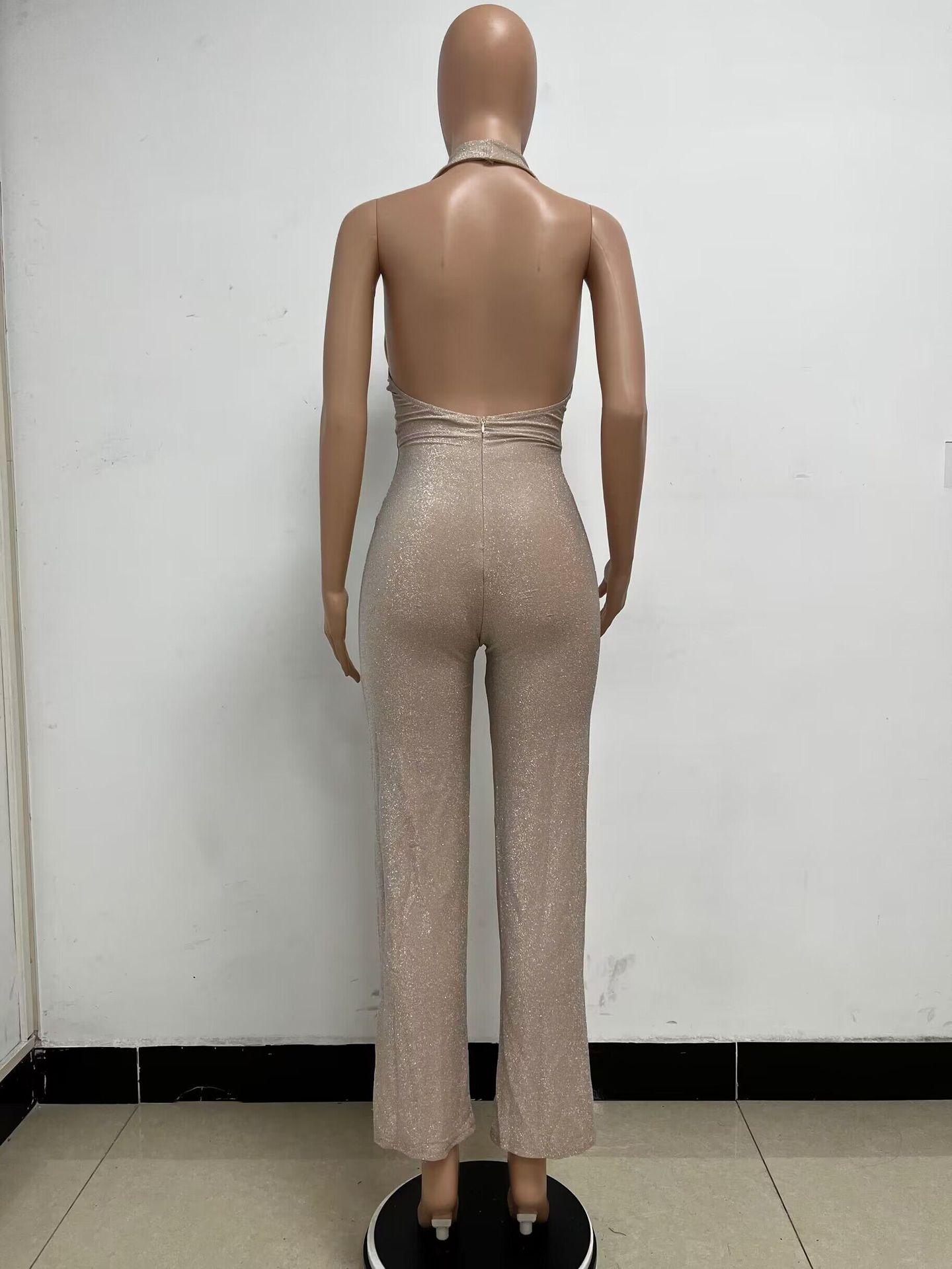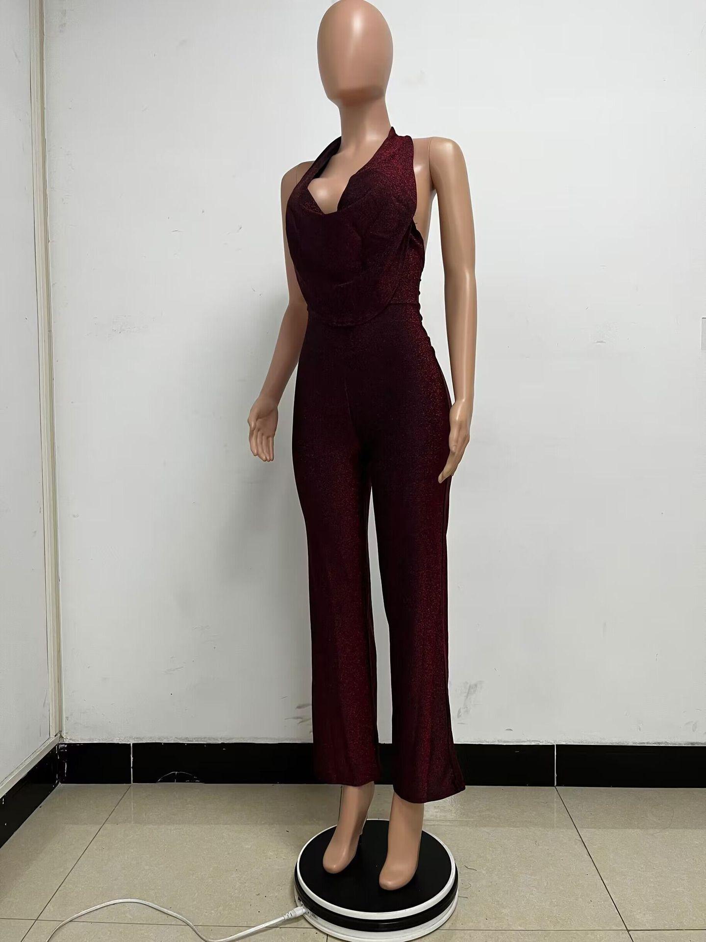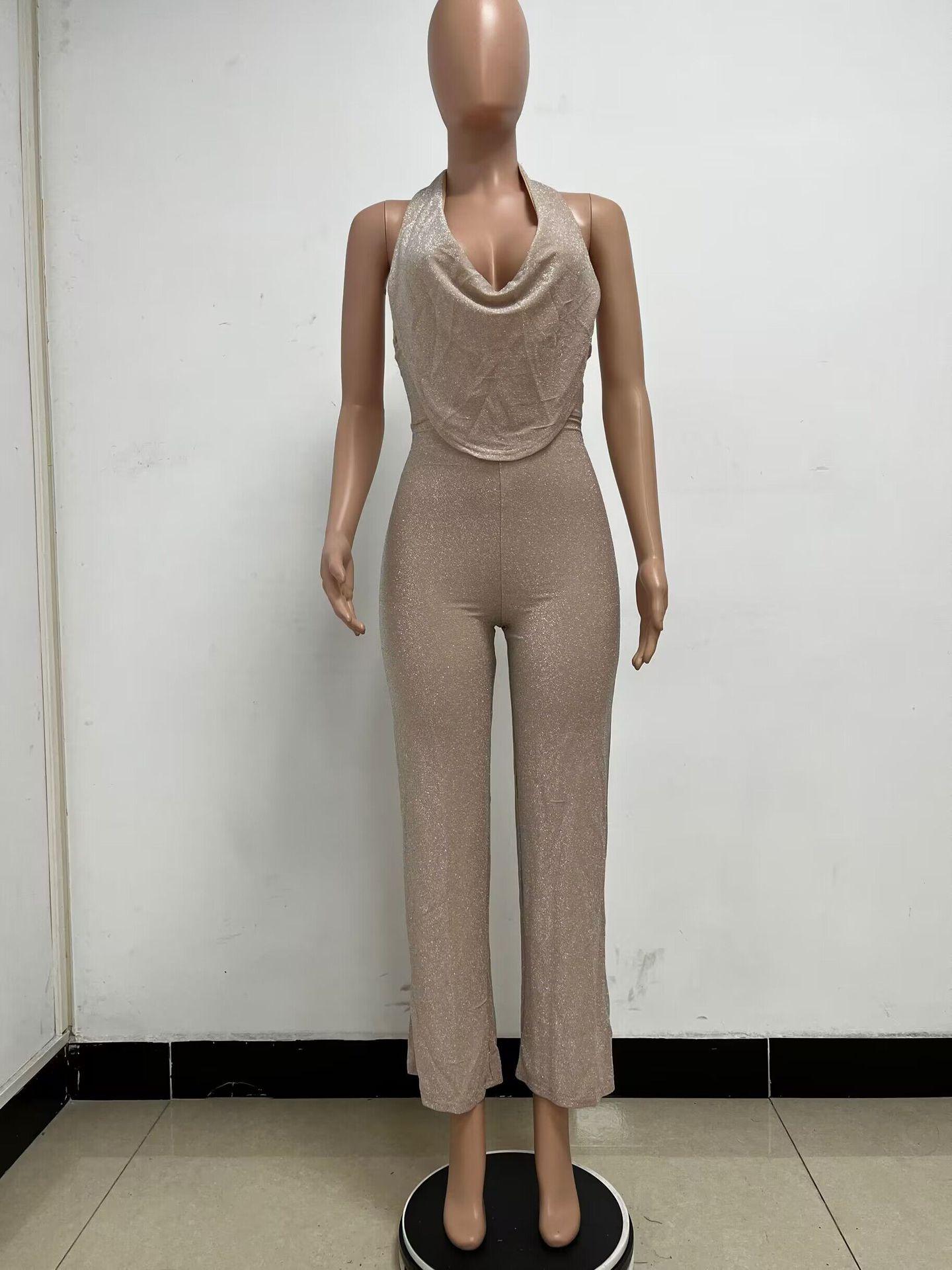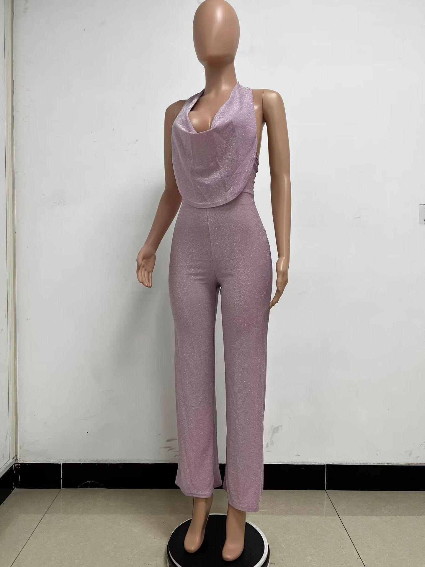 Ropa de Mujer Transfronteriza Europea y Americana Nuevo Mono Plateado Elástico sin Mangas con Cuello Halter y Espalda Descubierta para Mujer Venta al por Mayor de Alta Gama