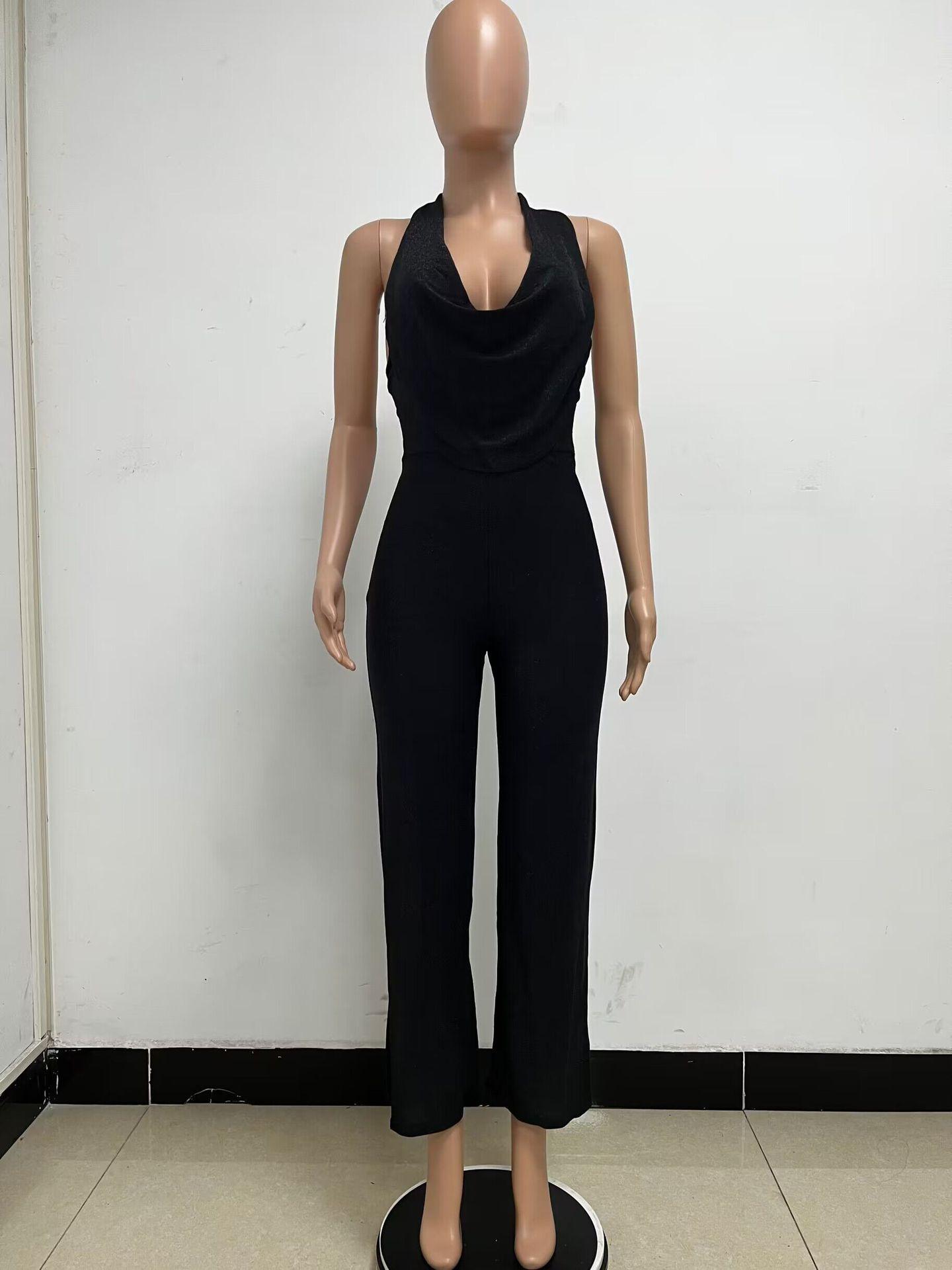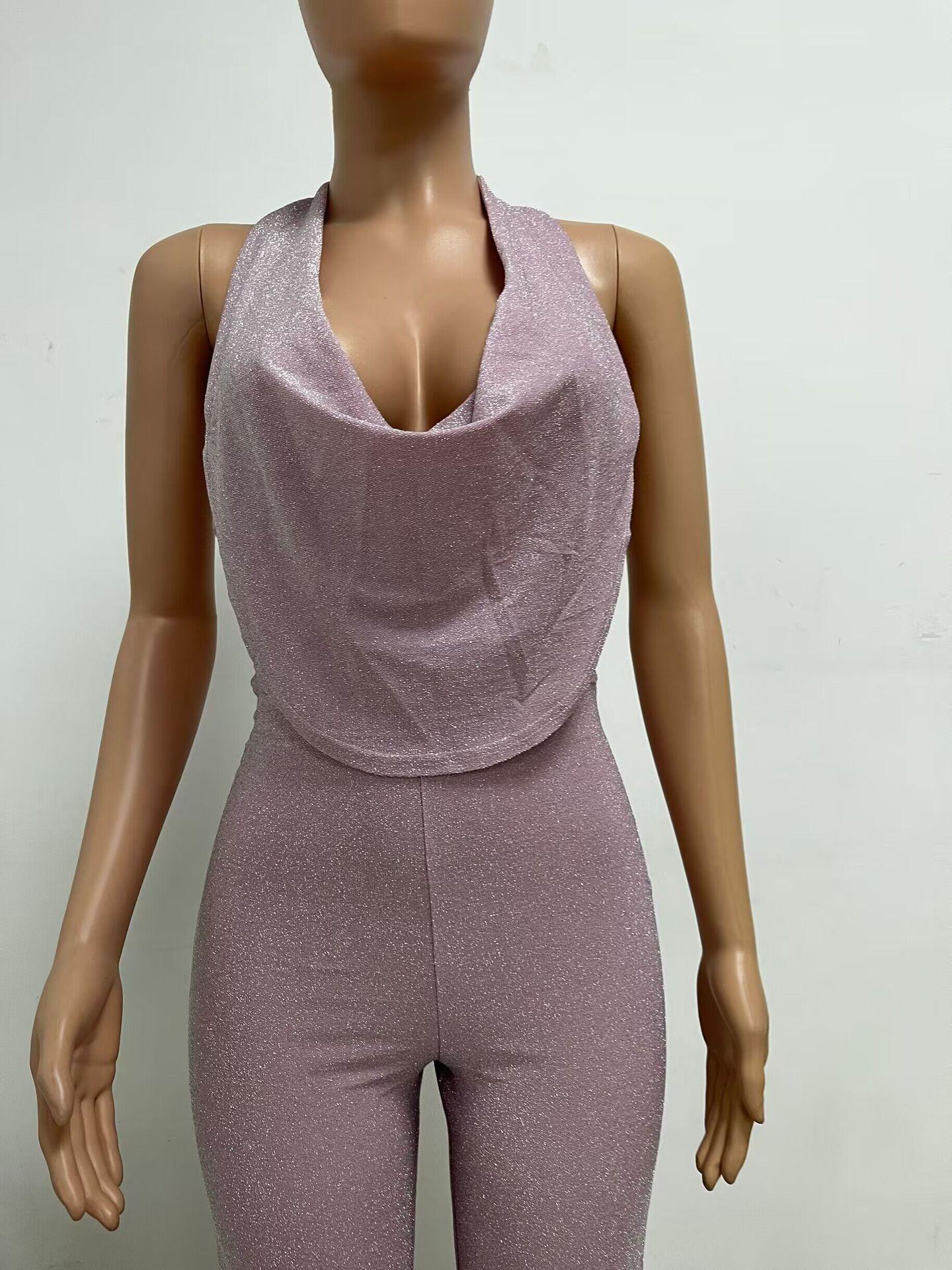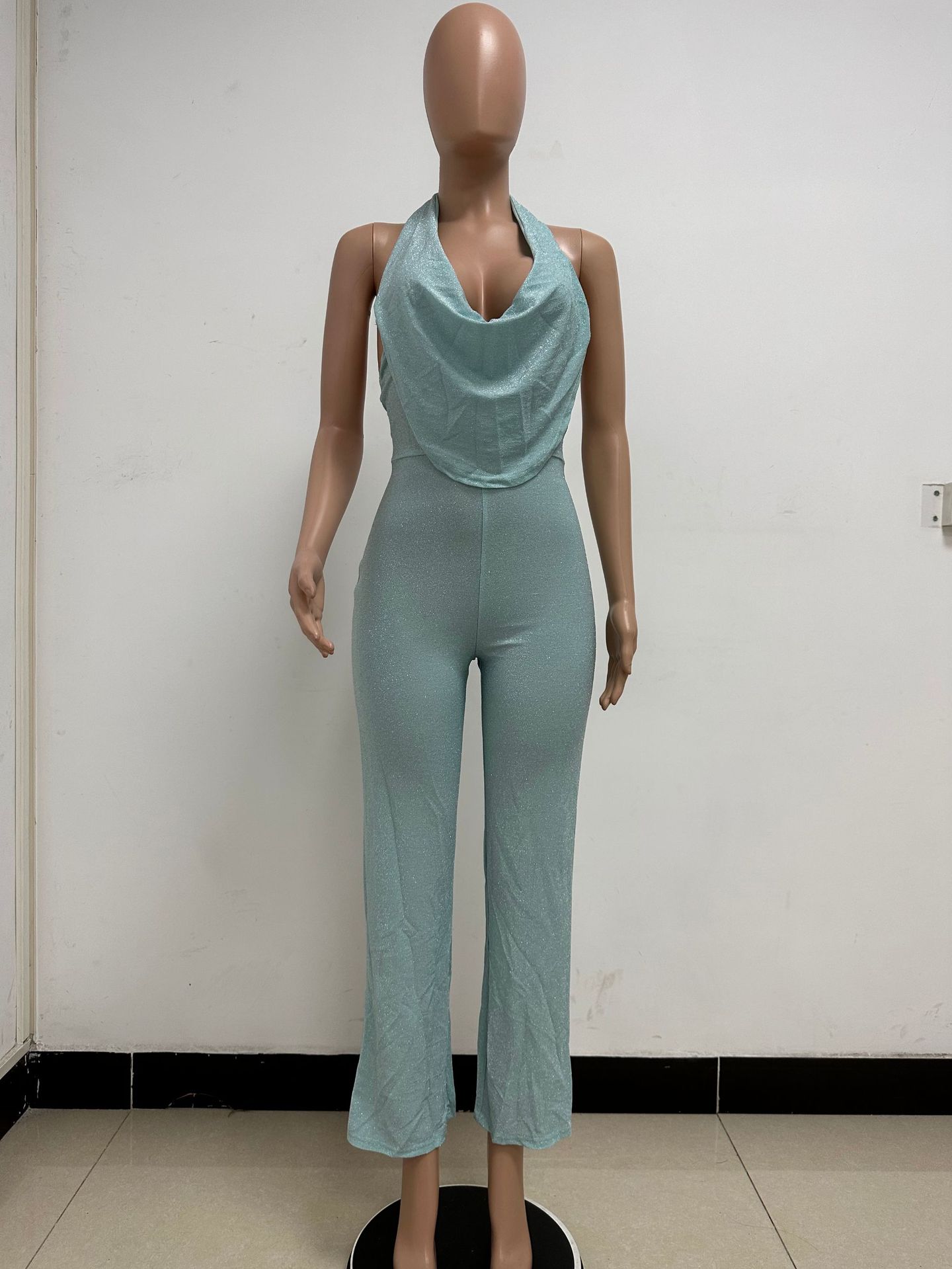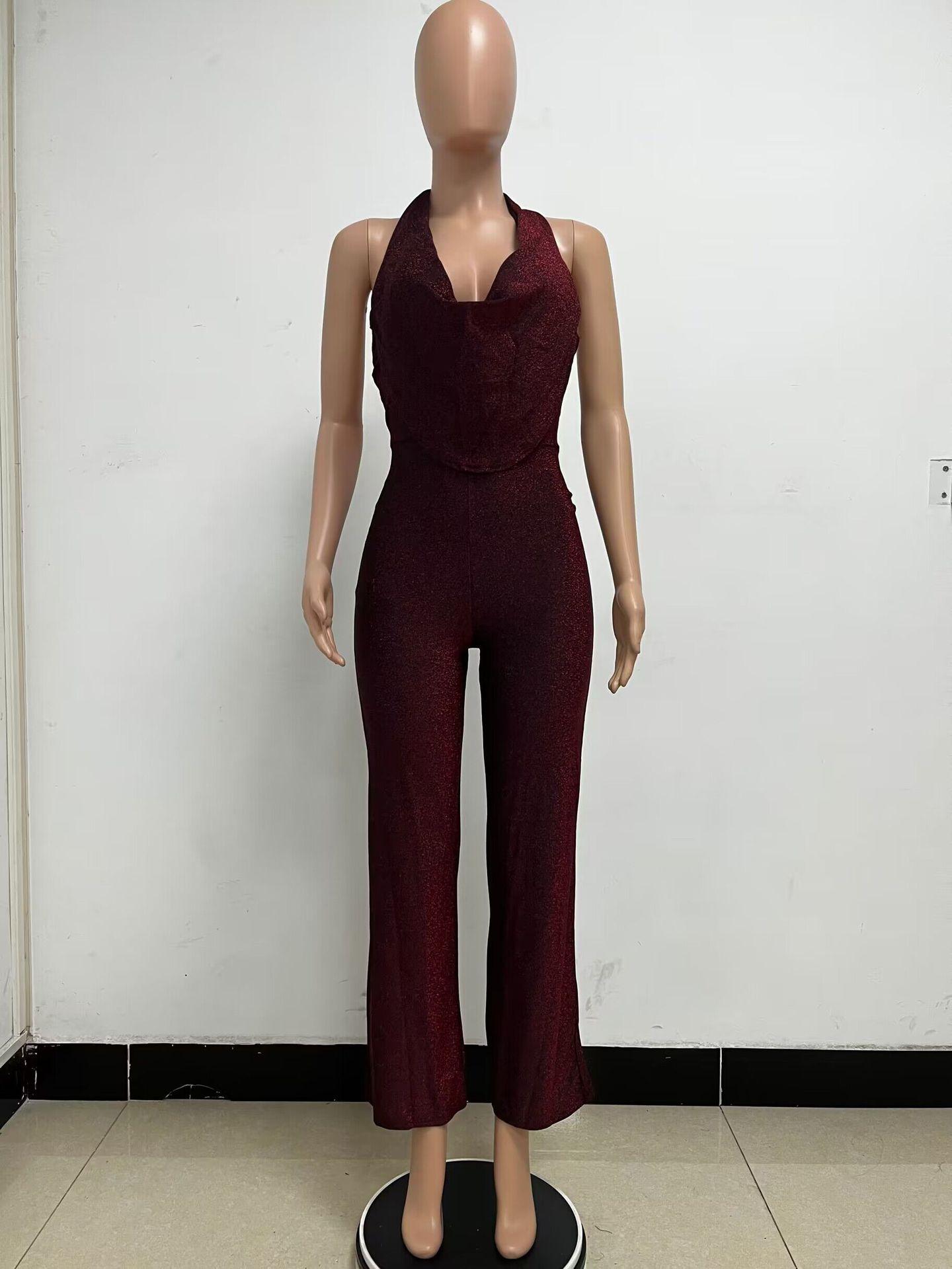 Ropa de Mujer Transfronteriza Europea y Americana Nuevo Mono Plateado Elástico sin Mangas con Cuello Halter y Espalda Descubierta para Mujer Venta al por Mayor de Alta Gama