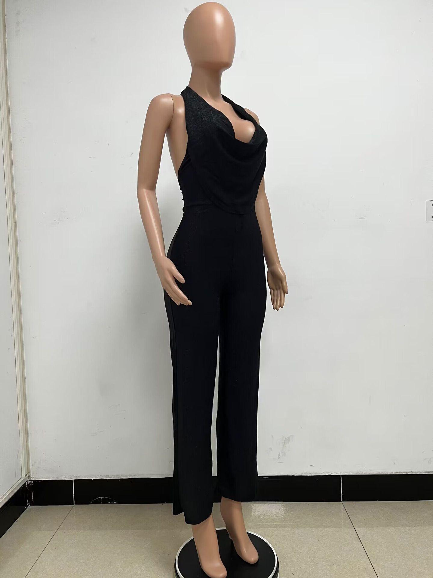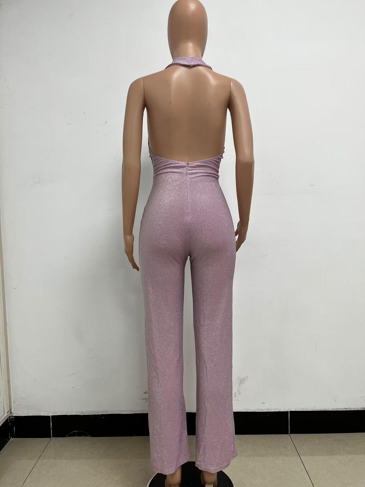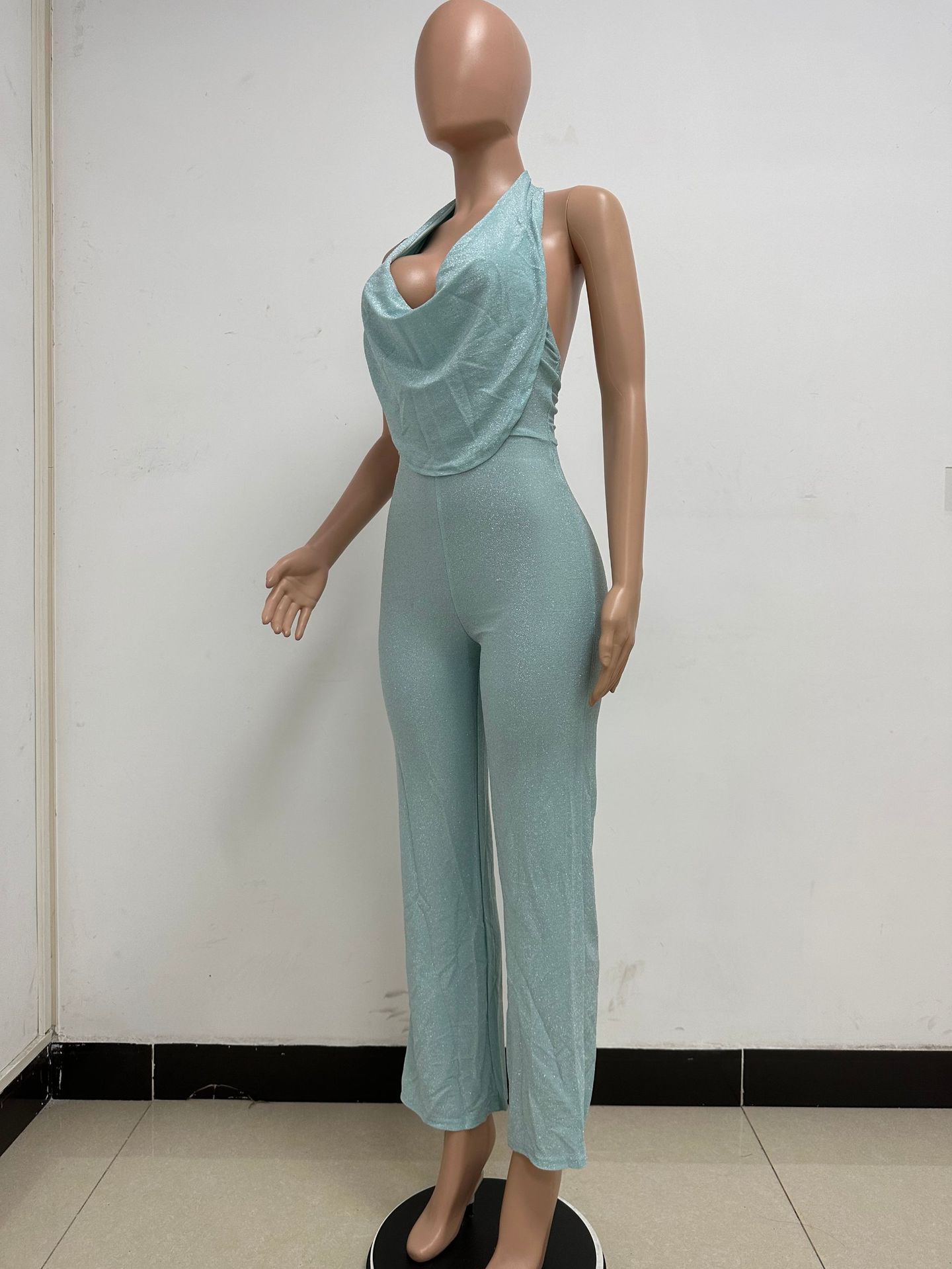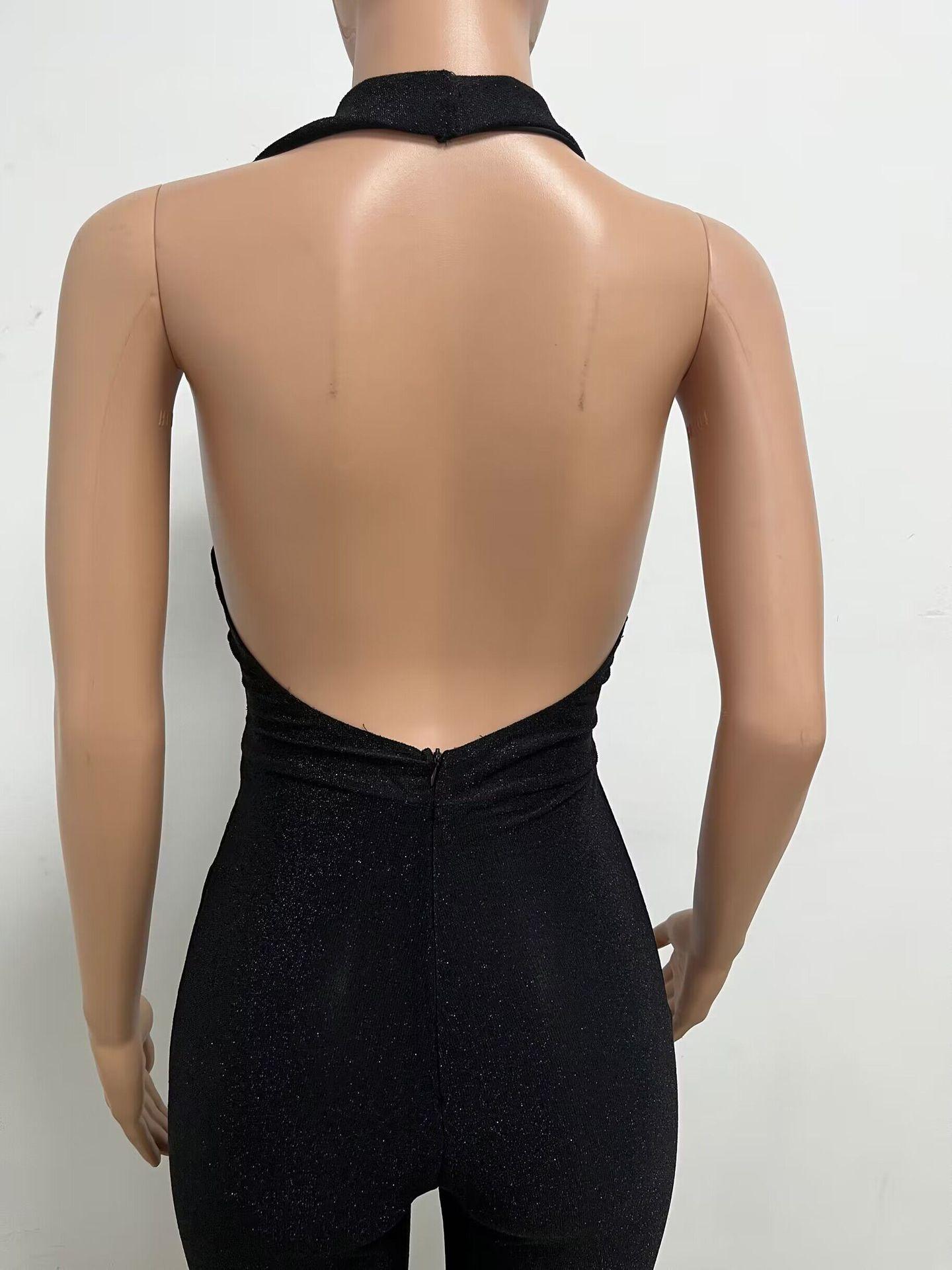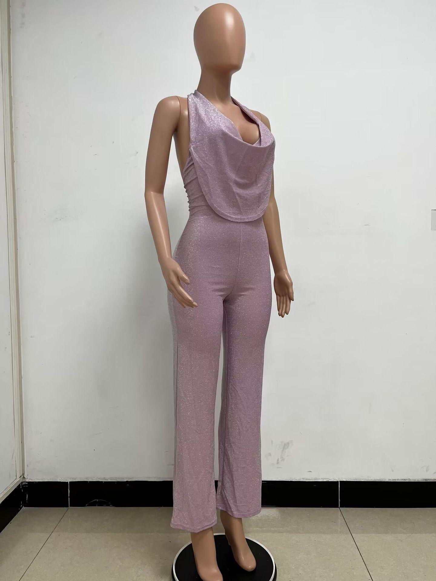 Ropa de Mujer Transfronteriza Europea y Americana Nuevo Mono Plateado Elástico sin Mangas con Cuello Halter y Espalda Descubierta para Mujer Venta al por Mayor de Alta Gama