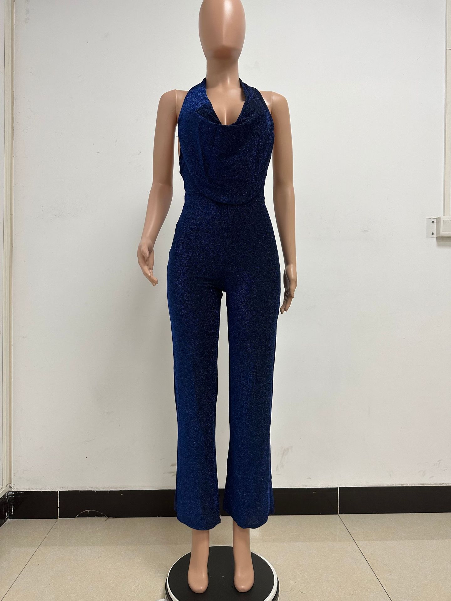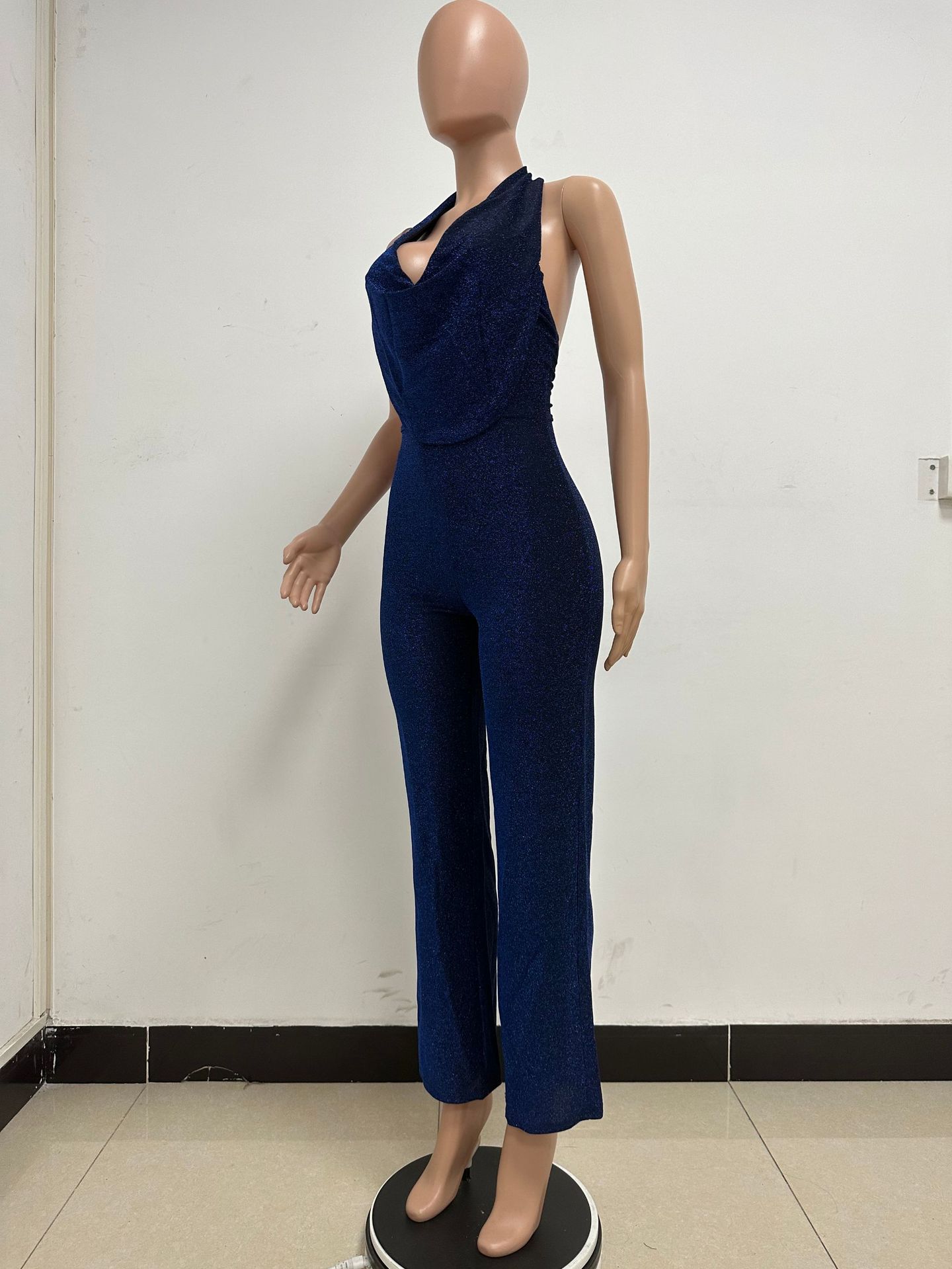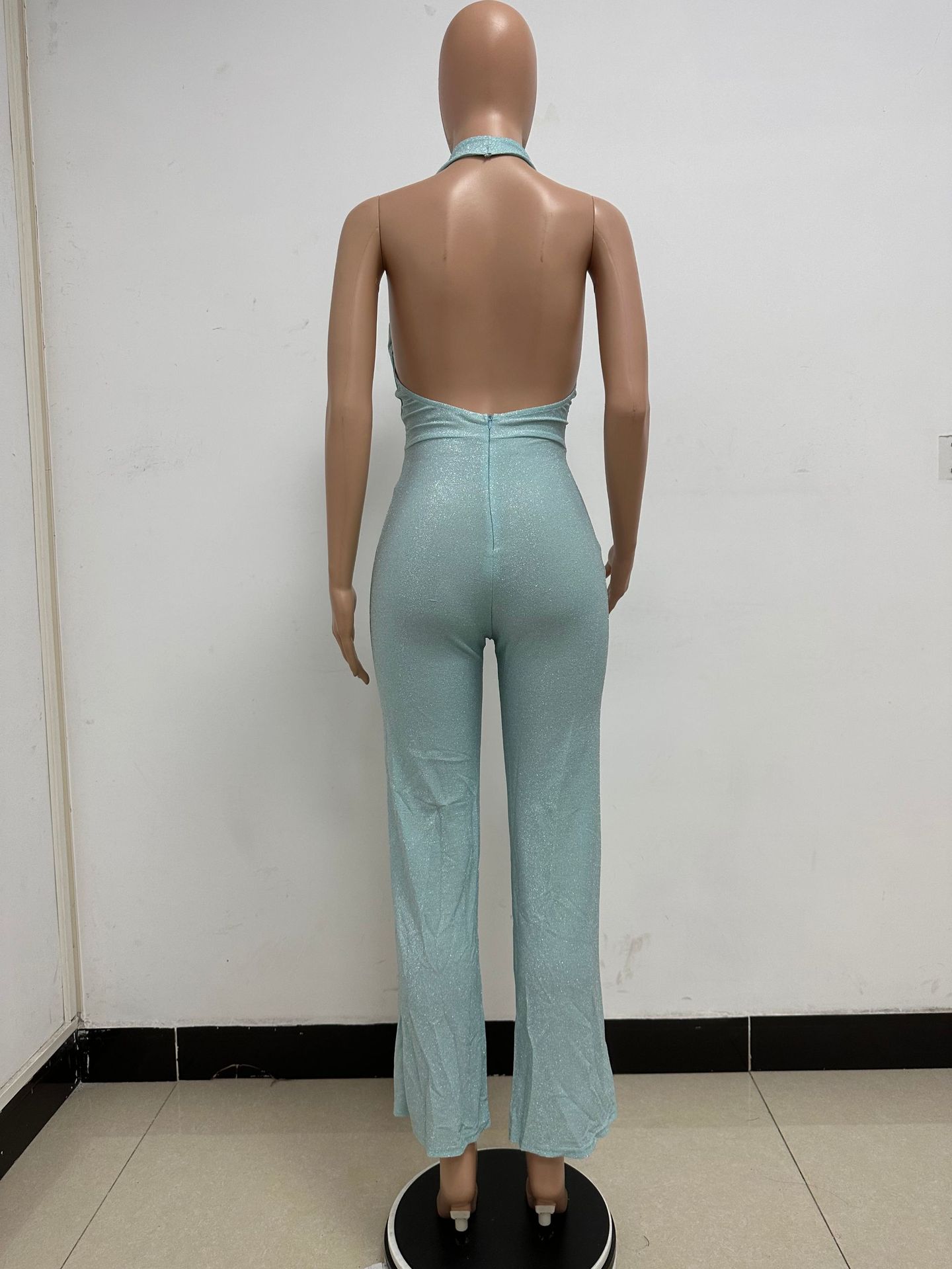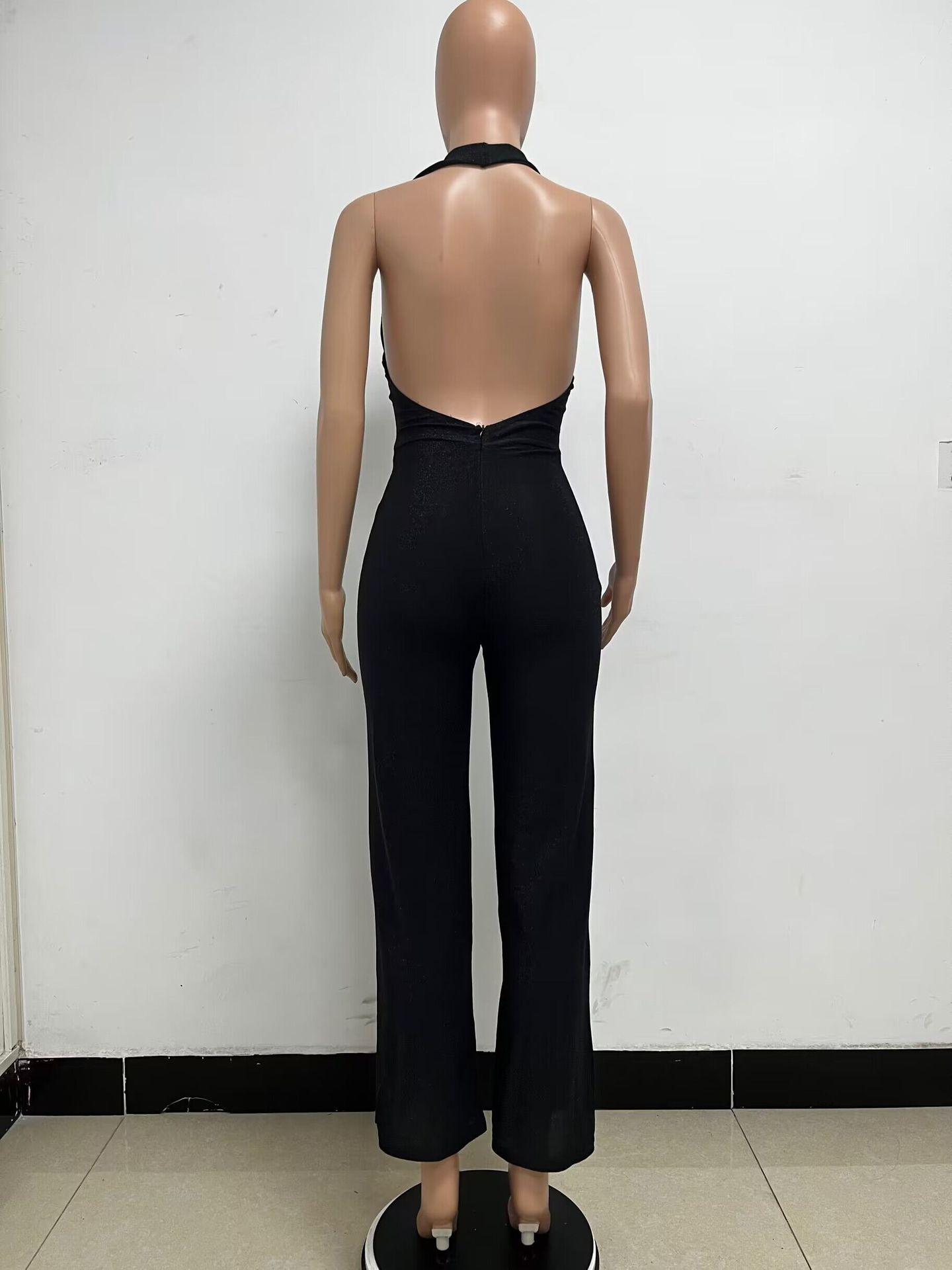 Ropa de Mujer Transfronteriza Europea y Americana Nuevo Mono Plateado Elástico sin Mangas con Cuello Halter y Espalda Descubierta para Mujer Venta al por Mayor de Alta Gama
