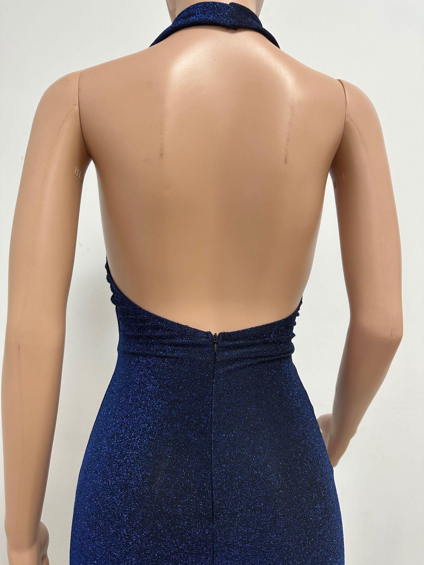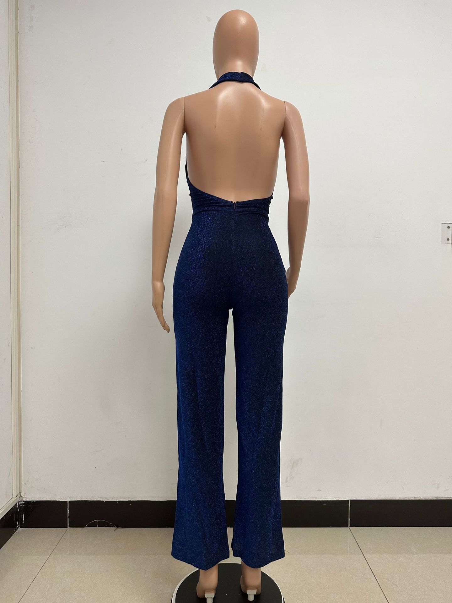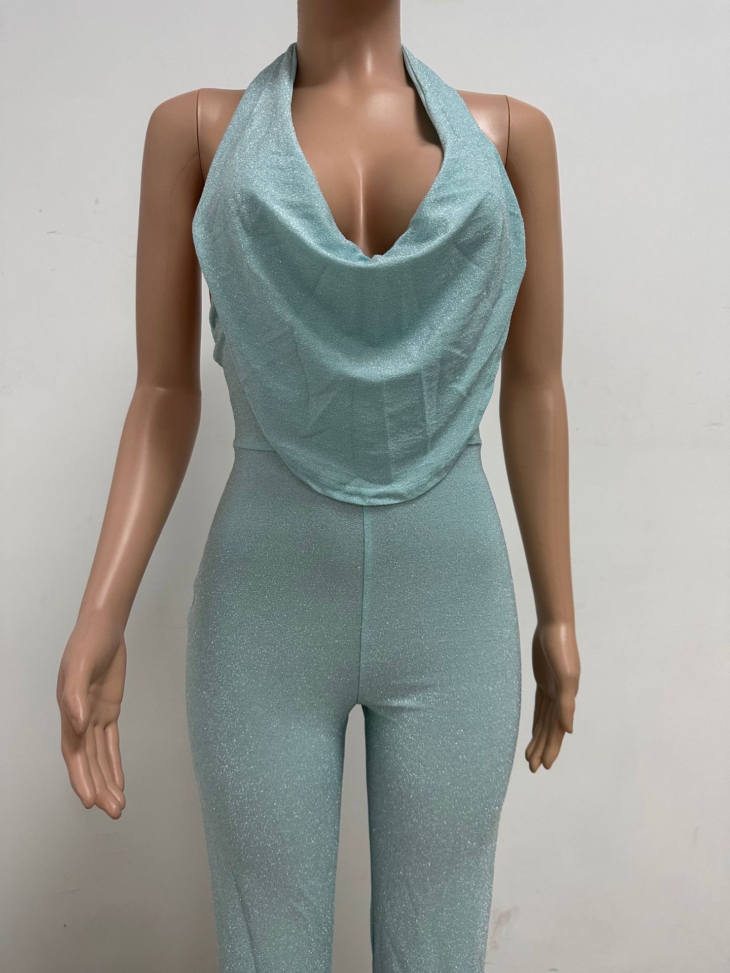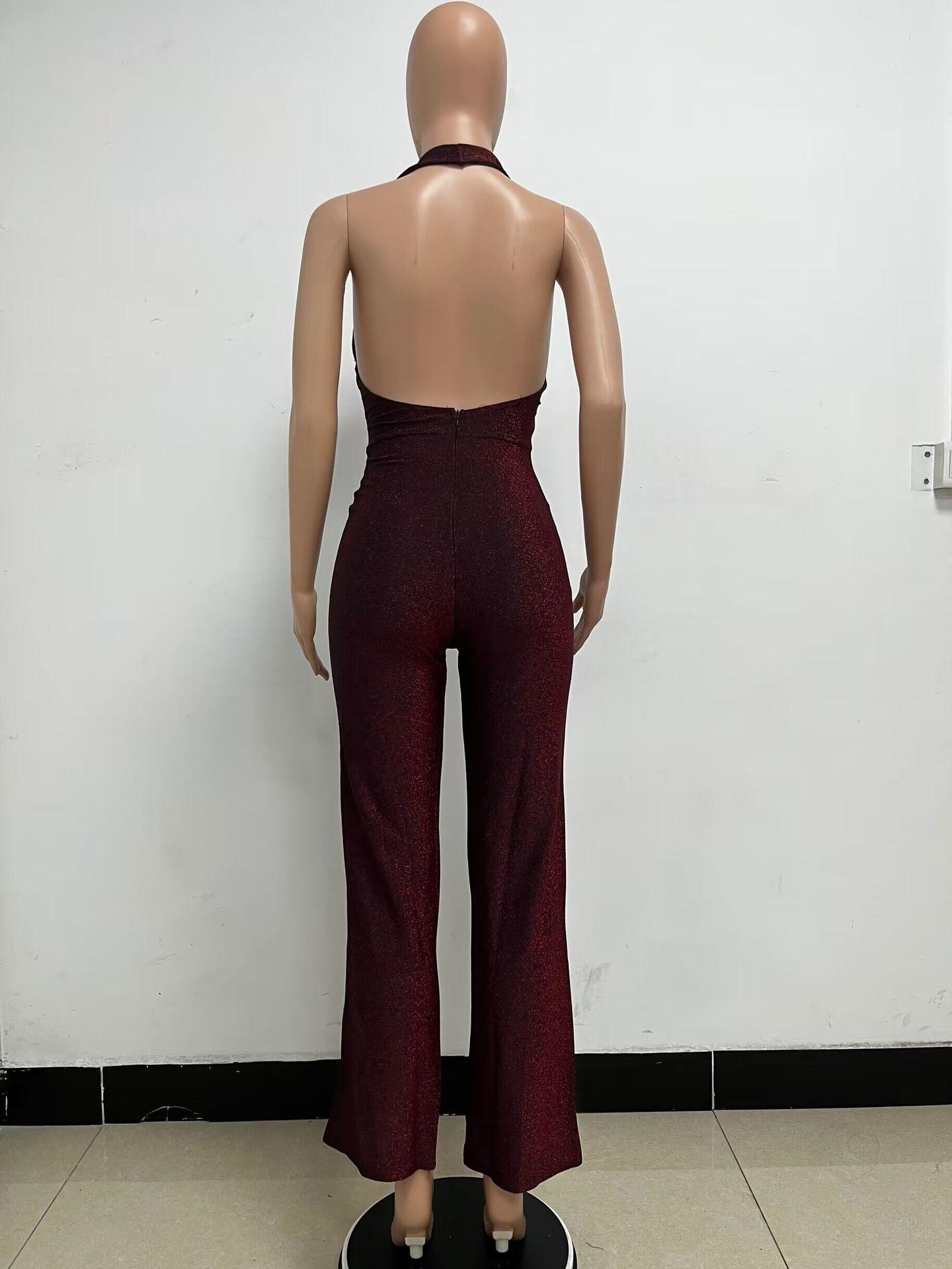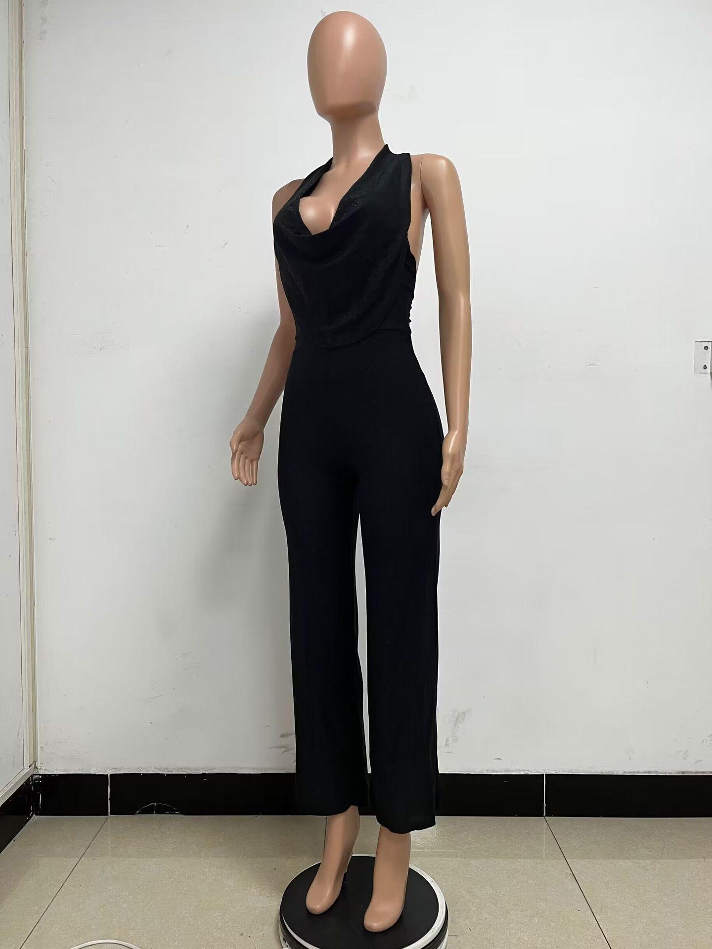 Ropa de Mujer Transfronteriza Europea y Americana Nuevo Mono Plateado Elástico sin Mangas con Cuello Halter y Espalda Descubierta para Mujer Venta al por Mayor de Alta Gama