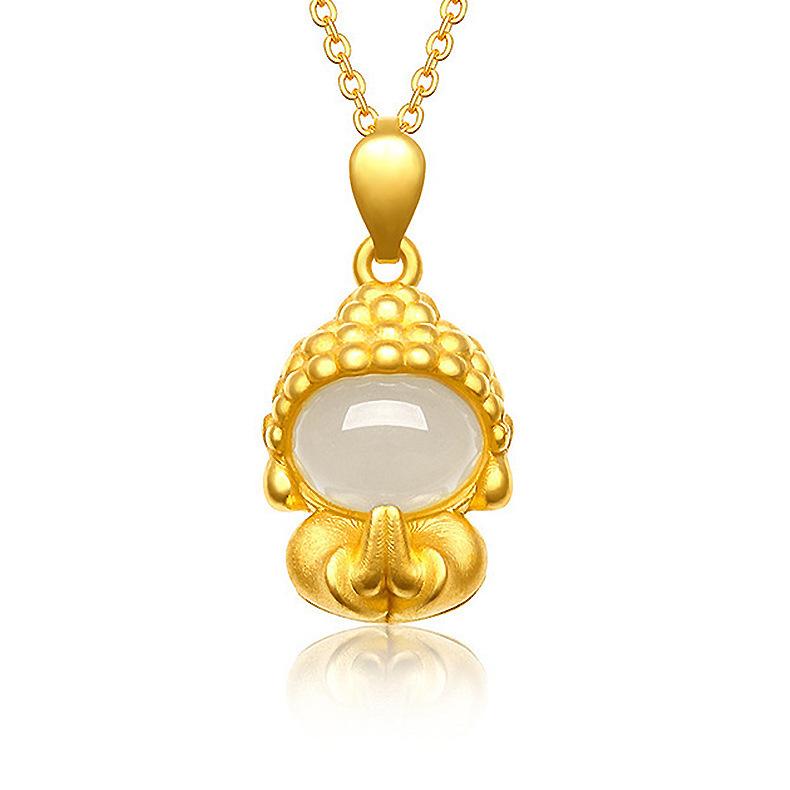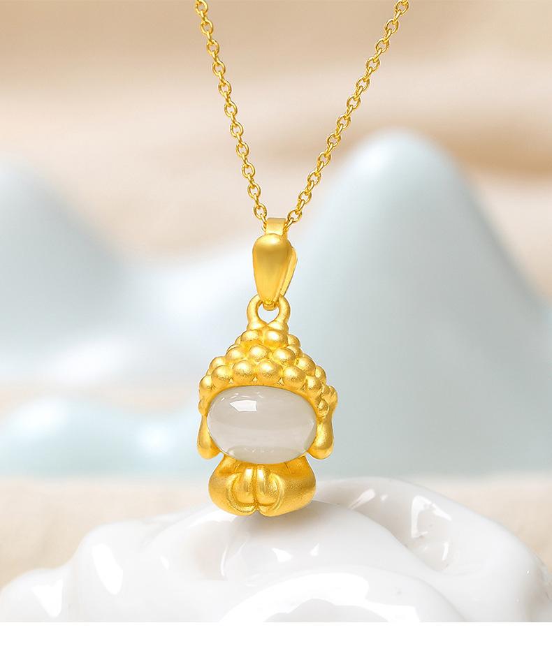 Vietnam Shajin Collar con Colgante de Buda No-fase Jade Blanco Hotan Buda Dorado Lindo Colgante de Buda Explosiones en Vivo