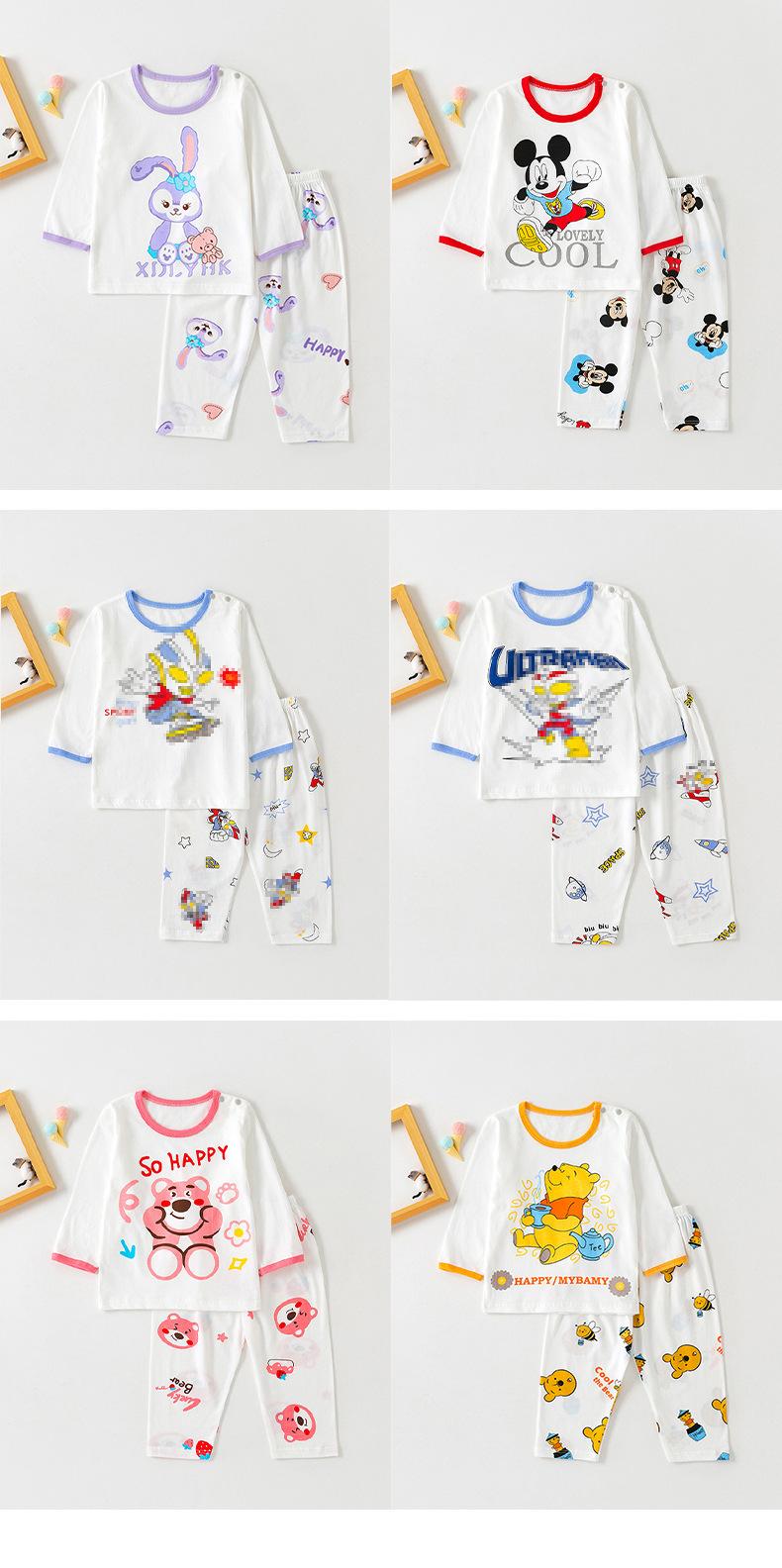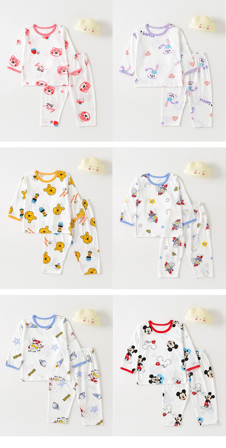 Conjunto de pijamas finos de verano para niños, de algodón, de manga larga y aire acondicionado, ropa de casa para bebés, estampado