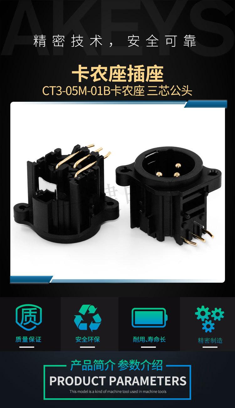 Conector de audio macho de esquina de 3 núcleos y 4 pies para asiento de cañón CT3-05M-01, amplificador de audio, conector de cañón