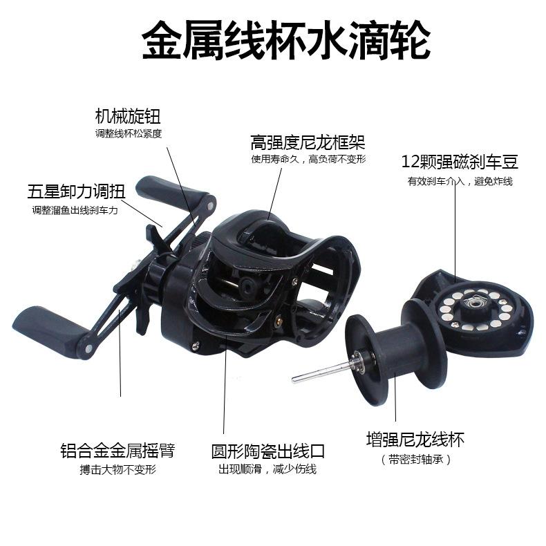 Carrete de Pesca Veveka Rueda de Gota de Agua Carrete de Pesca de Largo Alcance Antiexplosión Carrete de Línea de Pesca Boca de Caballo Pesca en Hielo Carrete de Pesca Puente Negro